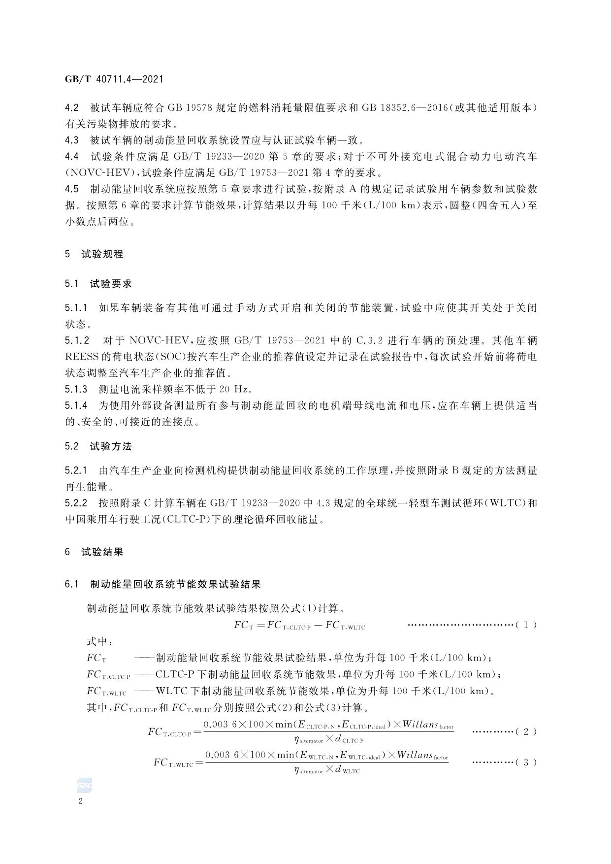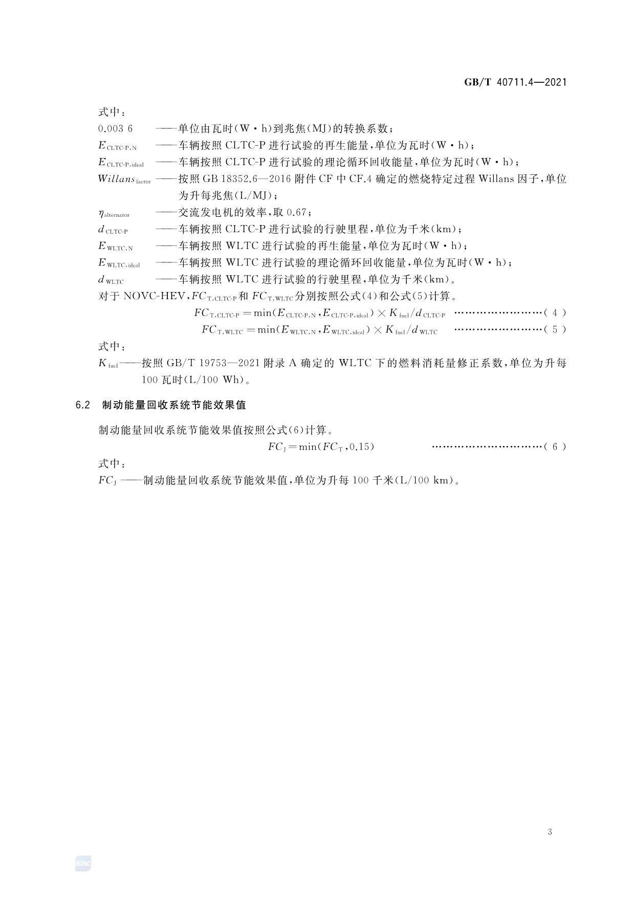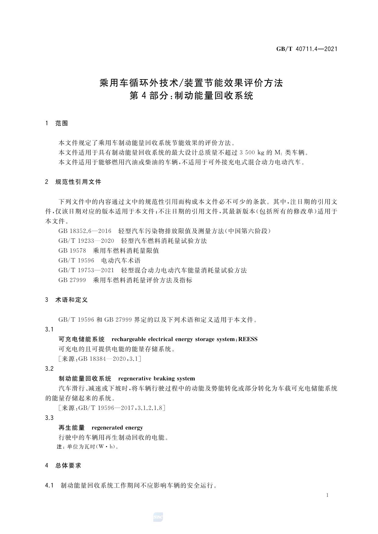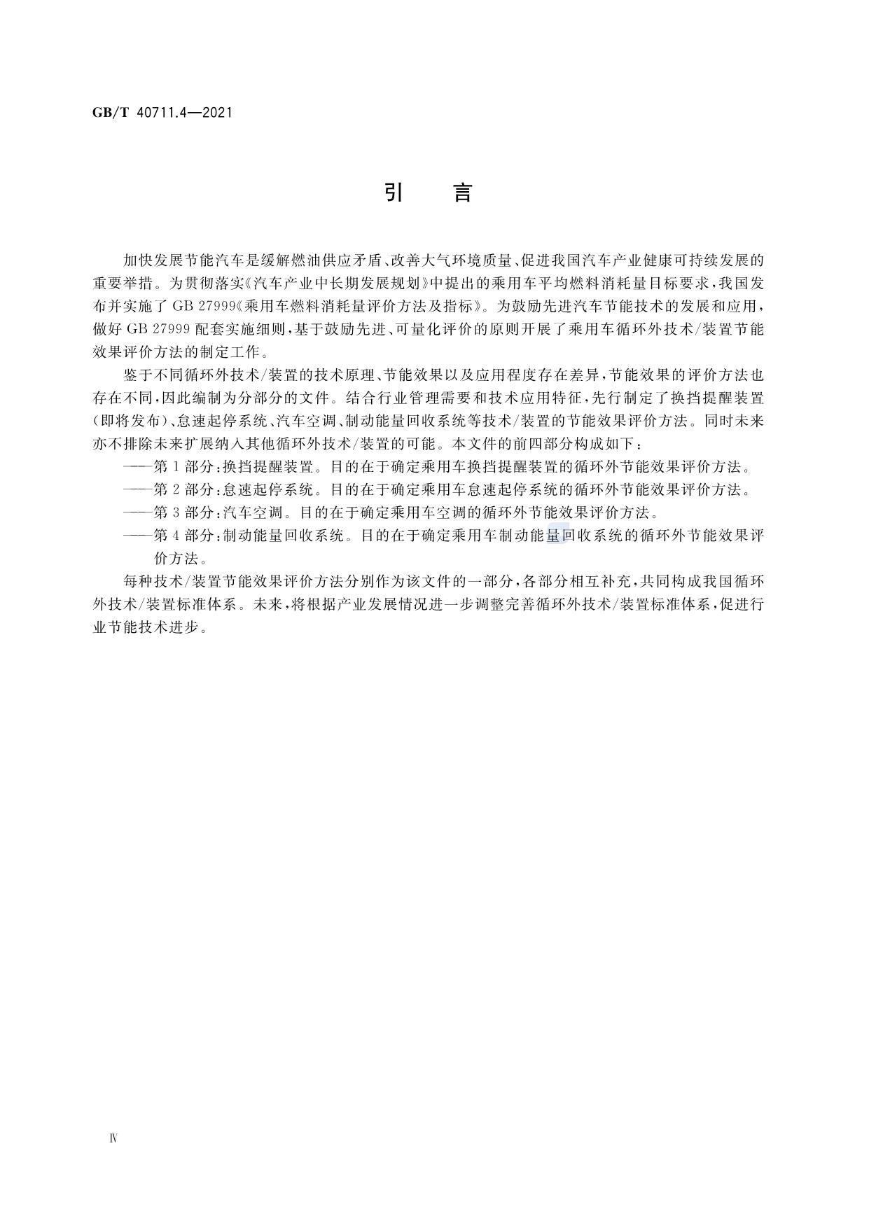 《乘用车循环外技术/装置节能效果评价方法 第4部分:制动能量回收系统》(GB/T 40711.4-2021)