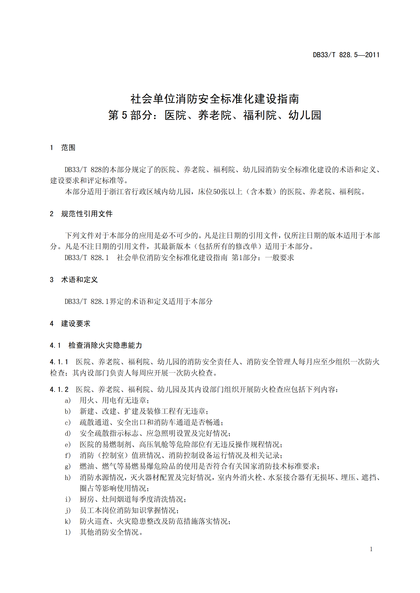 社会单位消防安全标准化建设指南第5部分医院、养老院、福利院、幼儿园