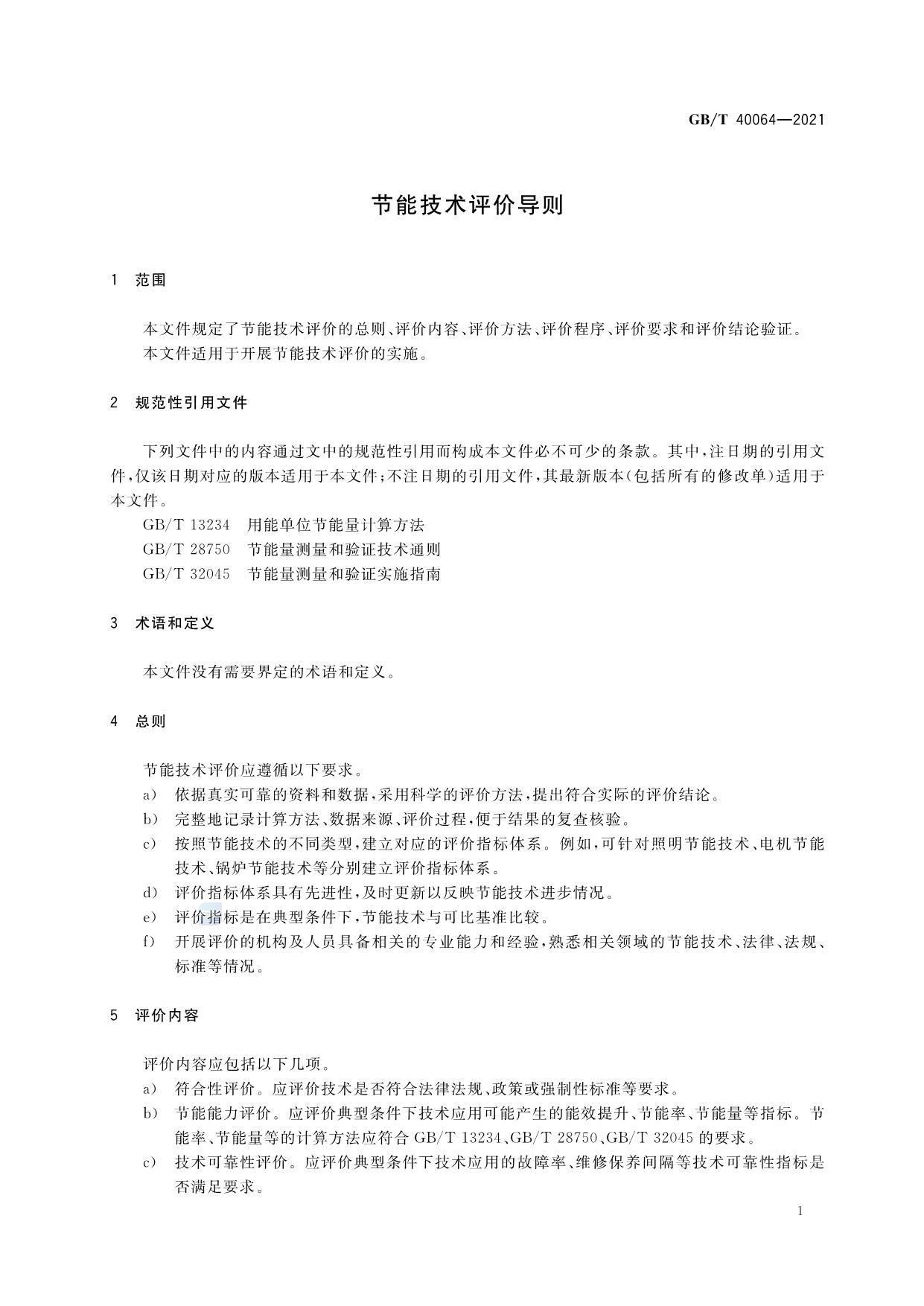 《节能技术评价导则》(GB/T 40064-2021)