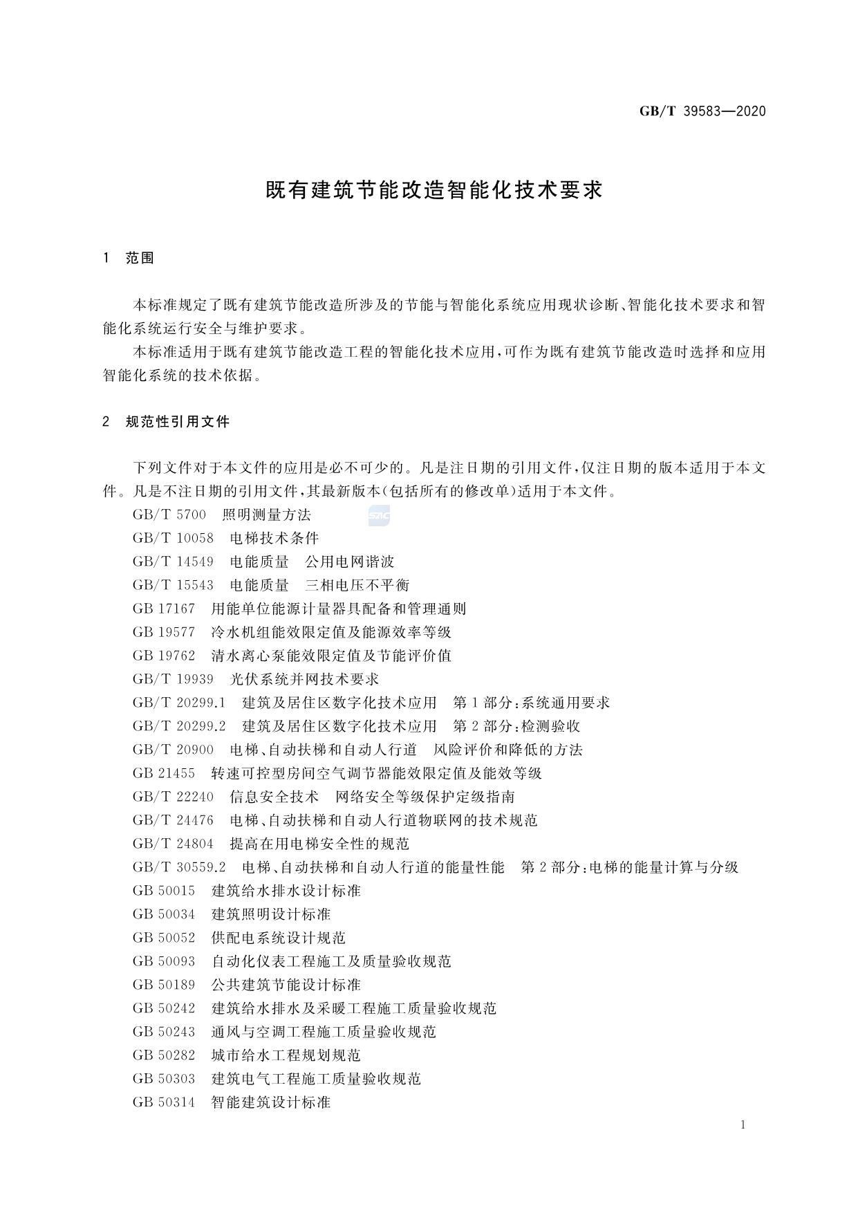 《既有建筑节能改造智能化技术要求》(GB/T 39583-2020)