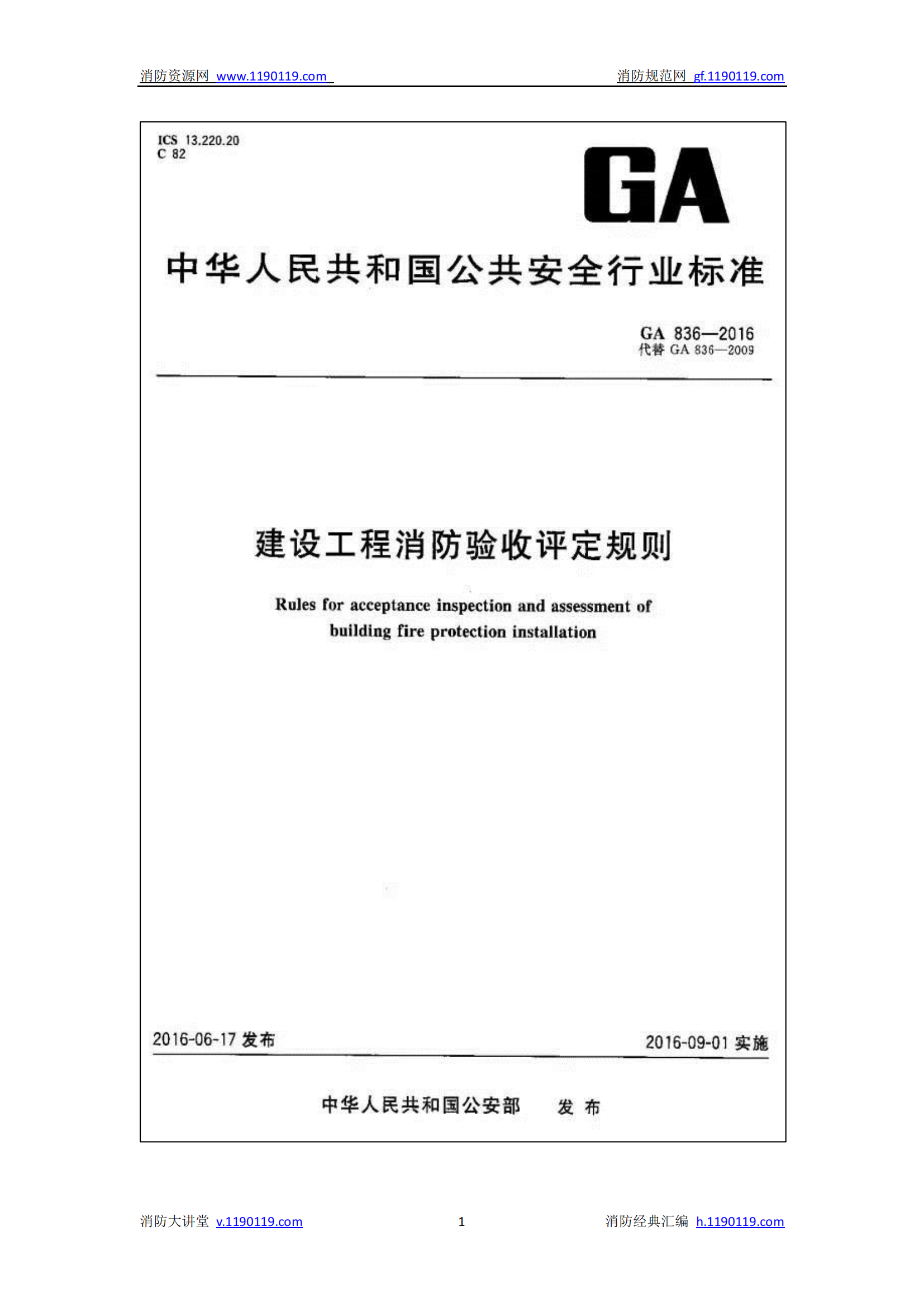 《建设工程消防验收评定规则》GA836-2016