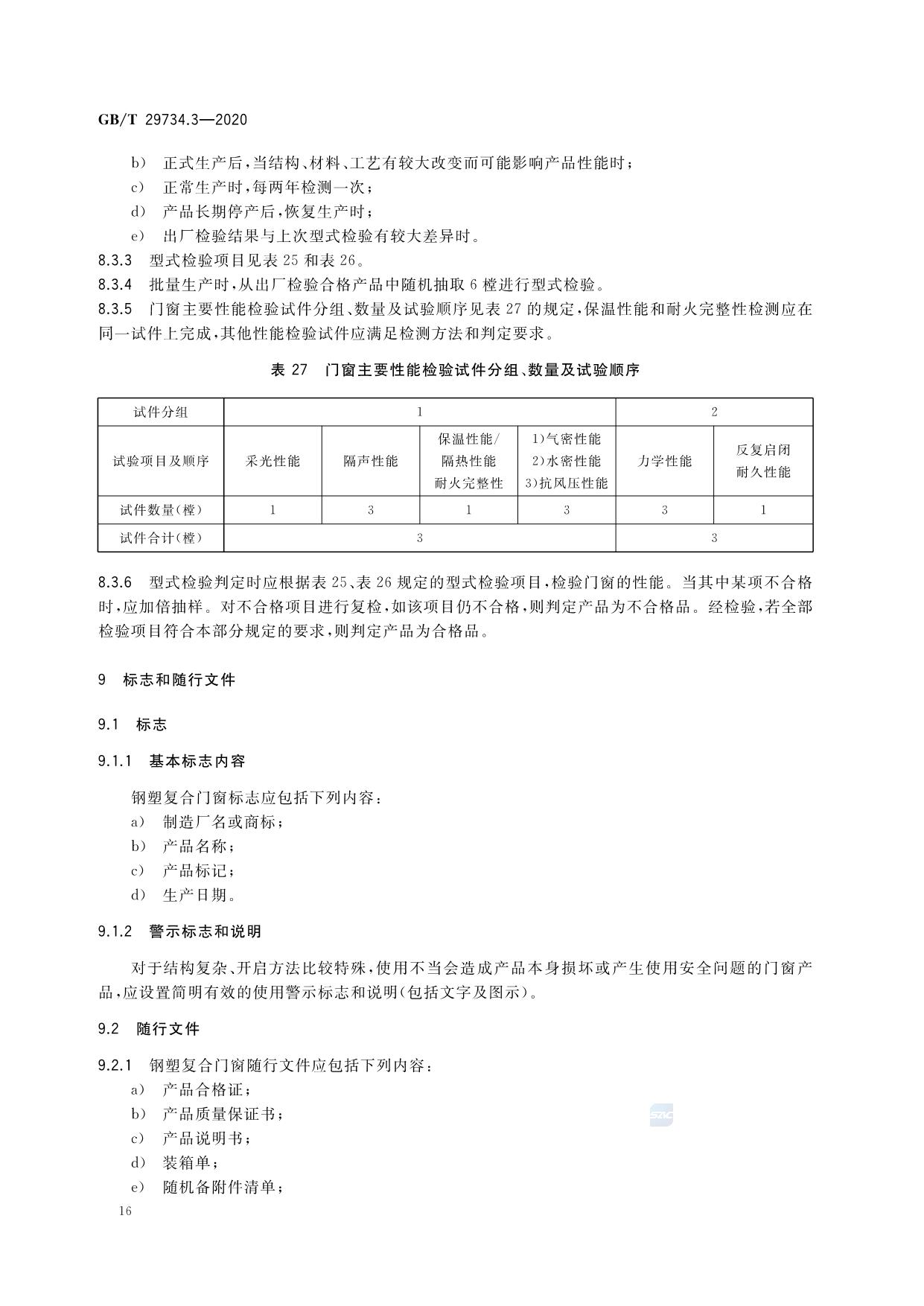 《建筑用节能门窗 第3部分:钢塑复合门窗》(GB/T 29734.3-2020)