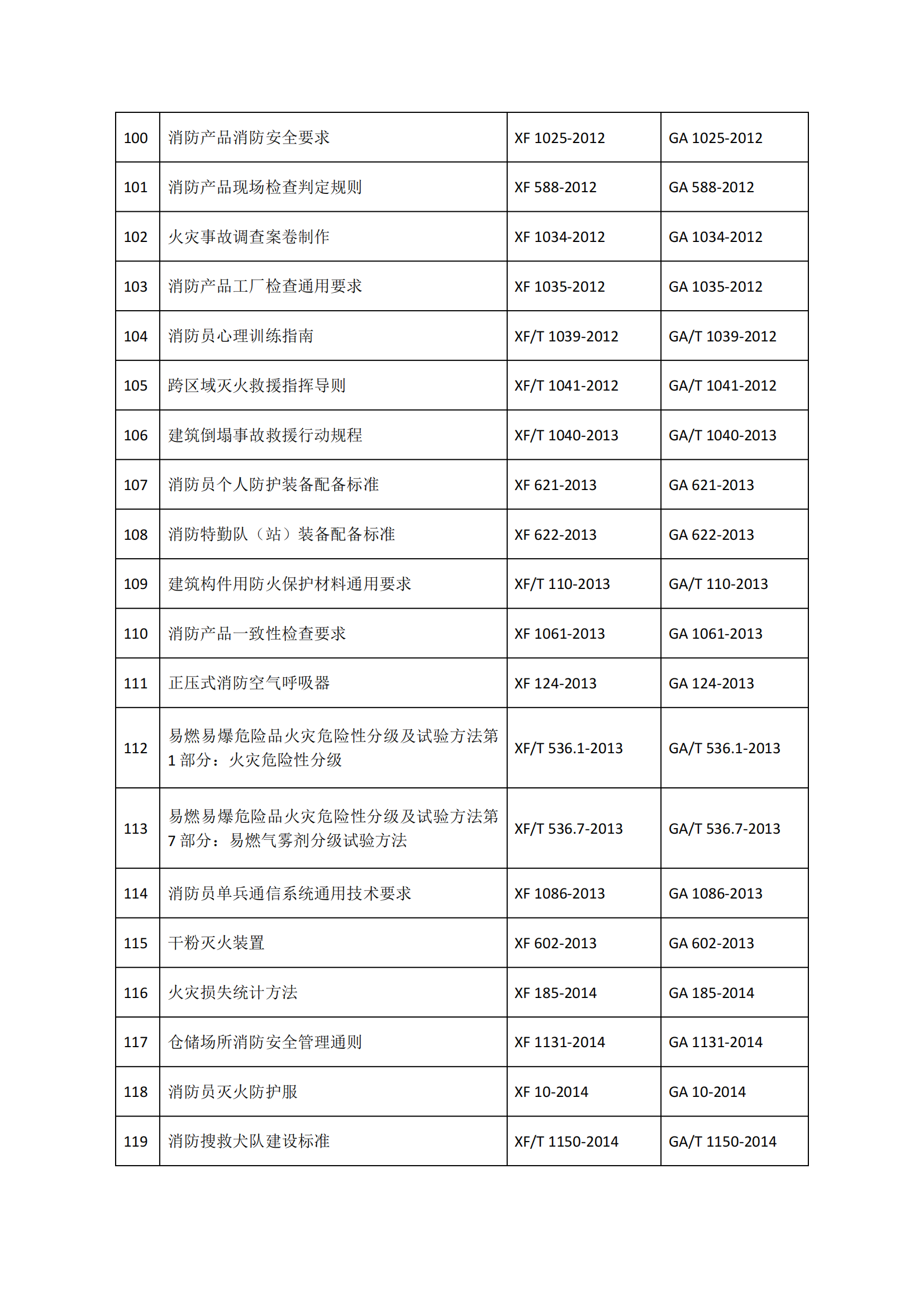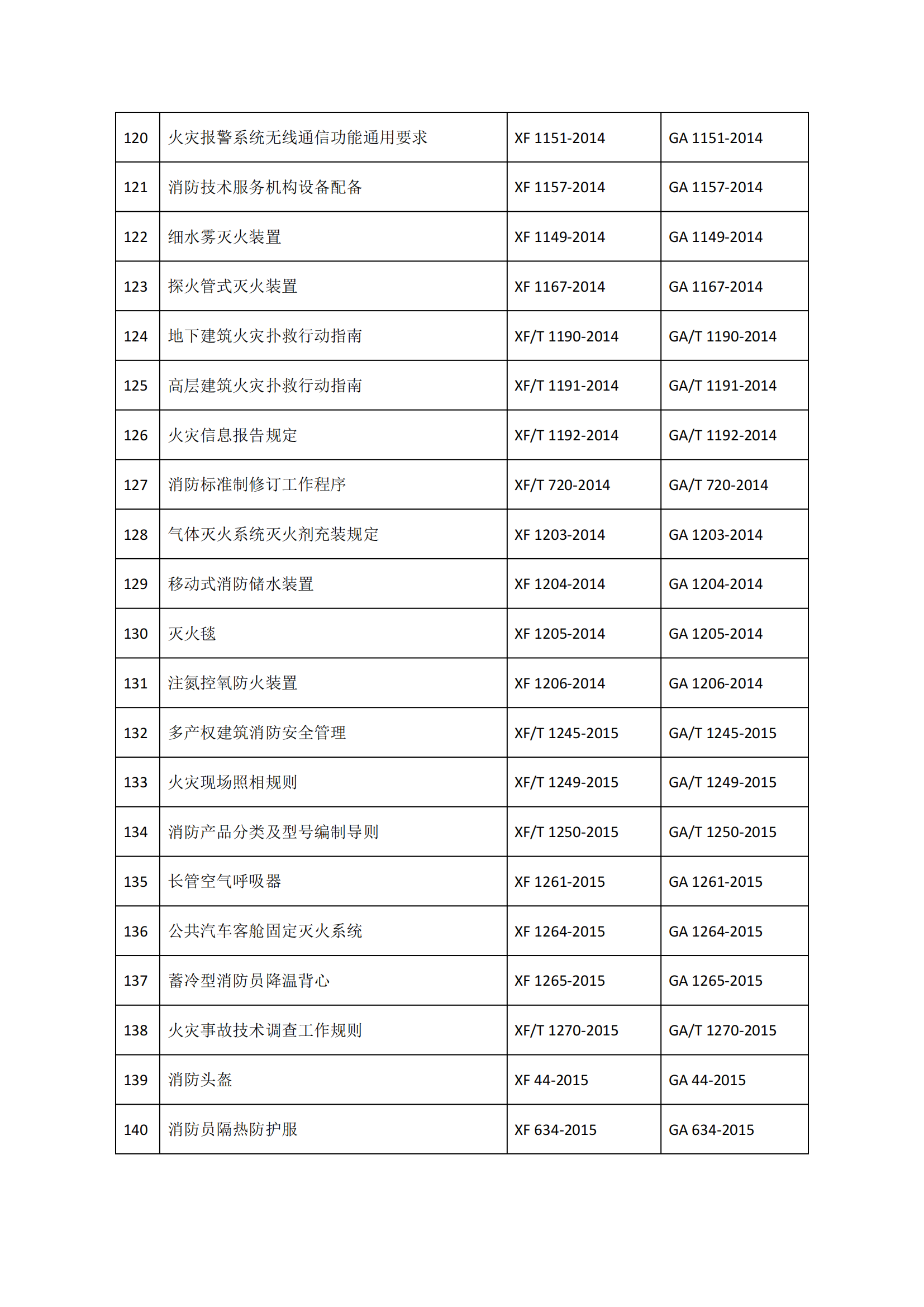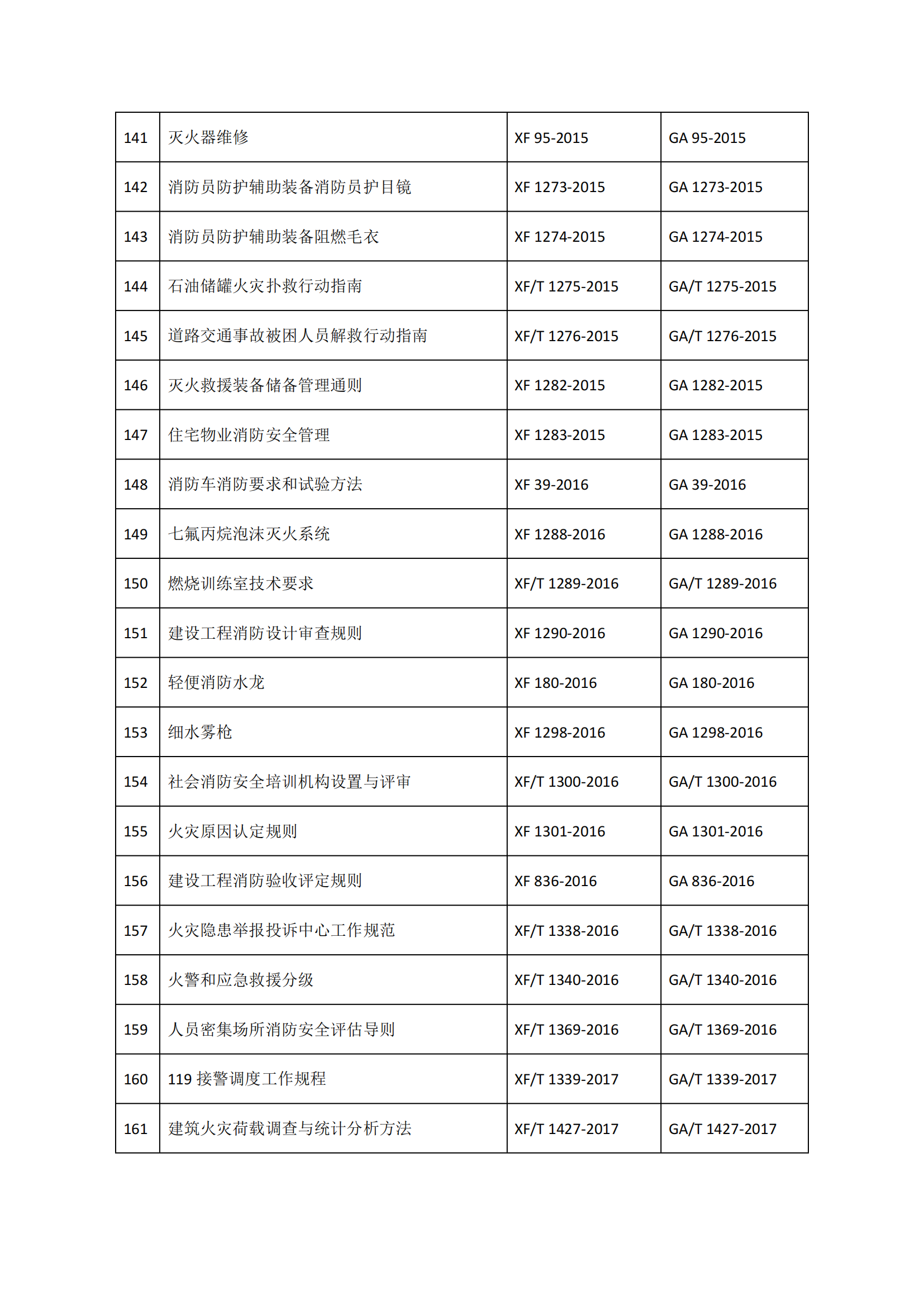 《165项消防救援行业标准清单》