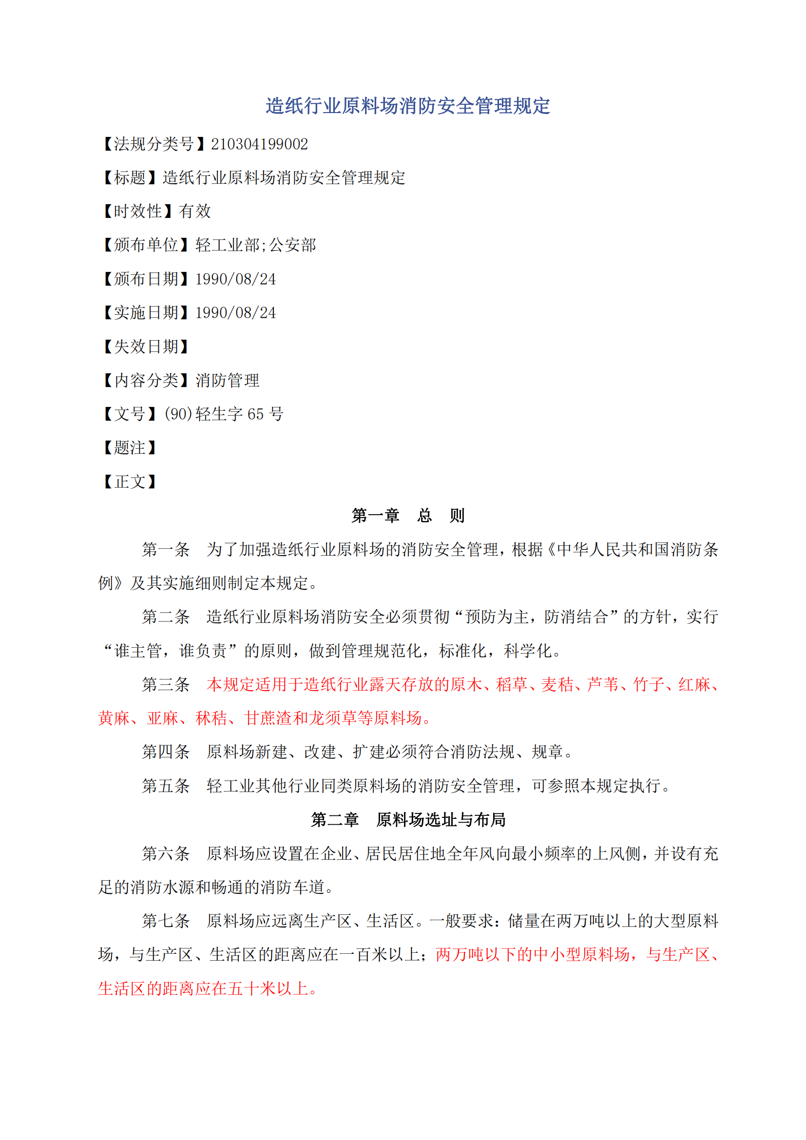 造纸行业原料场消防安全管理规定