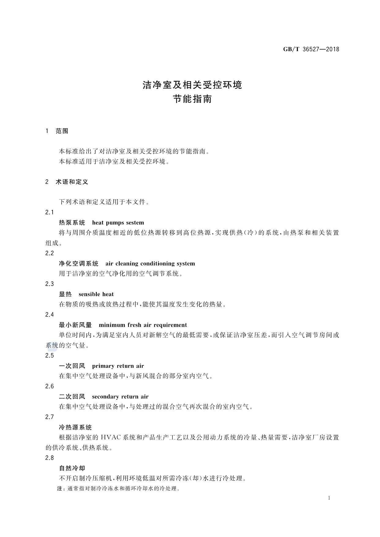 《洁净室及相关受控环境 节能指南》(GB/T 36527-2018)