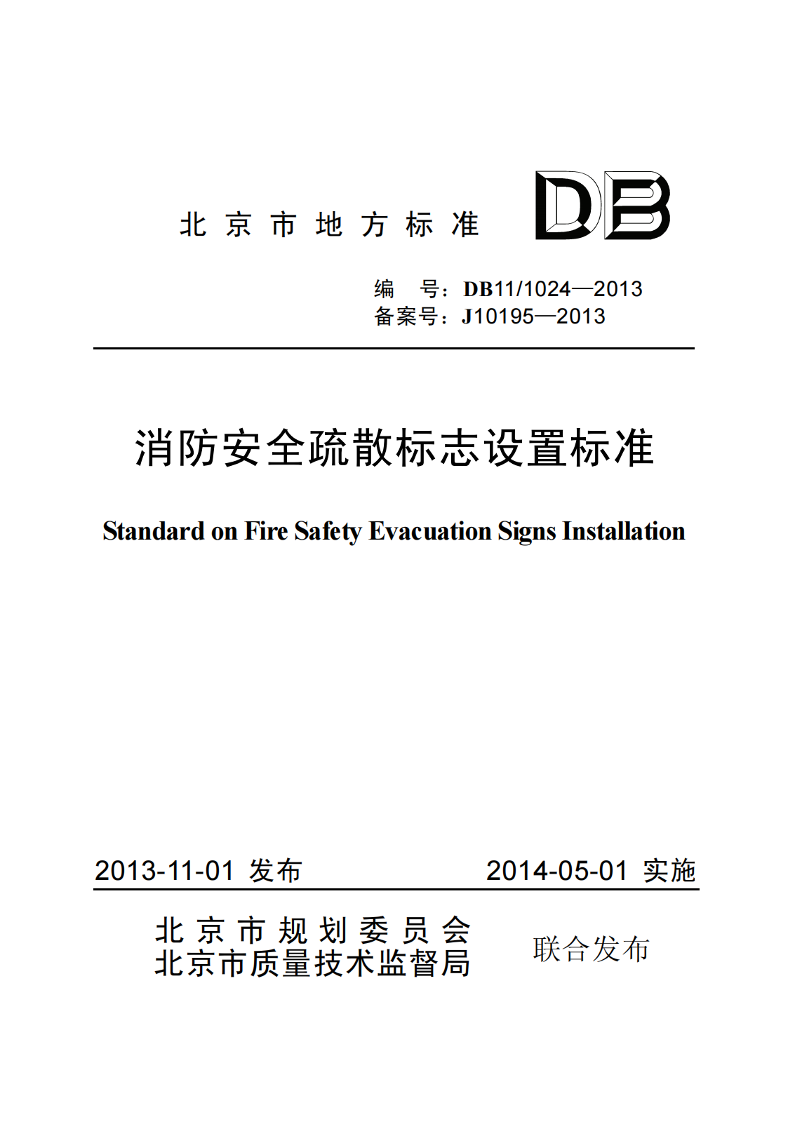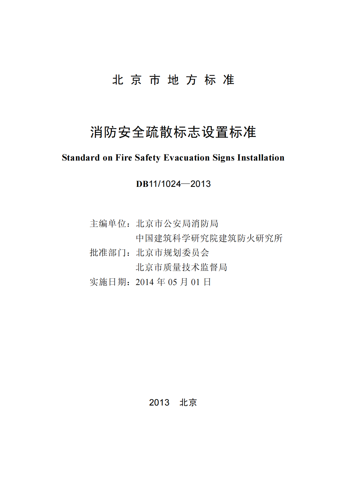 DB111024-2013消防安全疏散标志设置标准