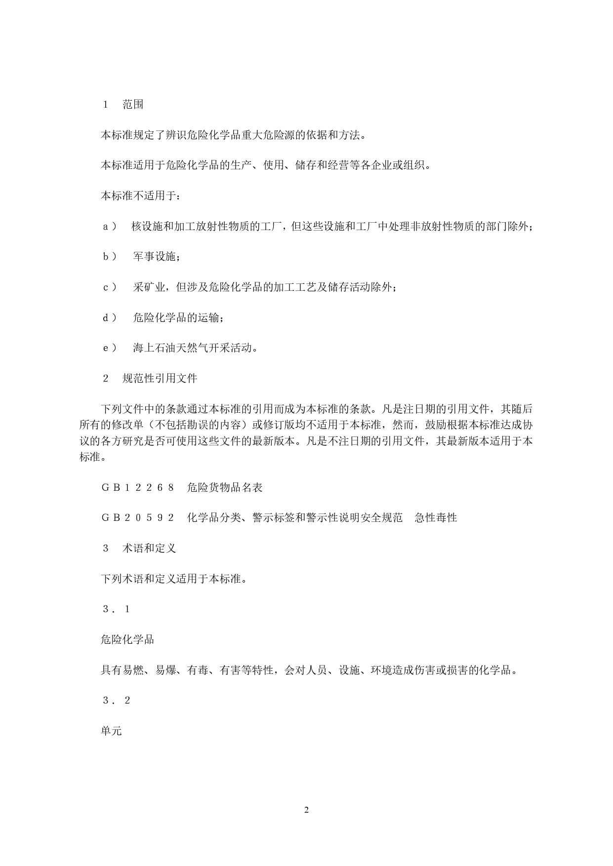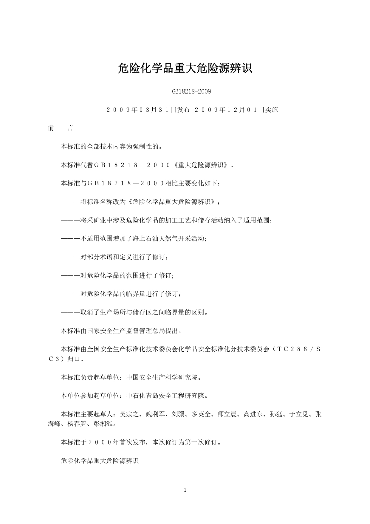 《危险化学品重大危险源辨识》(GB18218-2009)