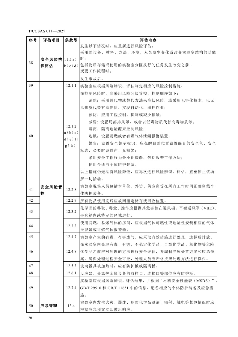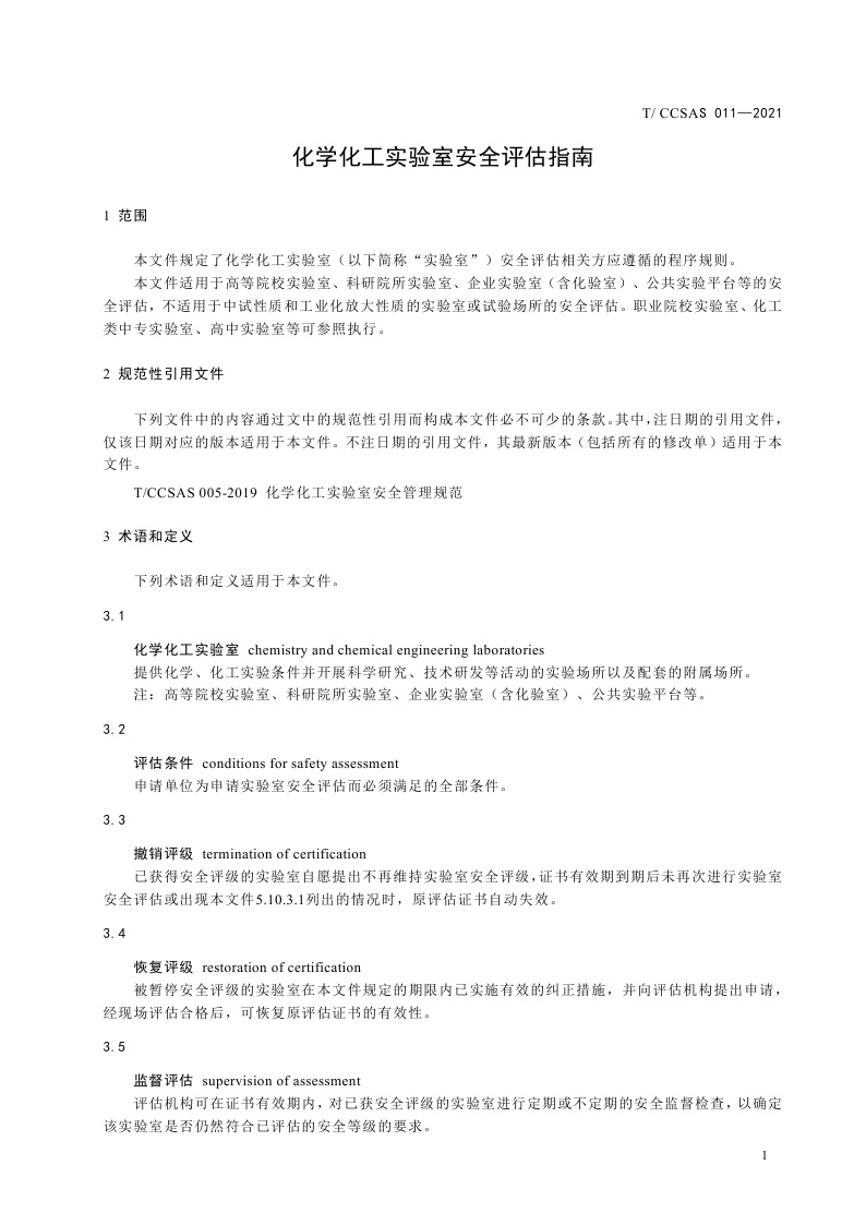化学化工实验室安全评估指南(TCCSAS 011-2021)