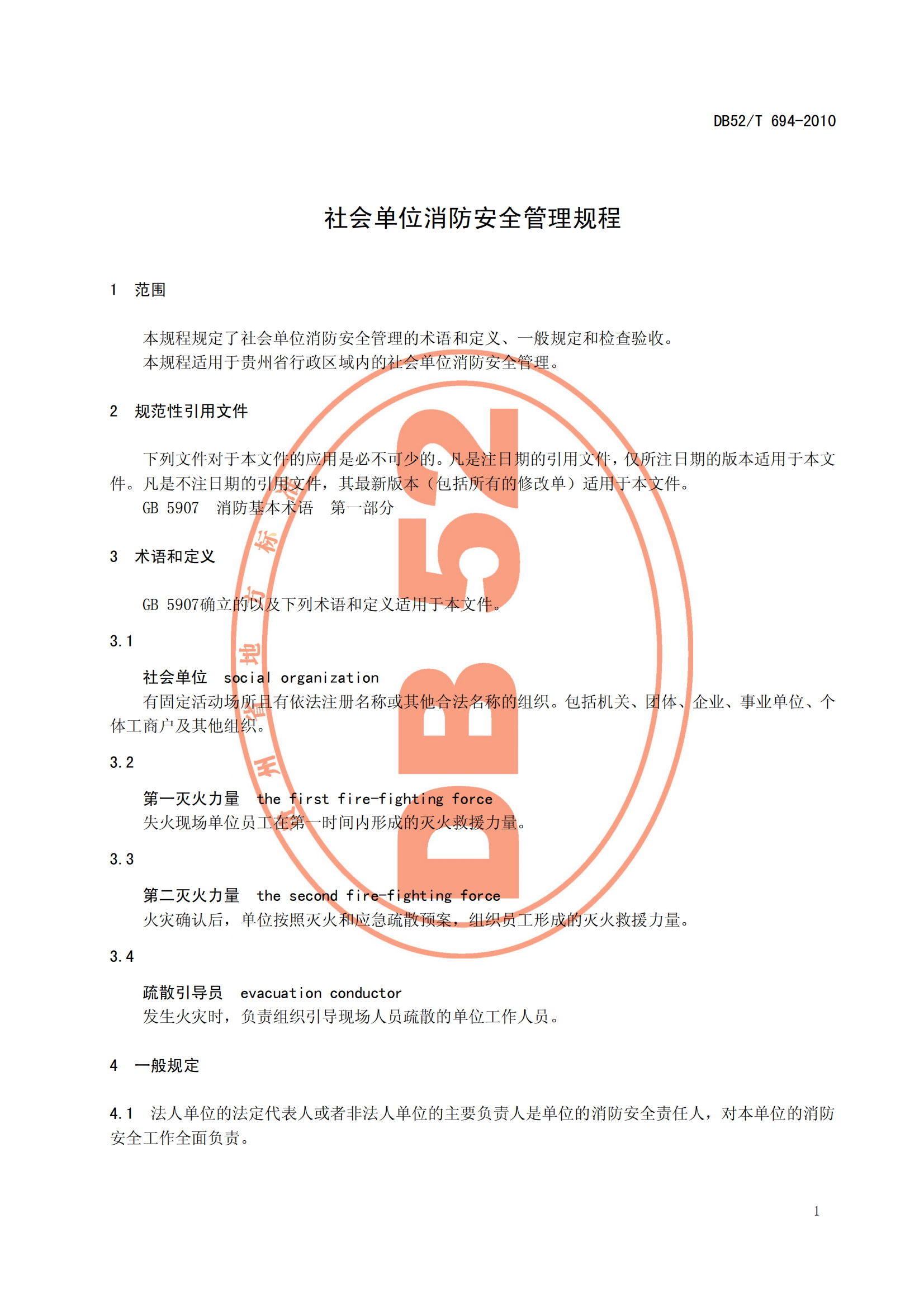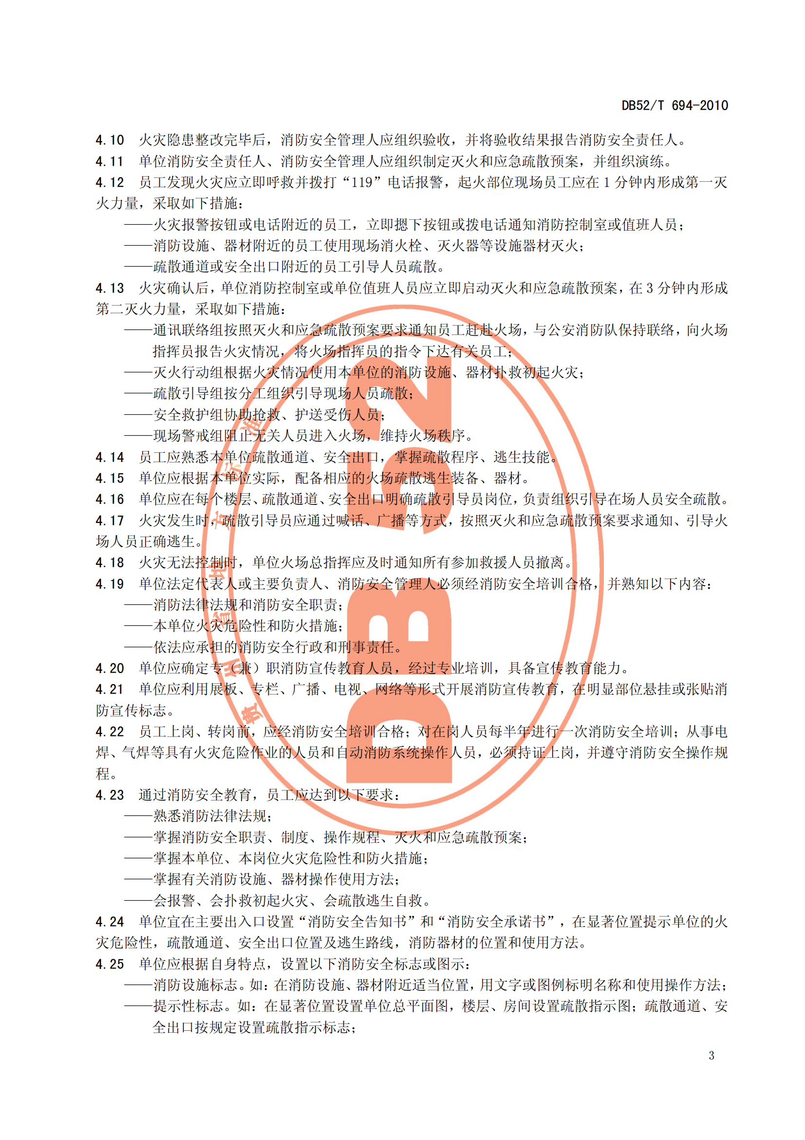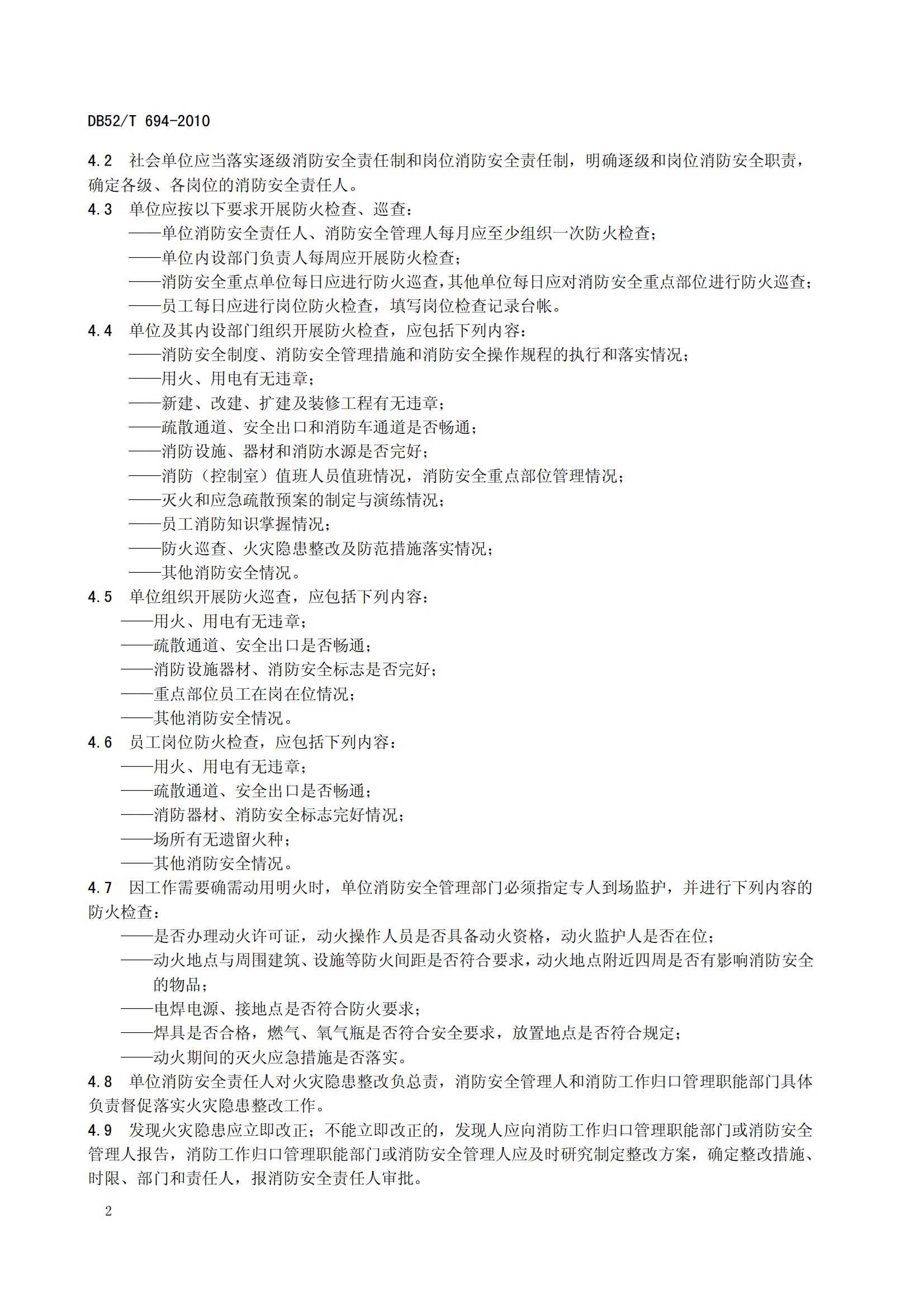 DB52∕T694-2010社会单位消防安全管理规程