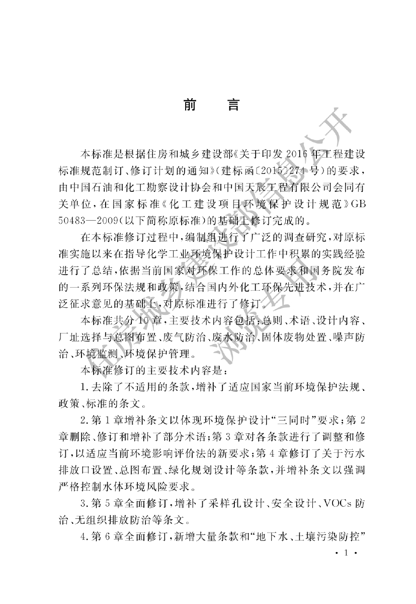 《化工建设项目环境保护设计规范》(GB50483-2009)