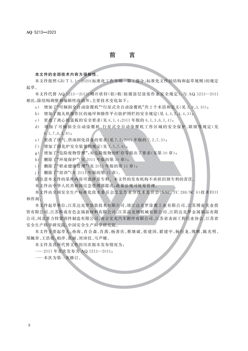 《鳞片状锌铝粉防腐涂层涂装作业安全规定》(AQ 5213-2023)