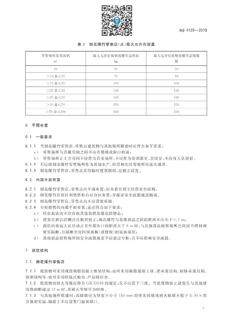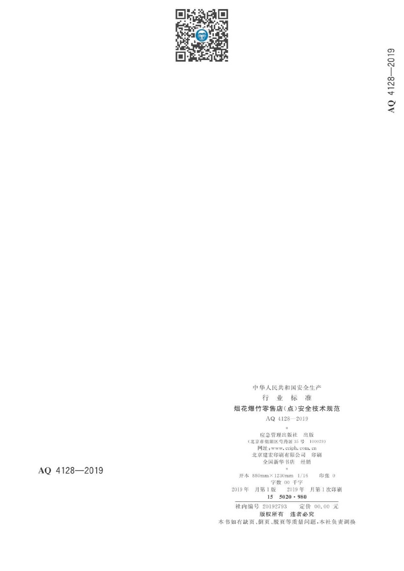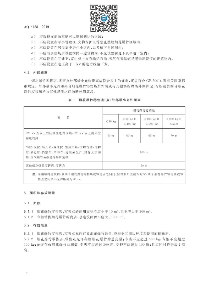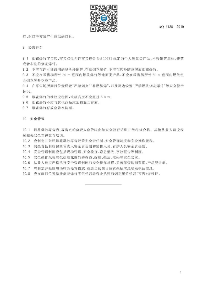 《烟花爆竹零售店(点)安全技术规范》(AQ 4128-2019 )