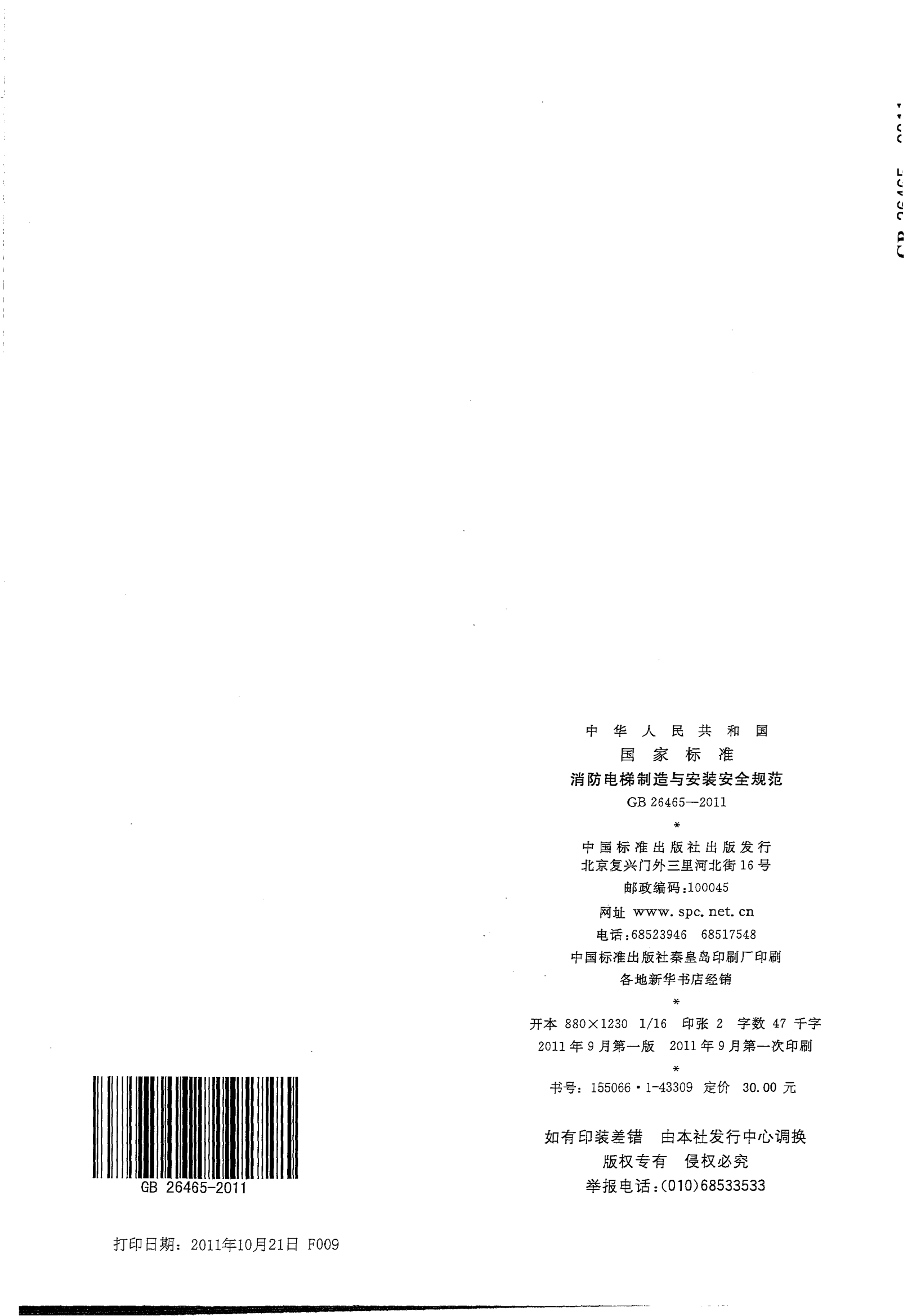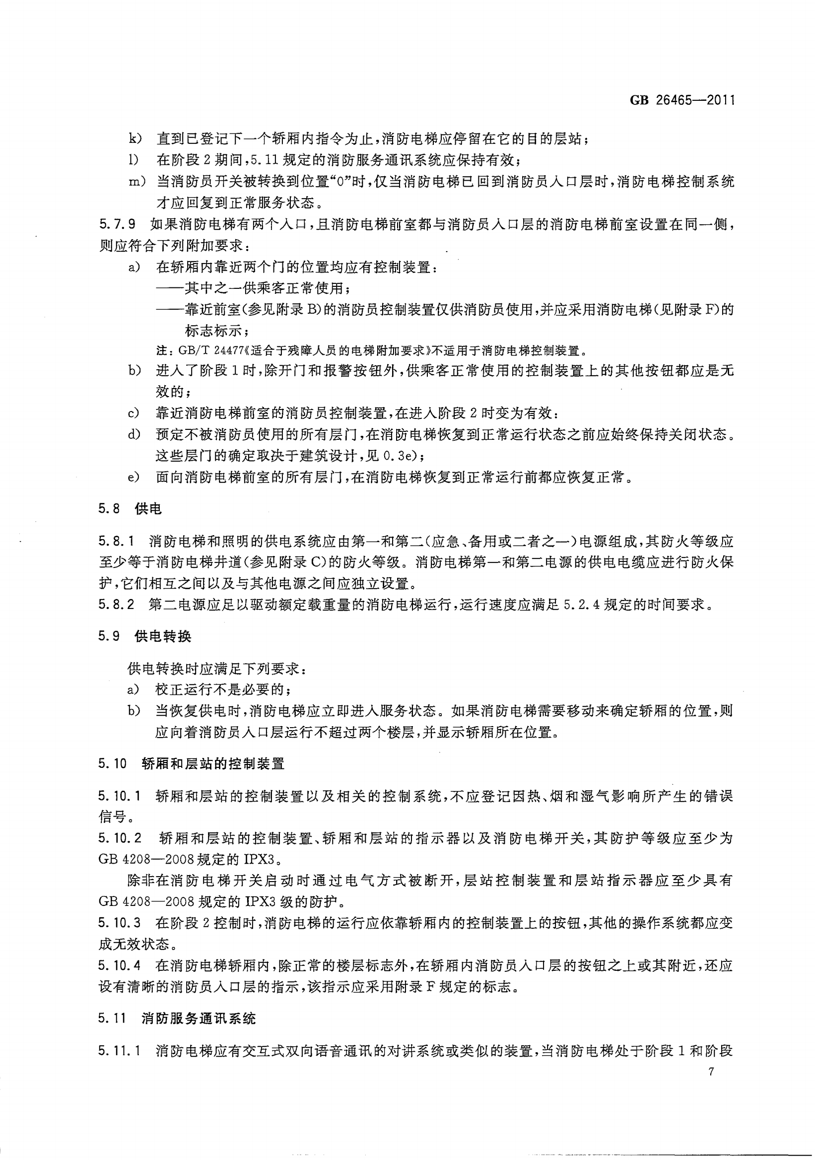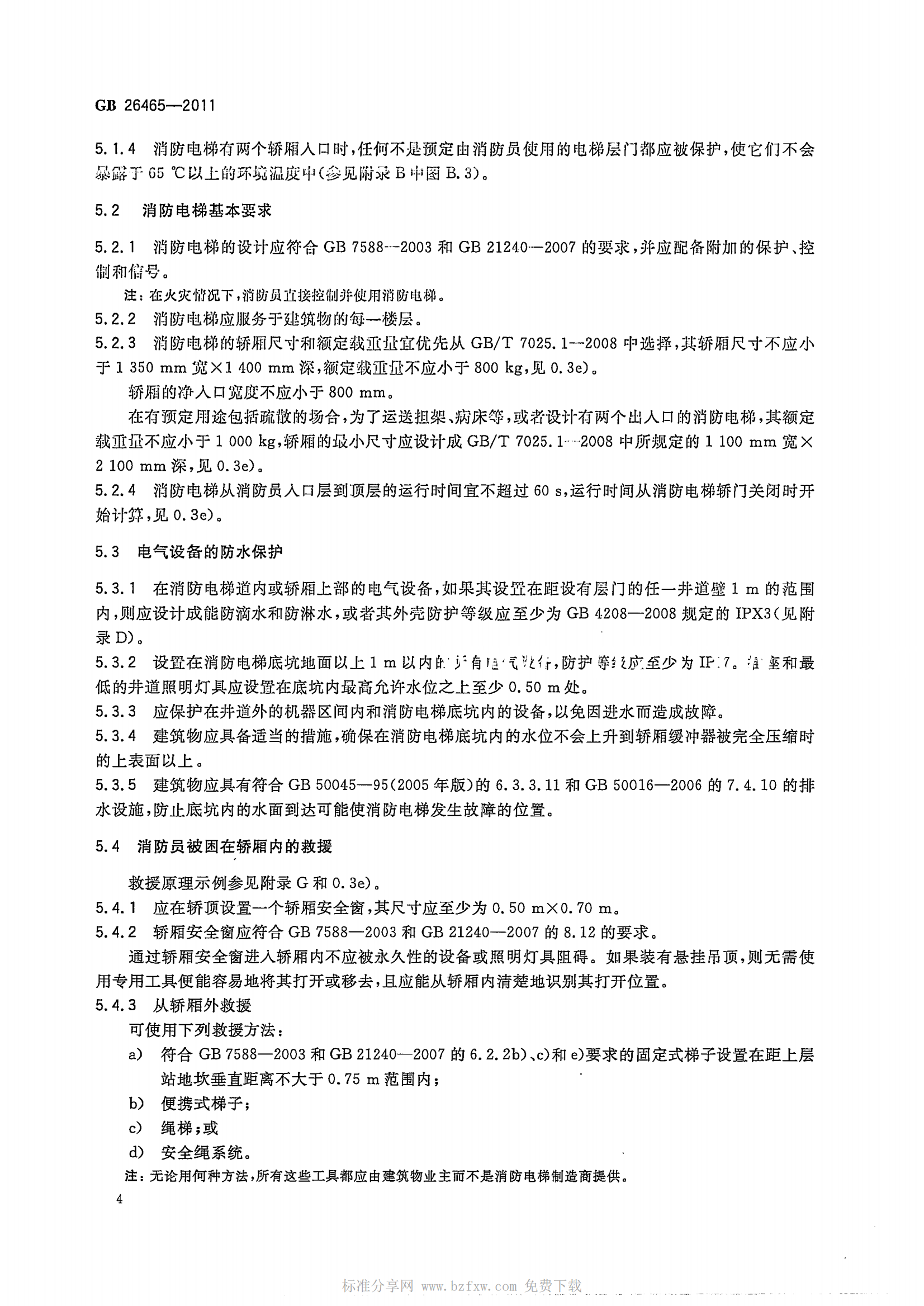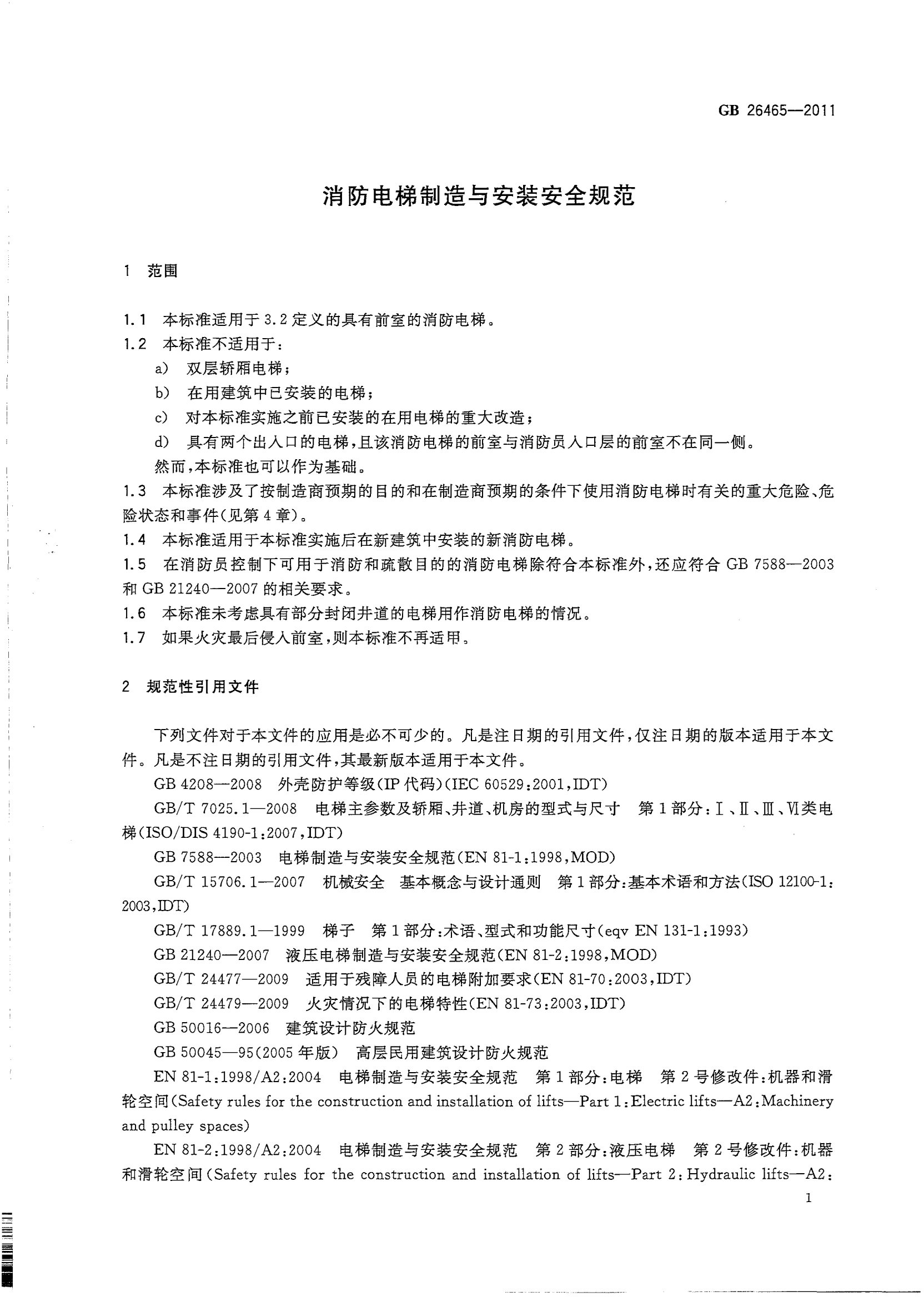 GB26465-2011消防电梯制造与安装安全规范