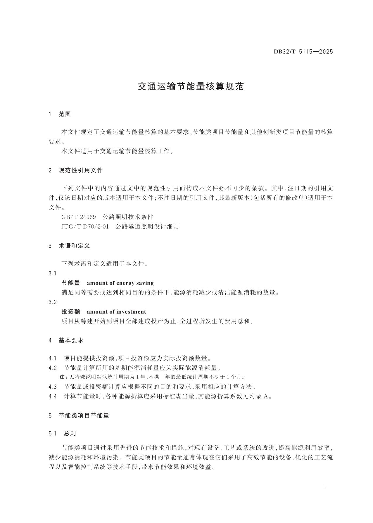 《交通运输节能量核算规范》(DB32/T 5115-2025)
