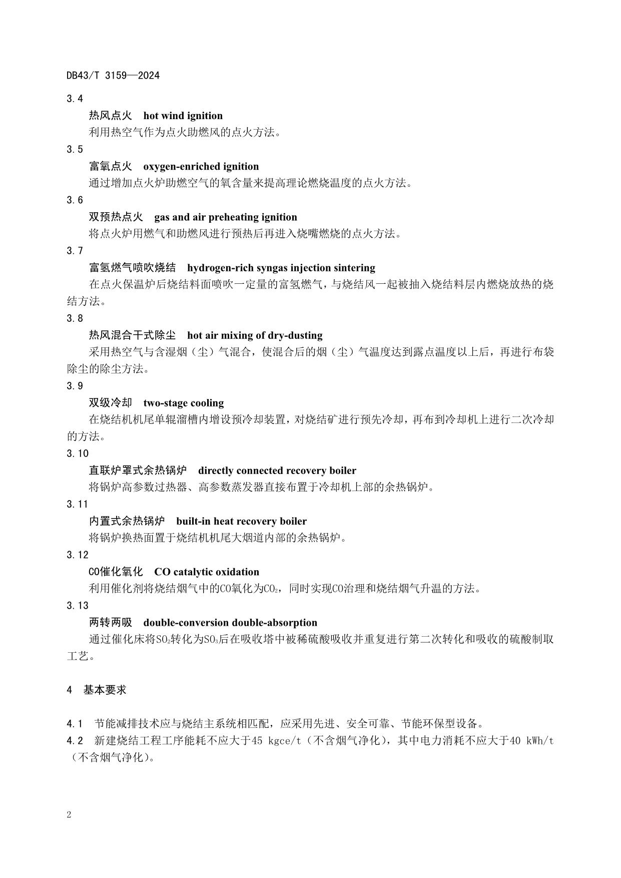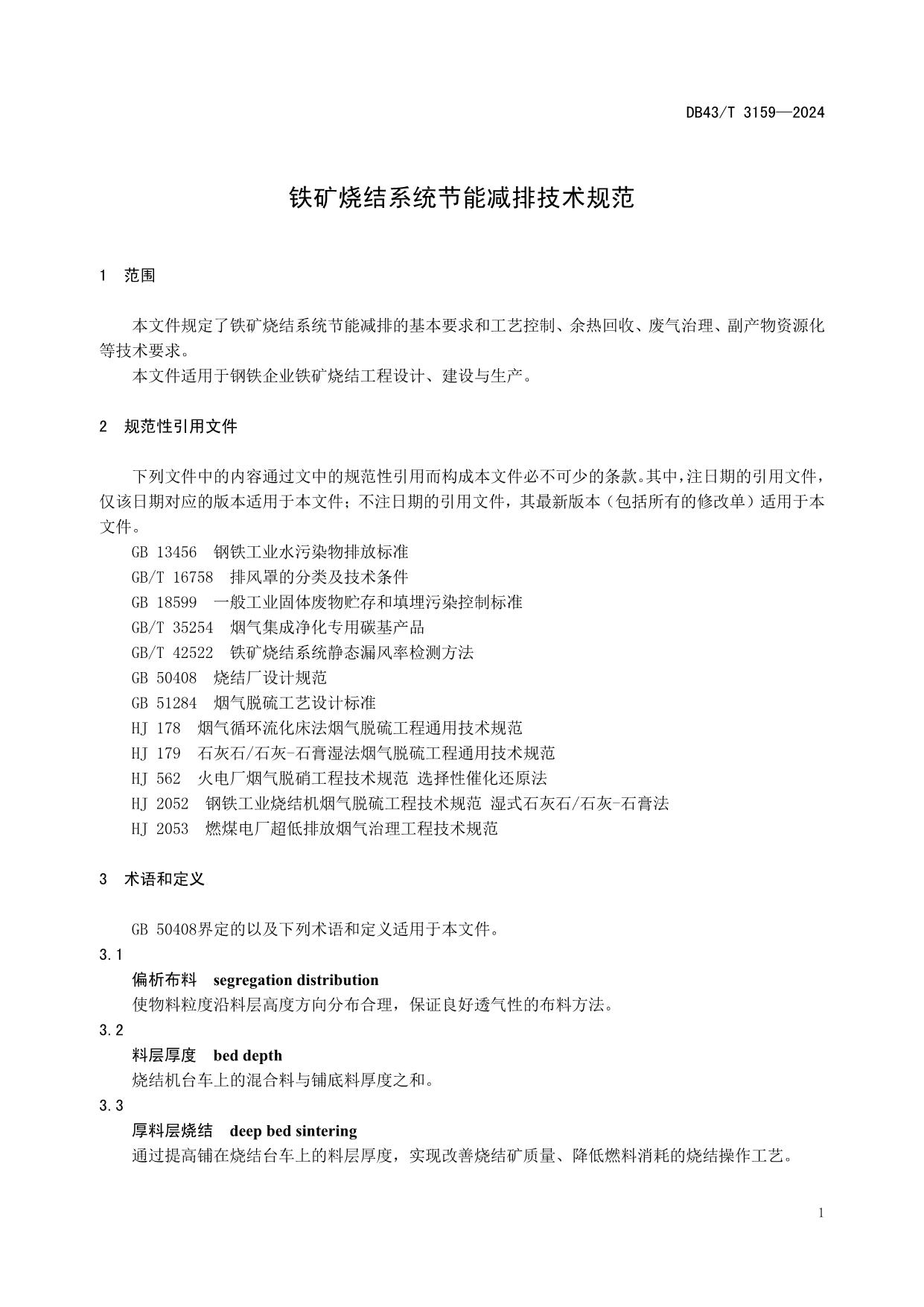 《铁矿烧结系统节能减排技术规范》(DB43/T 3159-2024)