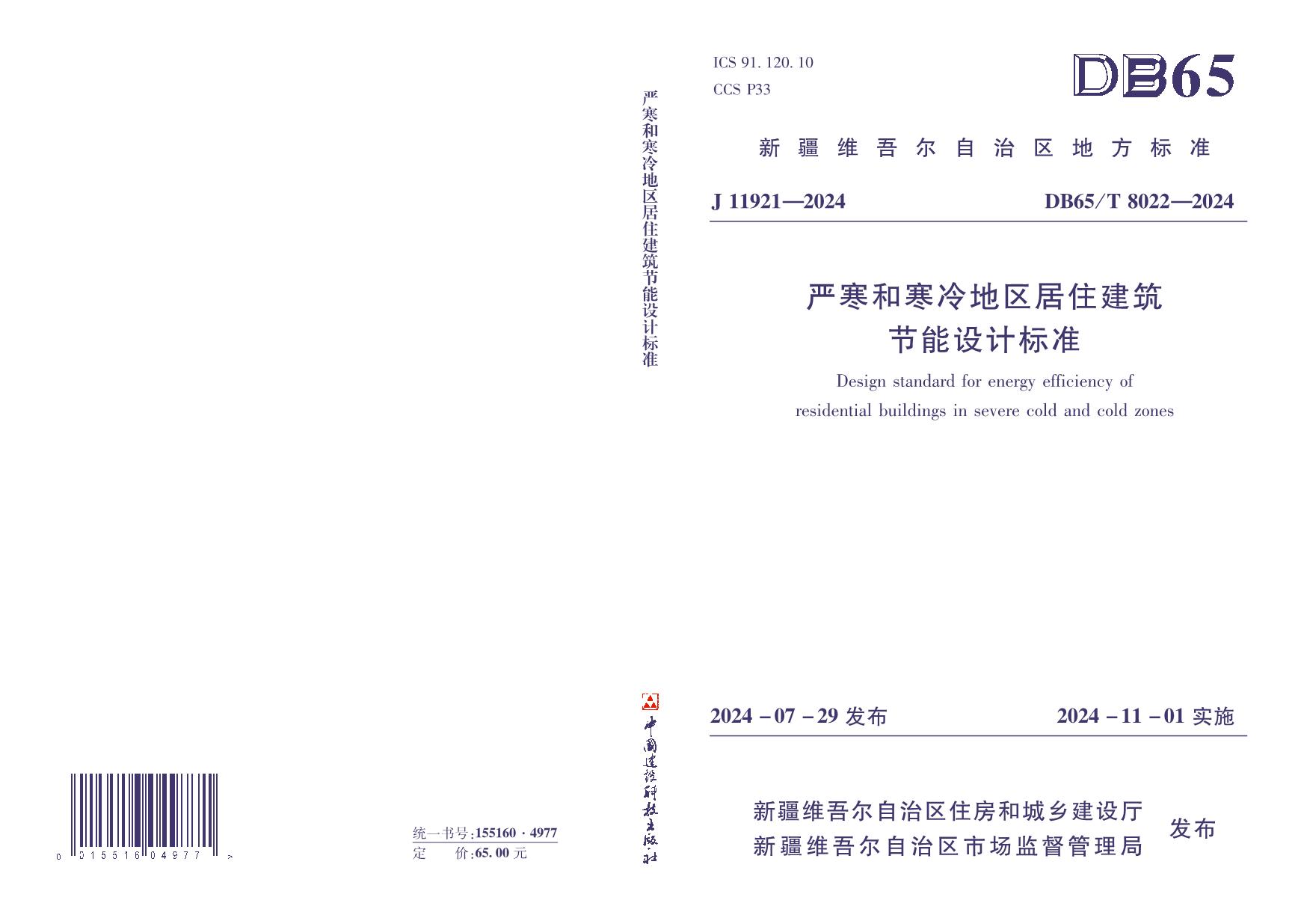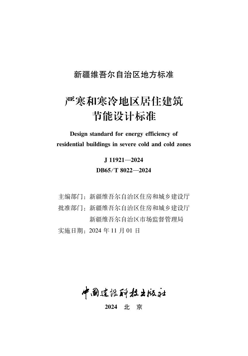 《严寒和寒冷地区居住建筑节能设计标准》(DB65/T8022-2024)