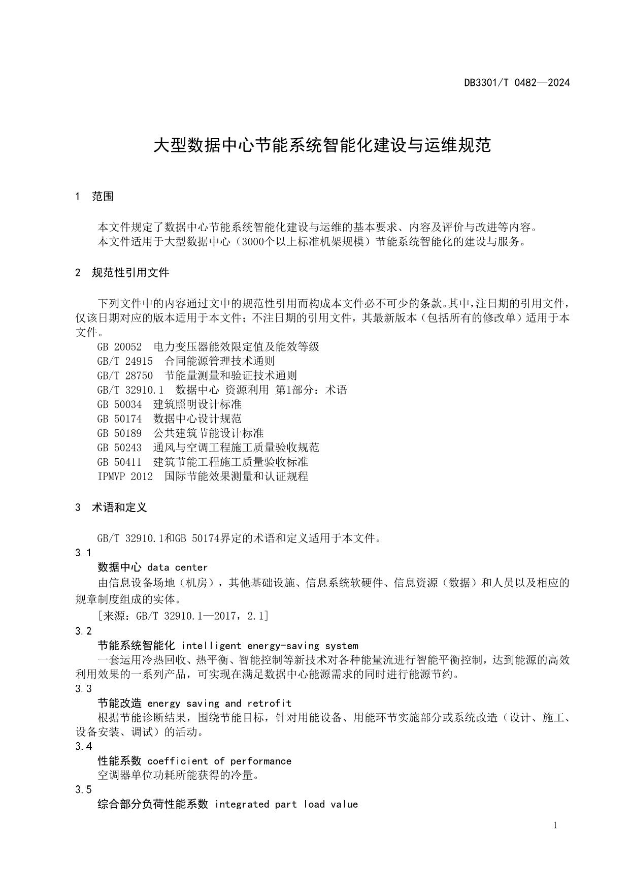 《大型数据中心节能系统智能化建设与运维规范》(DB3301/T 0482—2024)