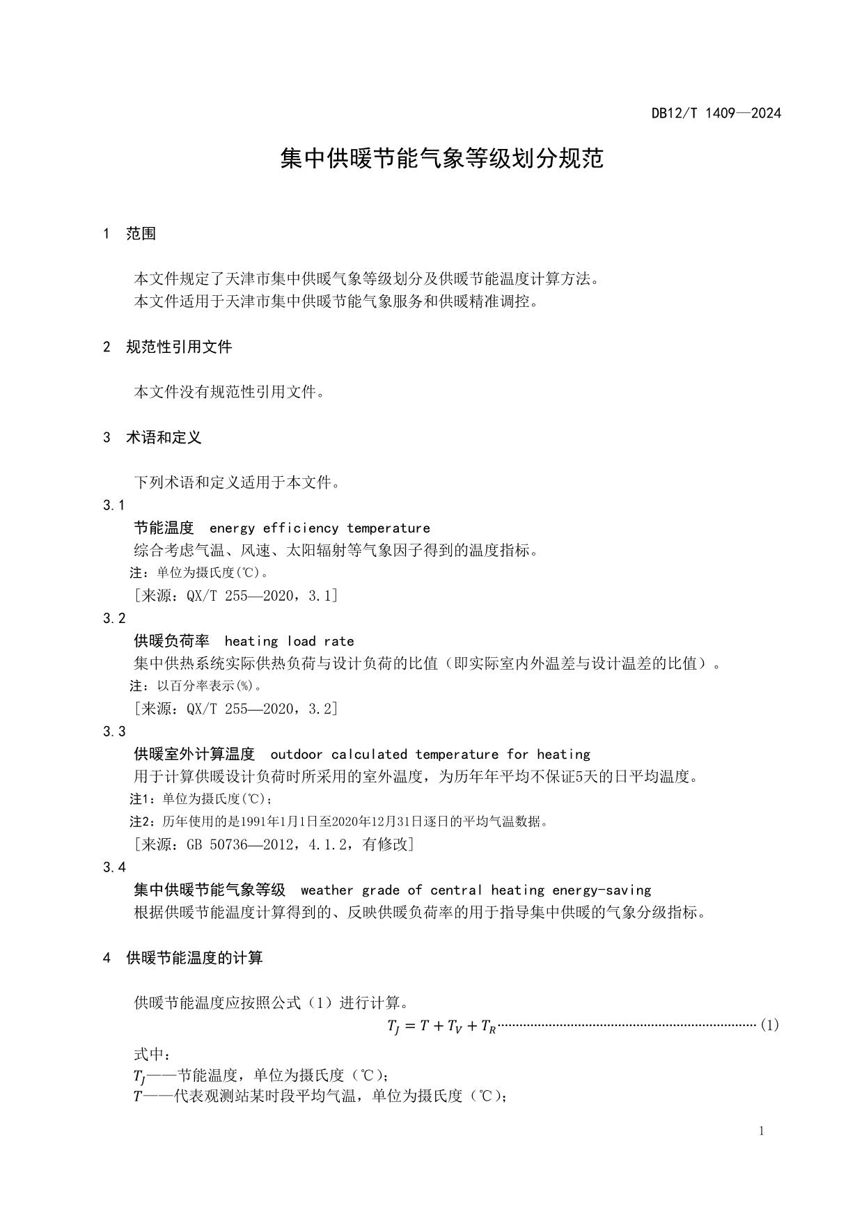 《集中供暖节能气象等级划分规范》(DB12/T 1409-2024)