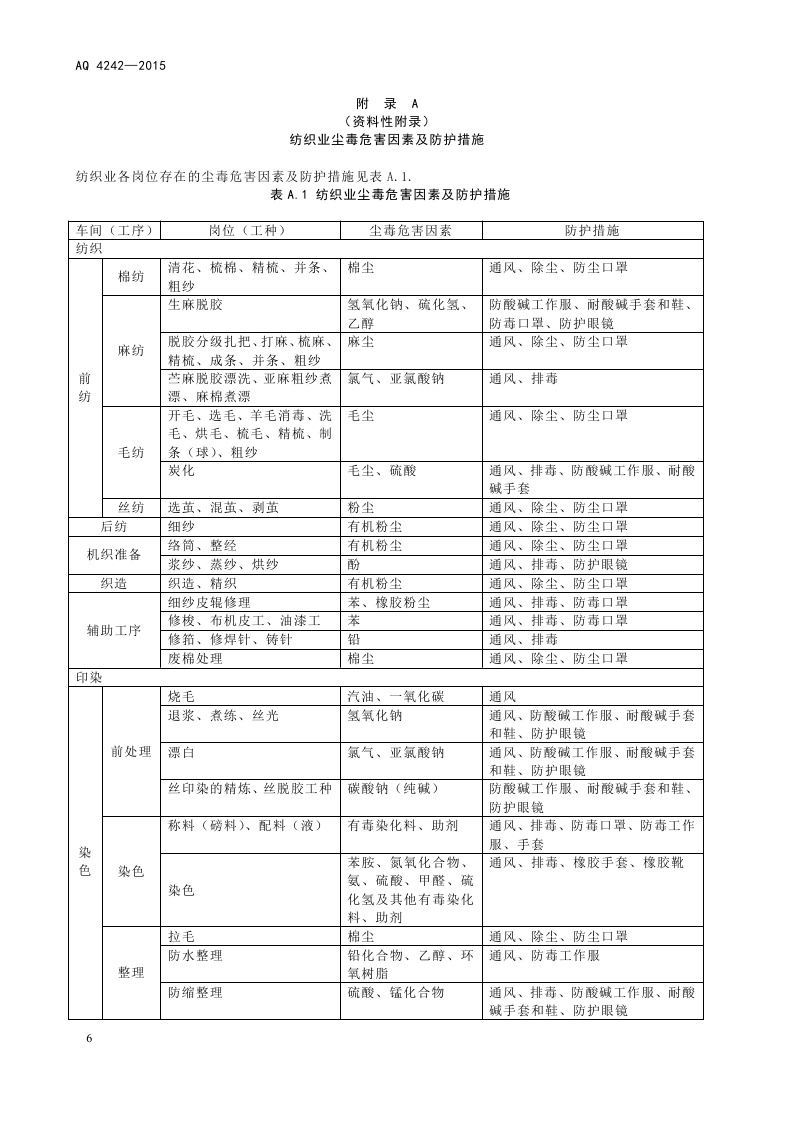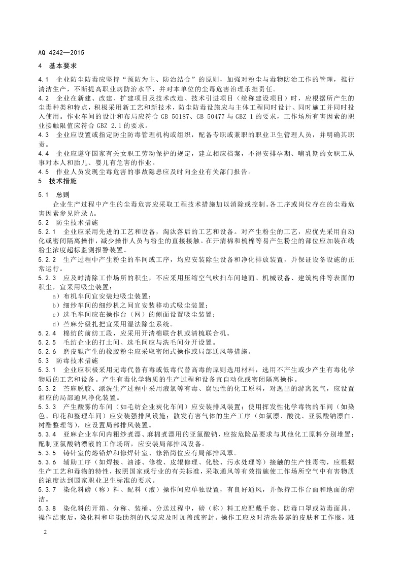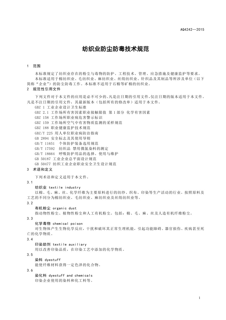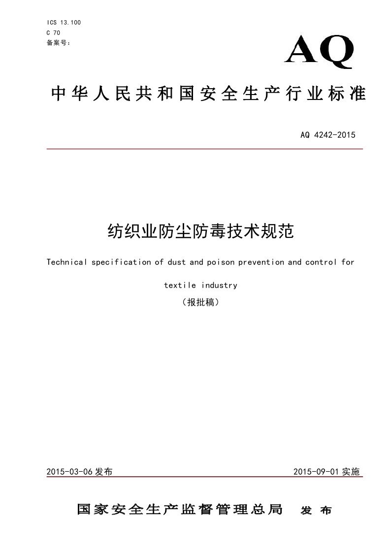 《纺织业防尘防毒技术规范(报批稿)》(AQ4242-2015)