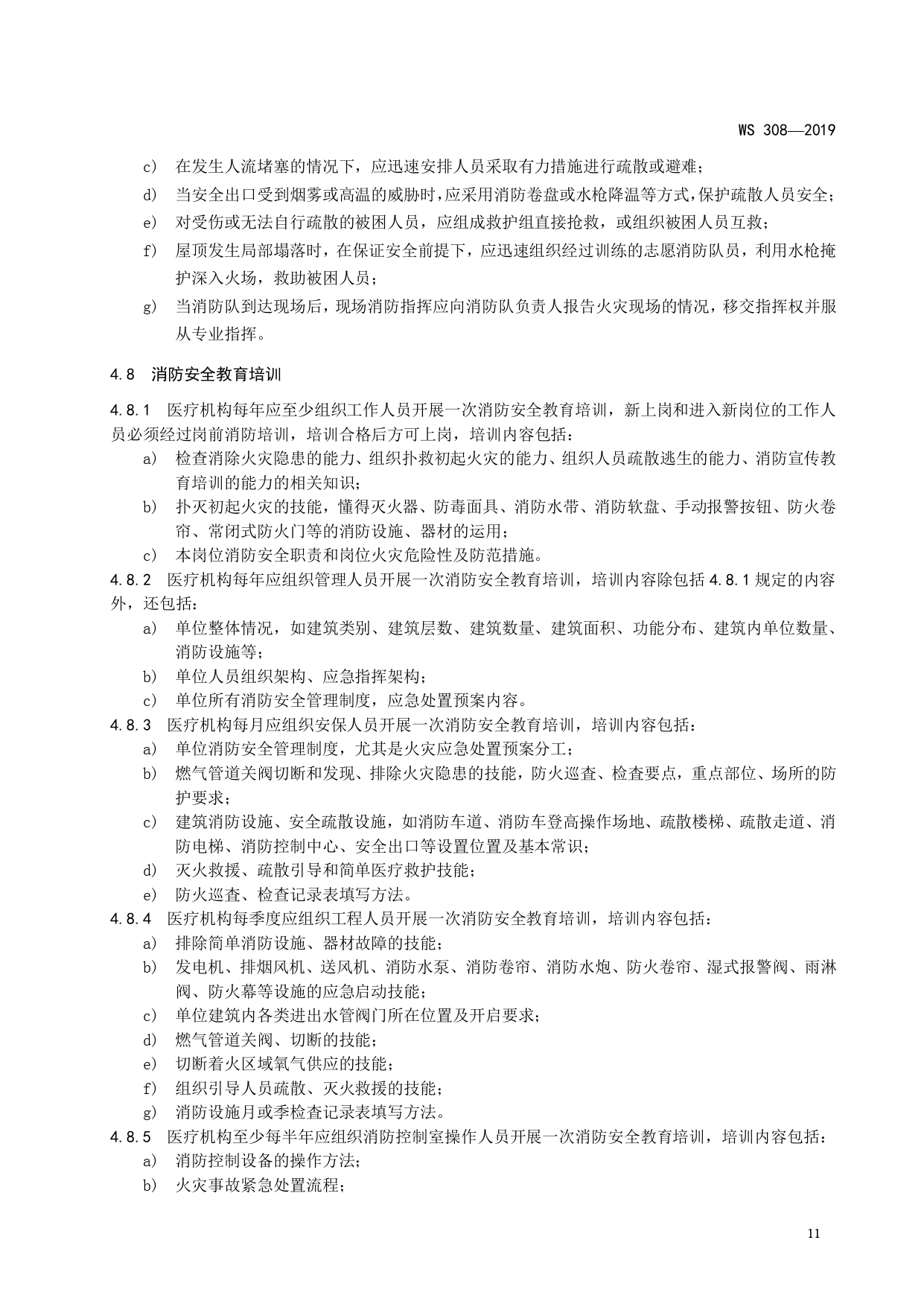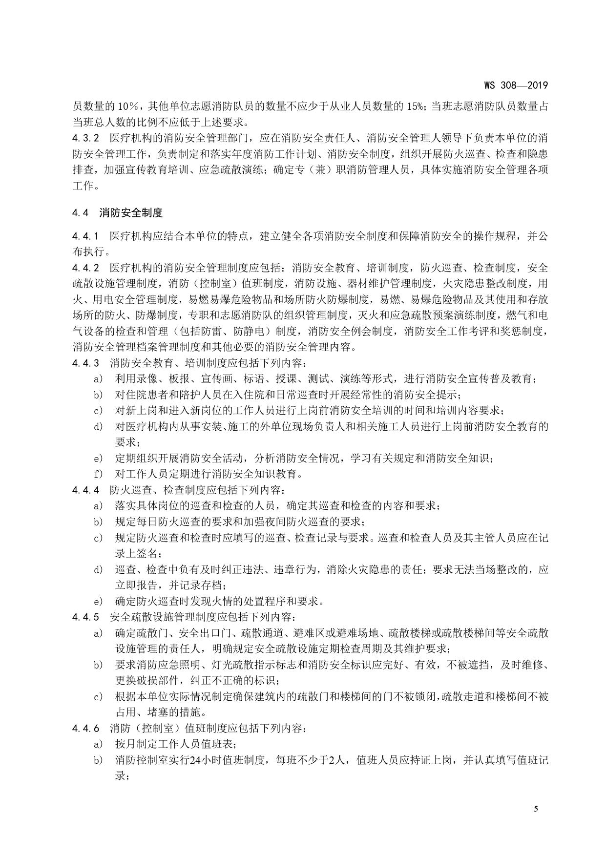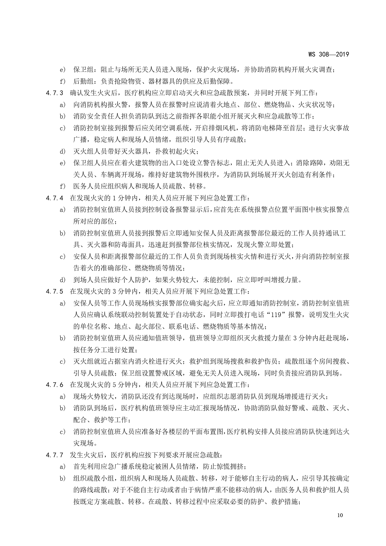 WS308-2019医疗机构消防安全管理