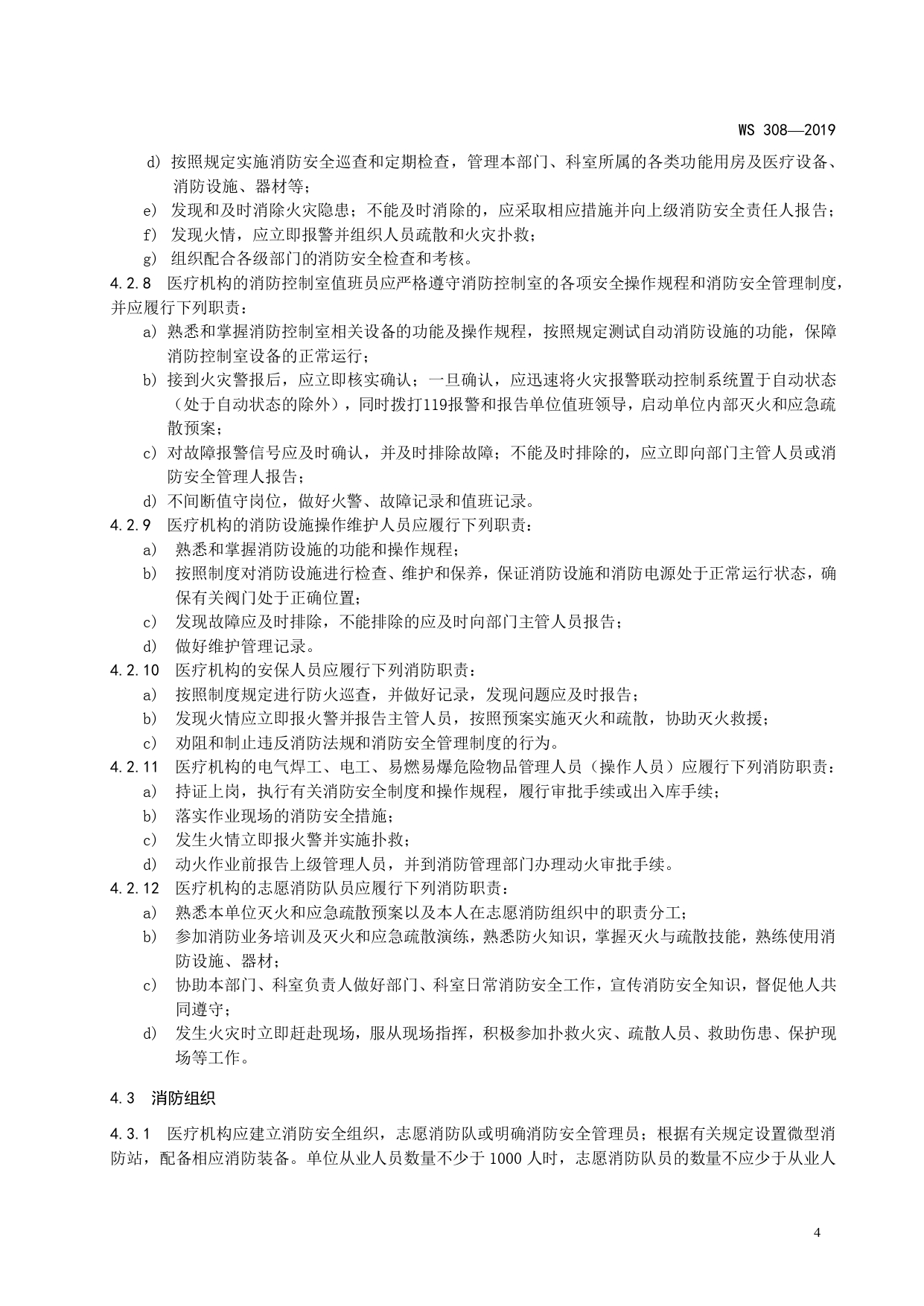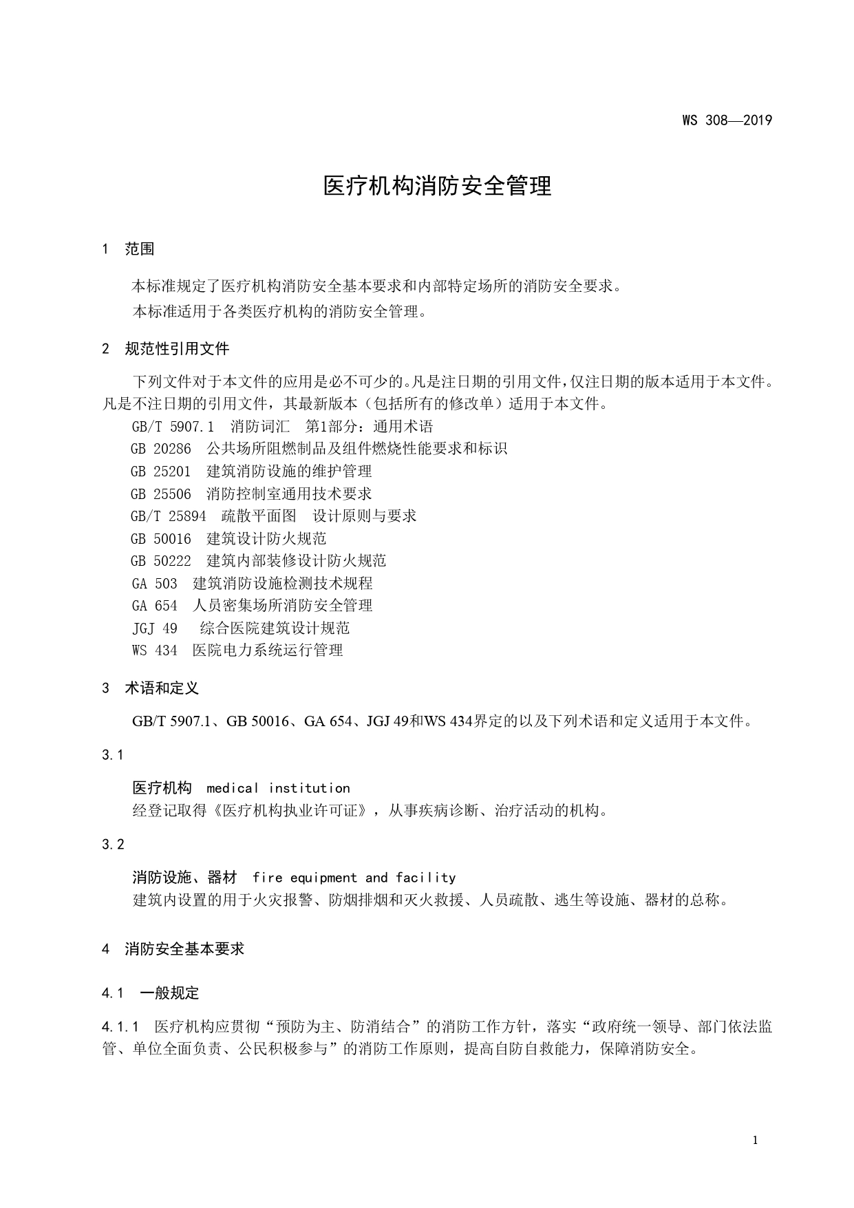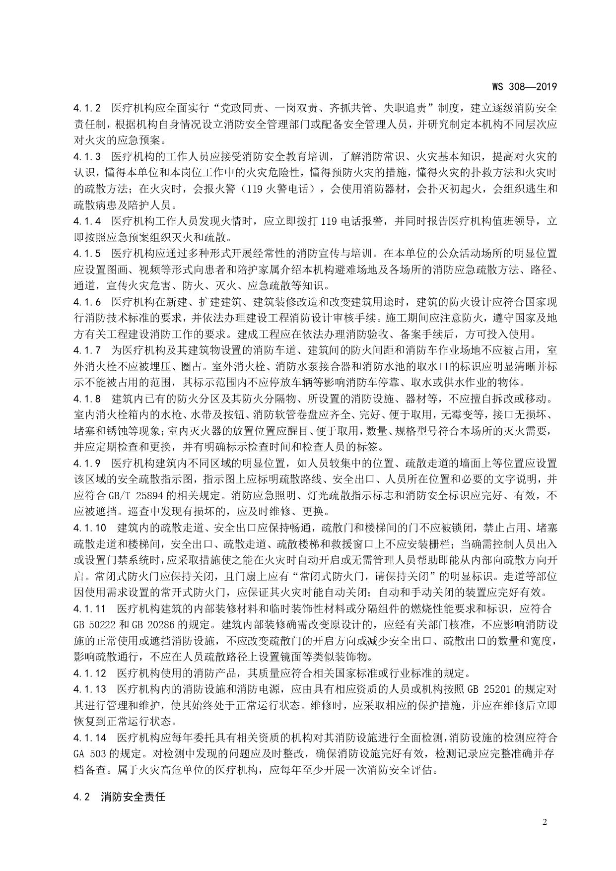 WS308-2019医疗机构消防安全管理