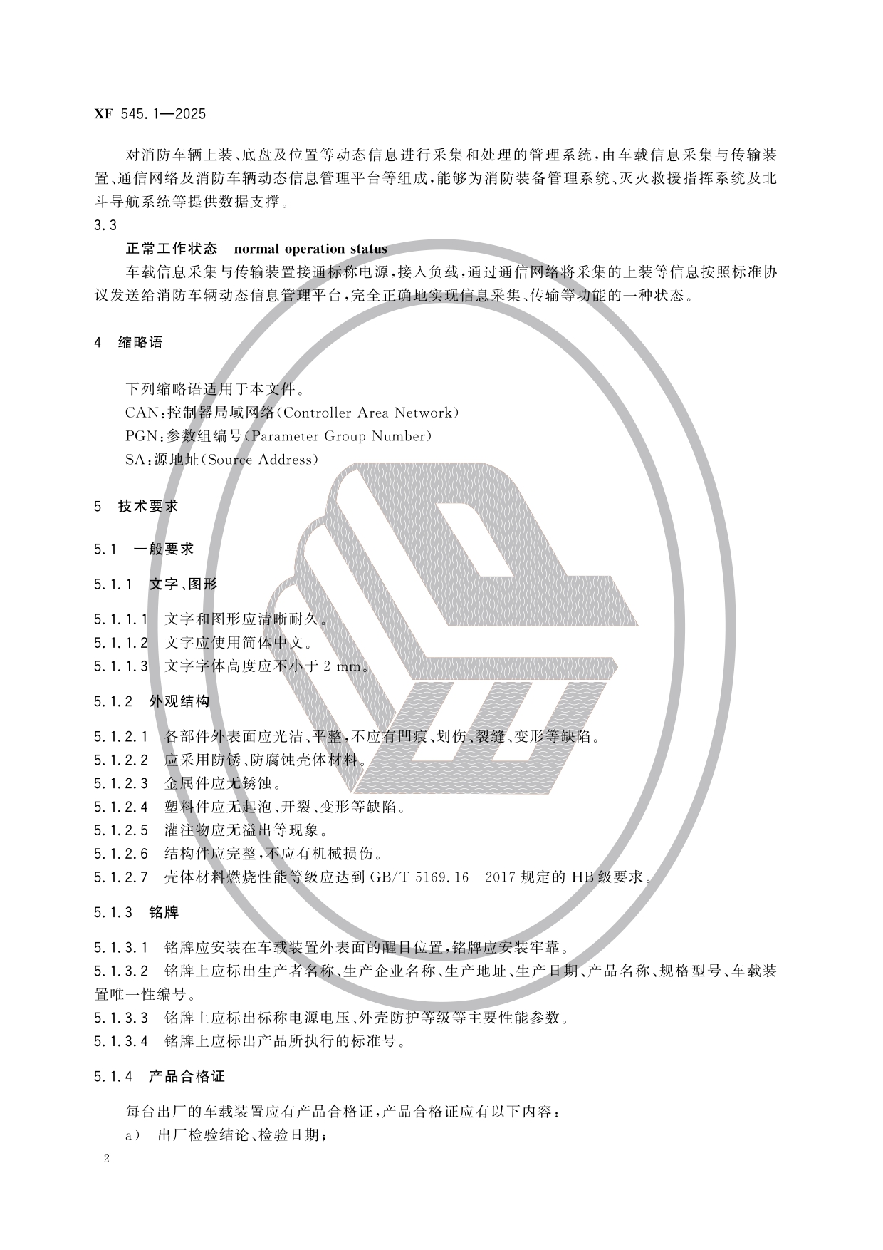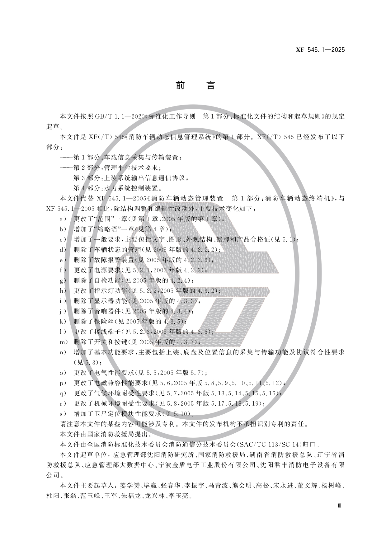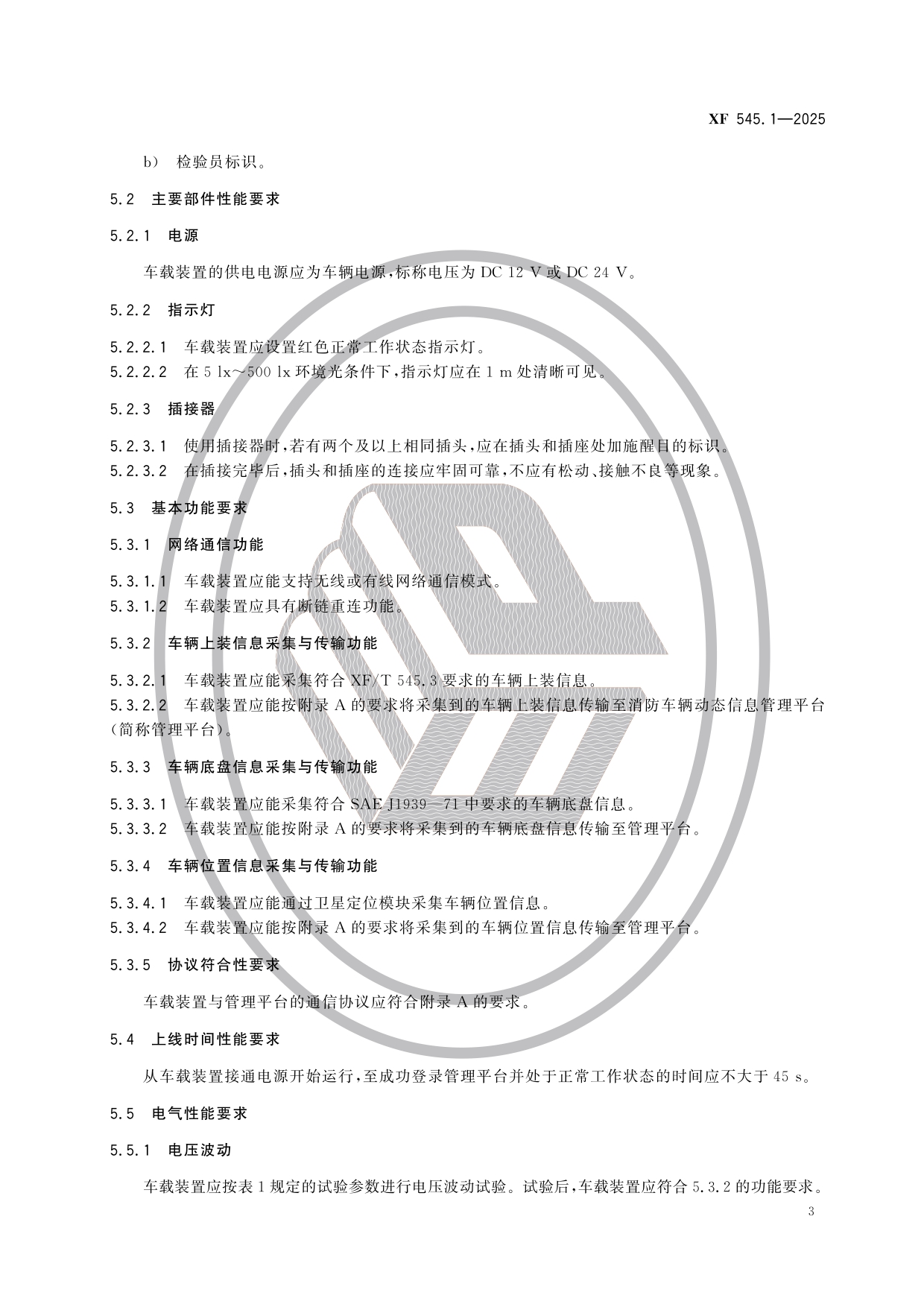 XF 545.1-2025 消防车辆动态信息管理系统 第1部分:车辆信息采集与传输装置