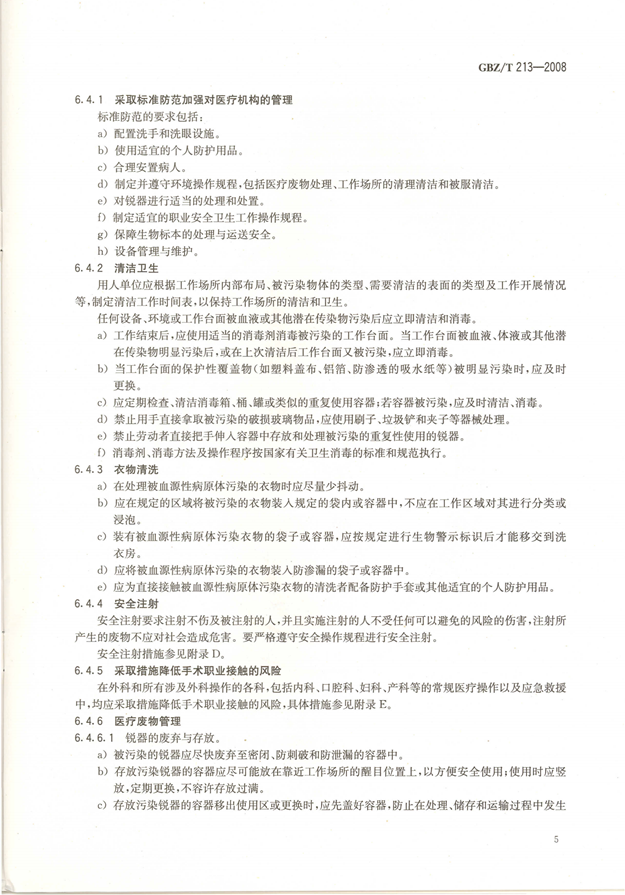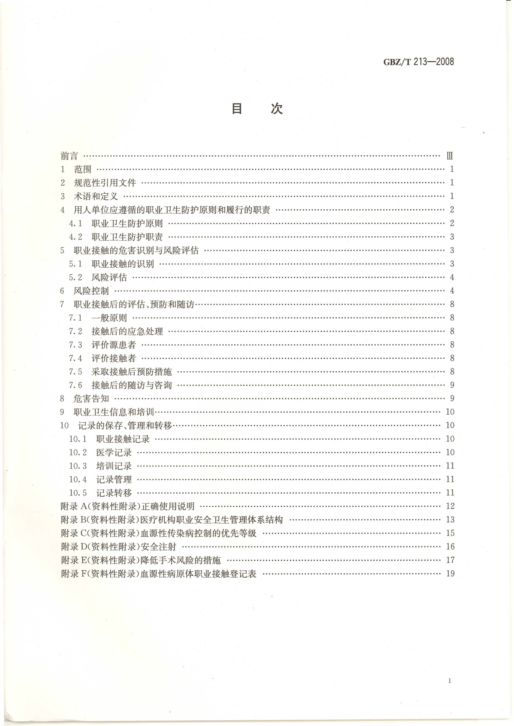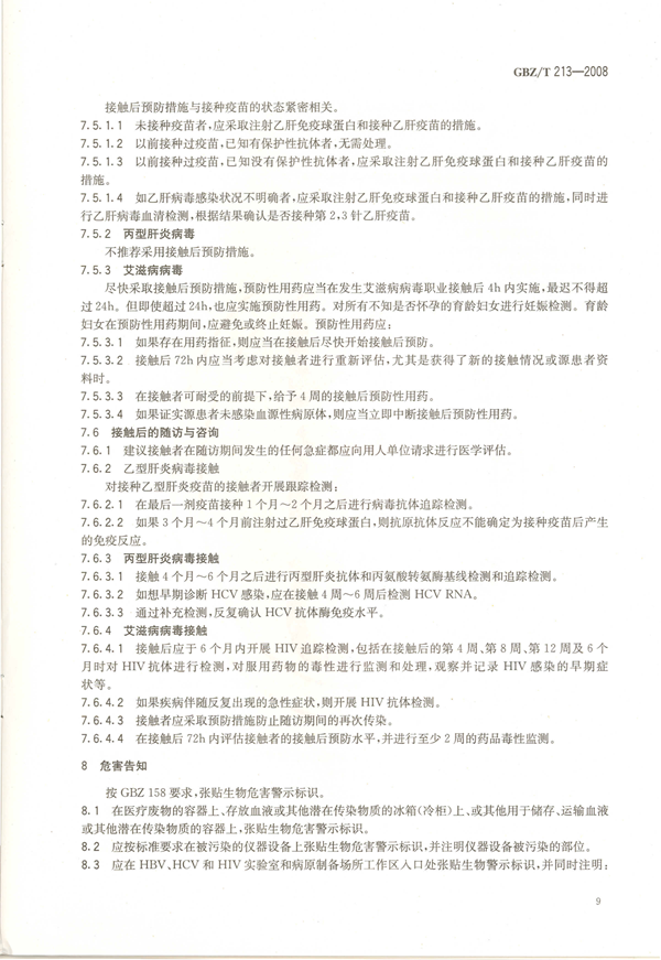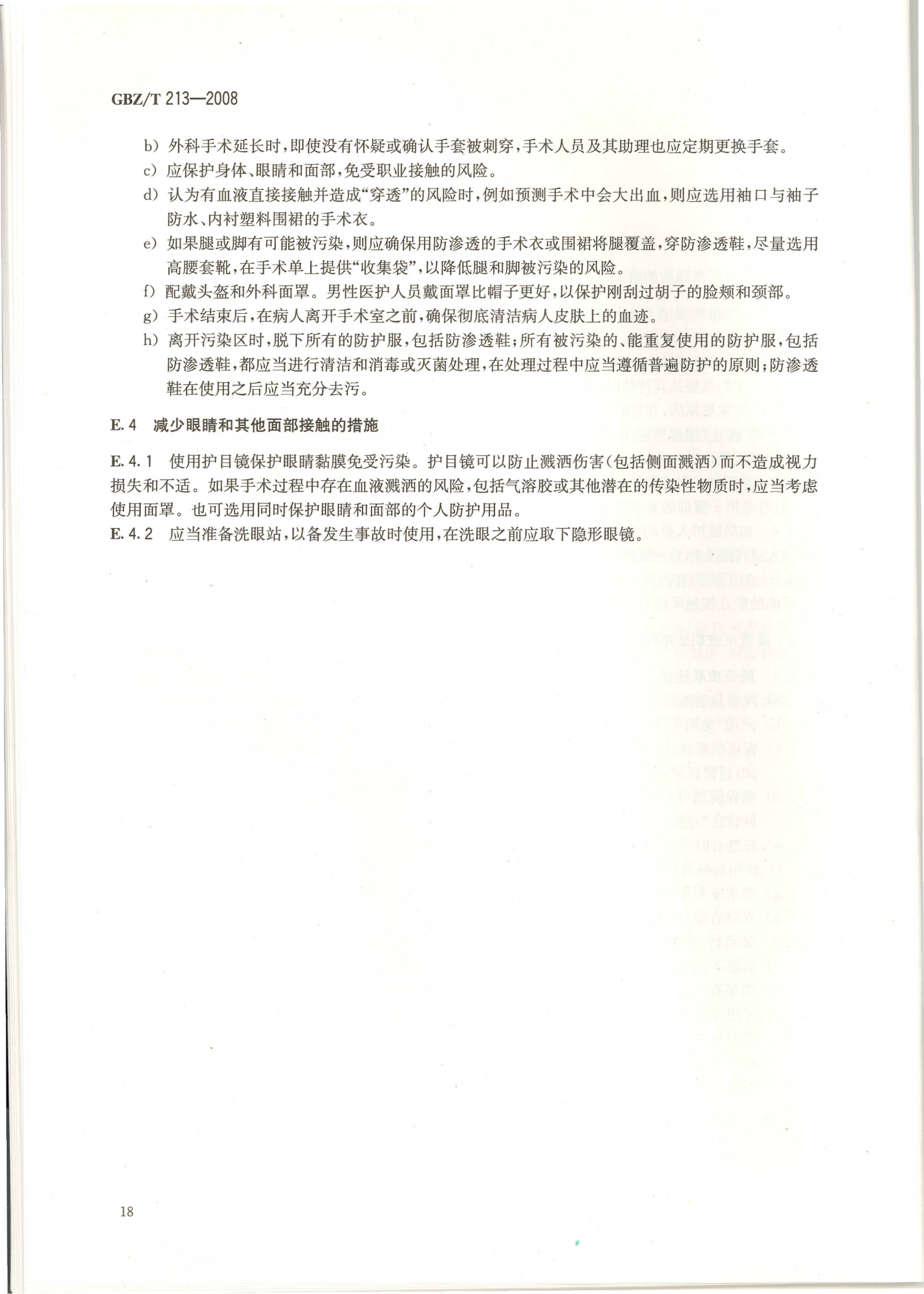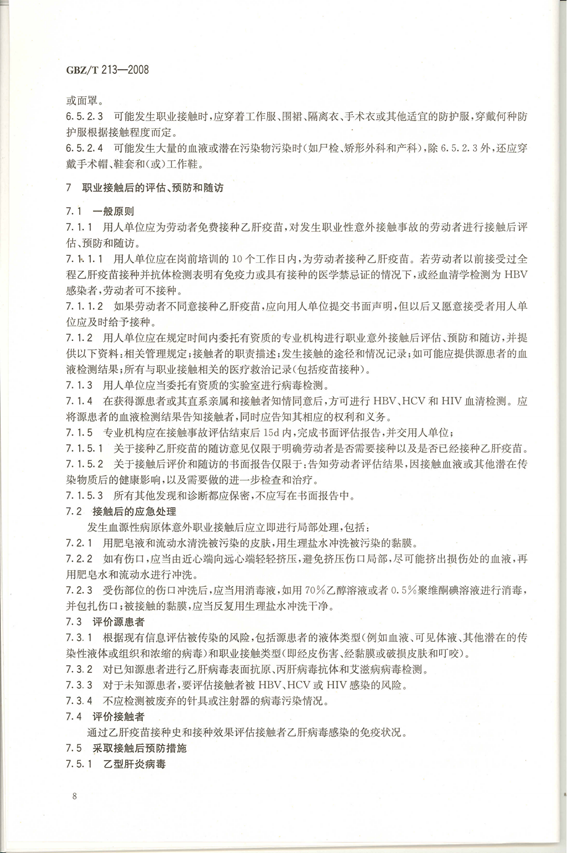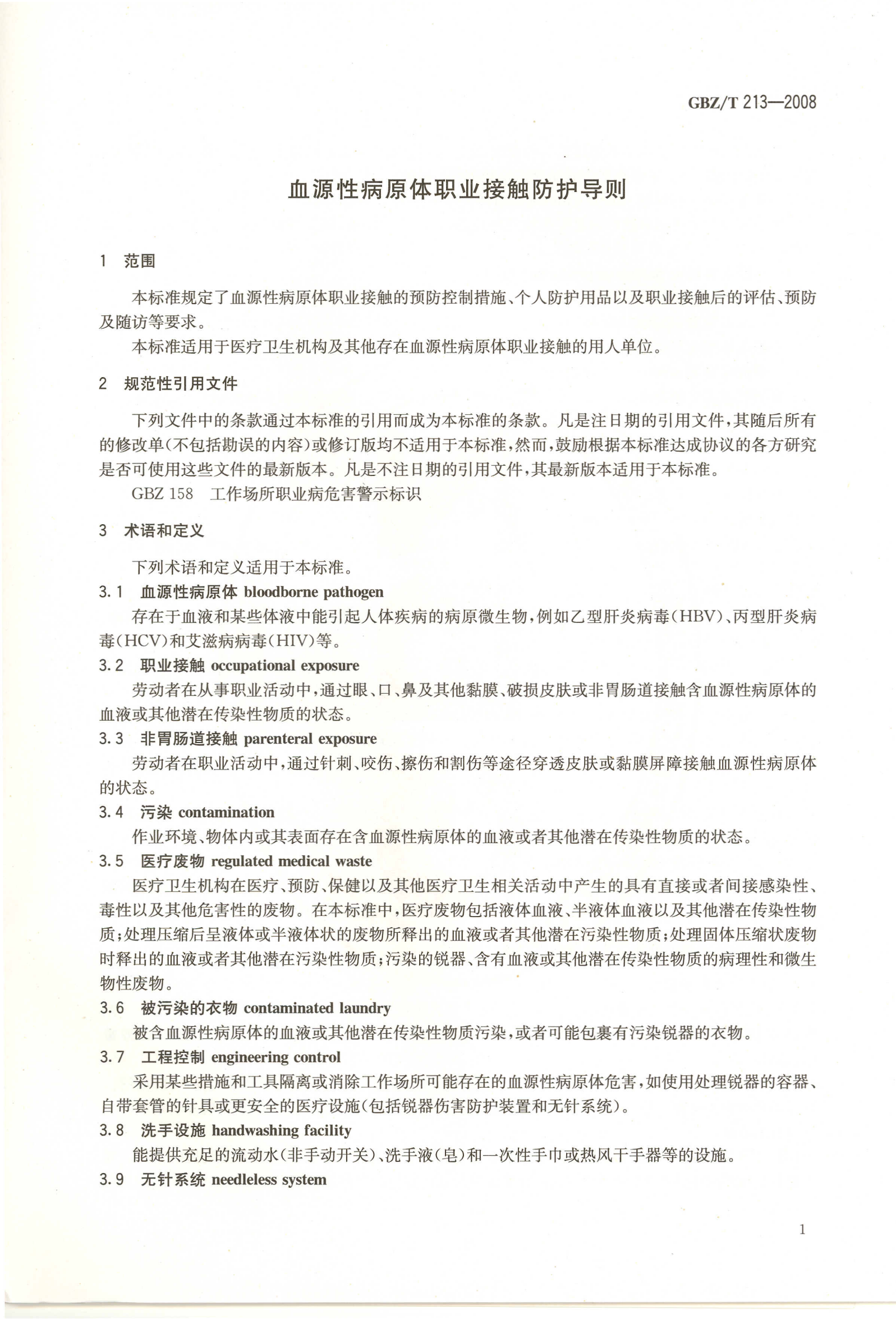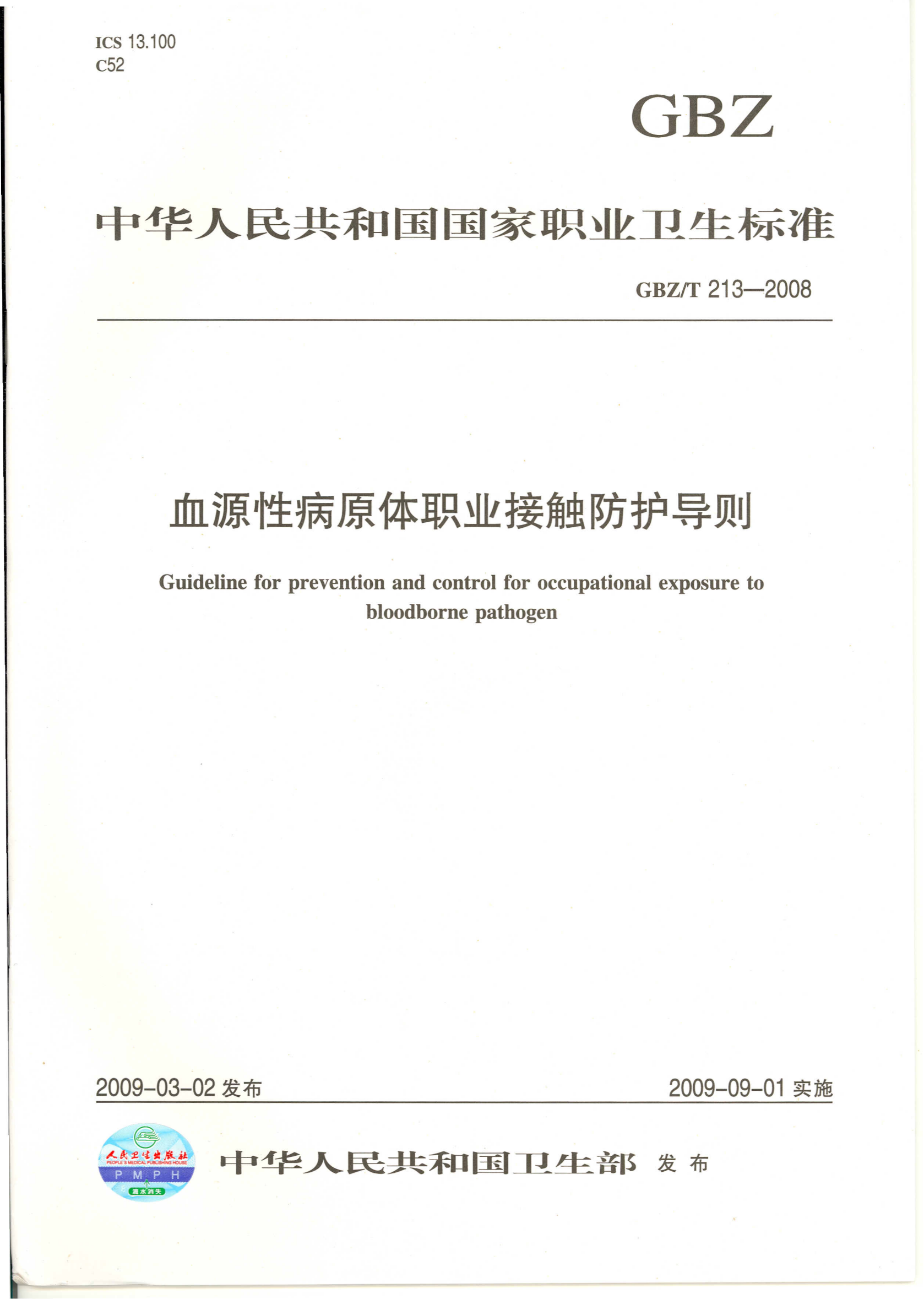 《血源性病原体职业接触防护导则》(GBZ/T213-2008)