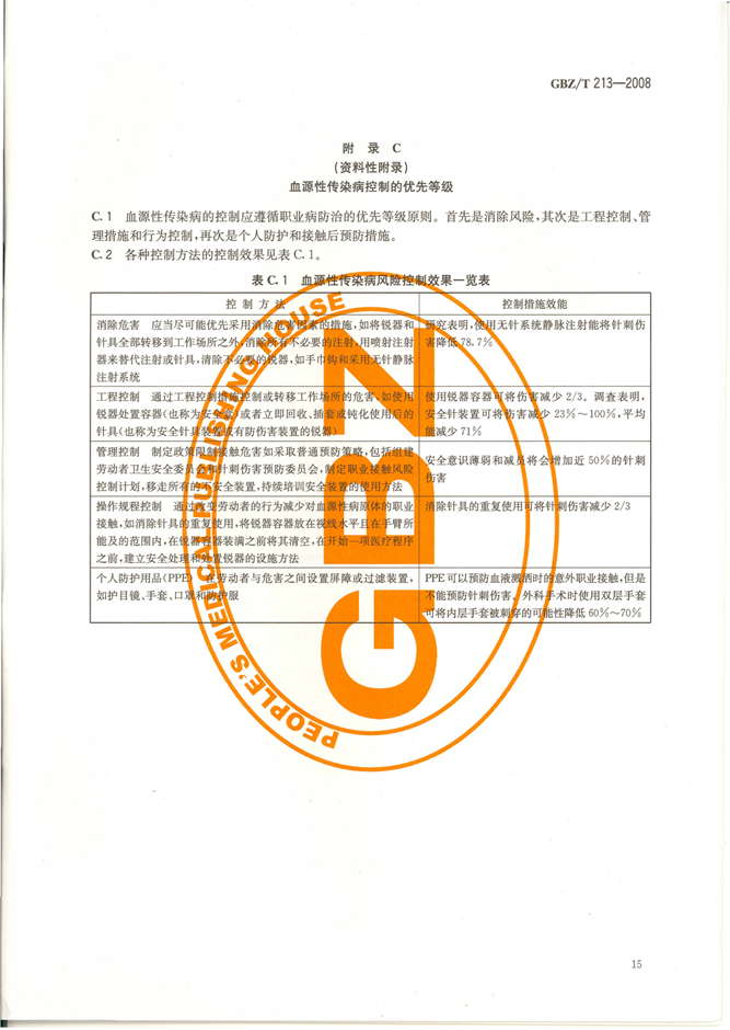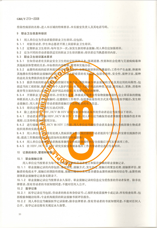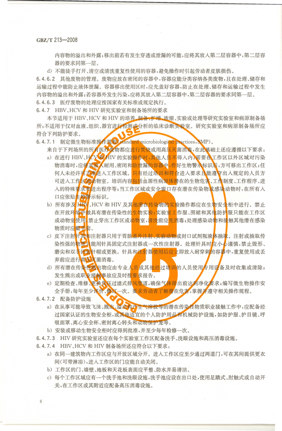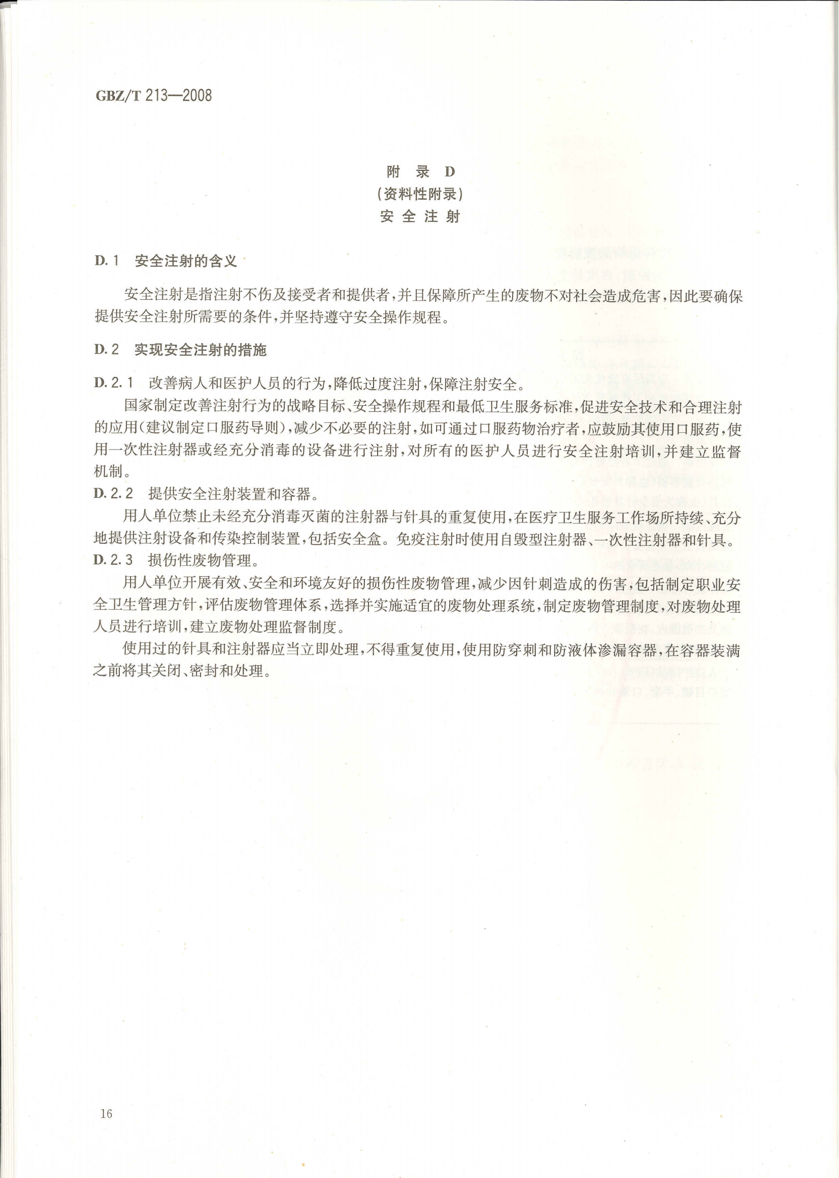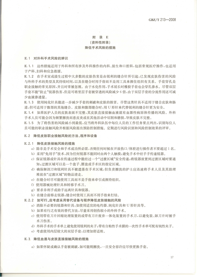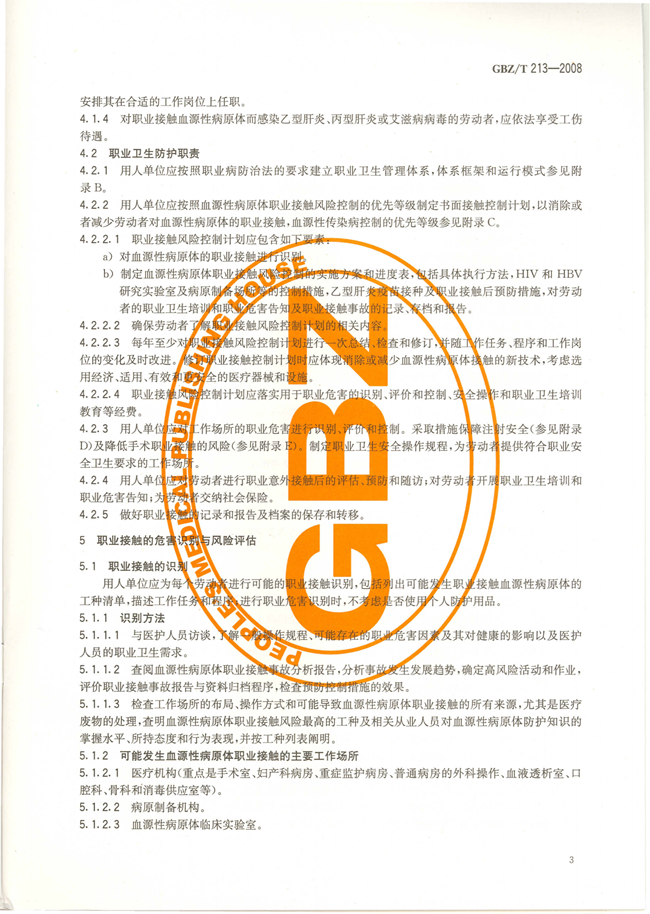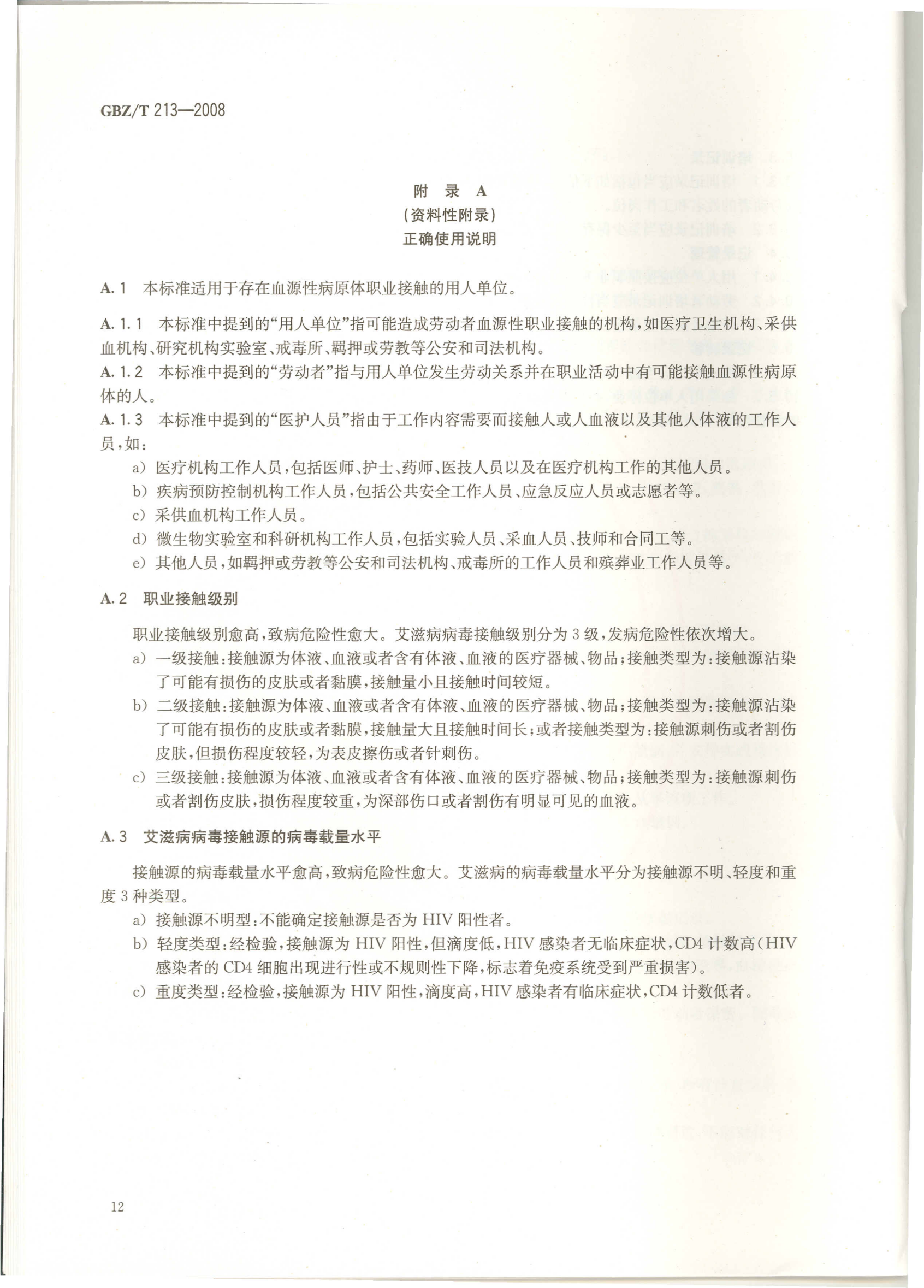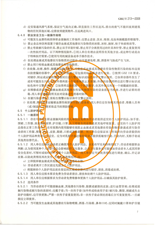 《血源性病原体职业接触防护导则》(GBZ/T213-2008)