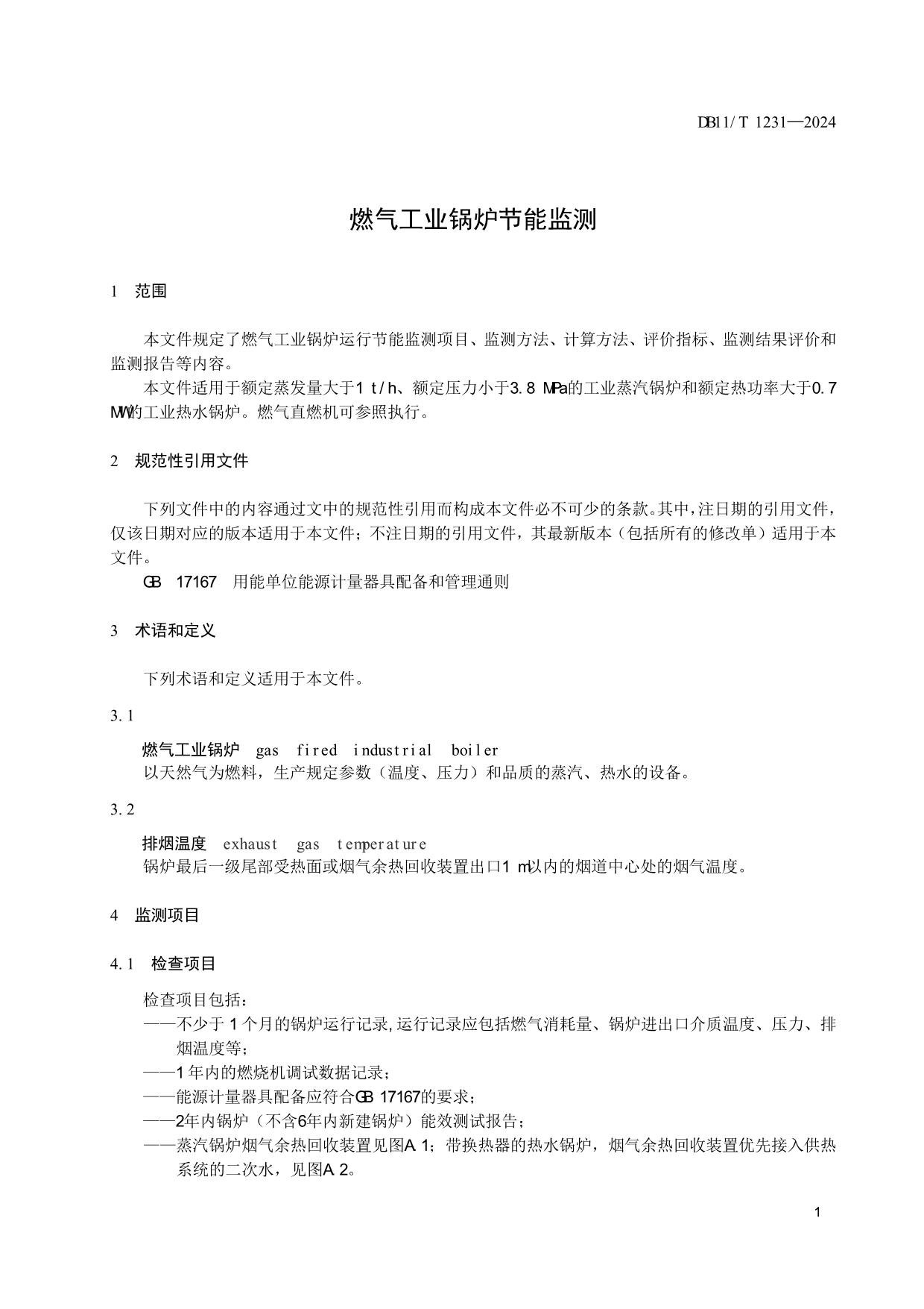 《燃气工业锅炉节能监测》(DB11/T 1231-2024 )