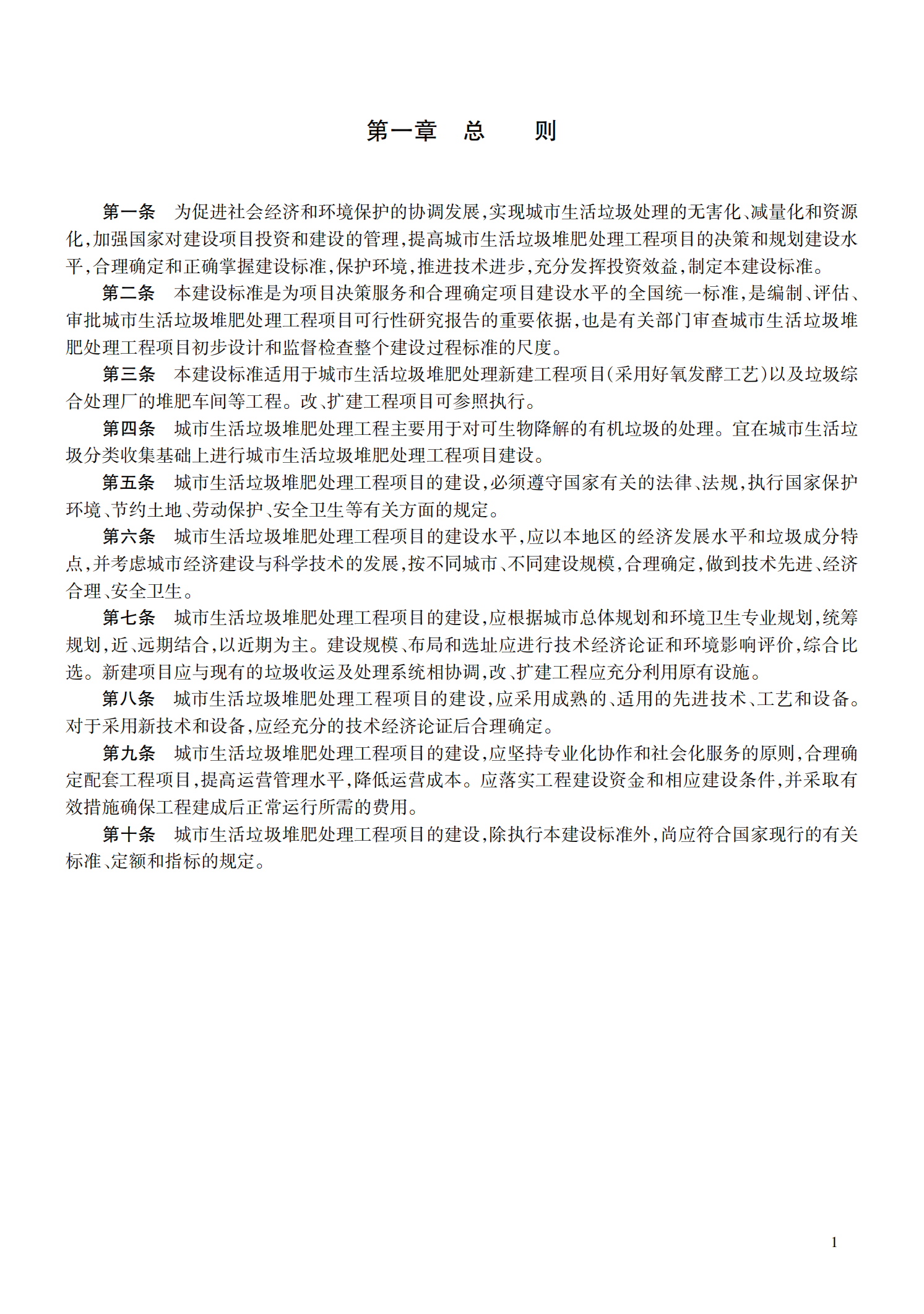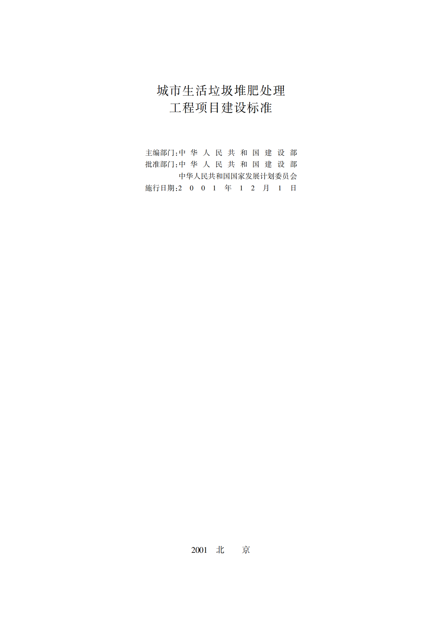 城市生活垃圾堆肥处理工程项目建设标准