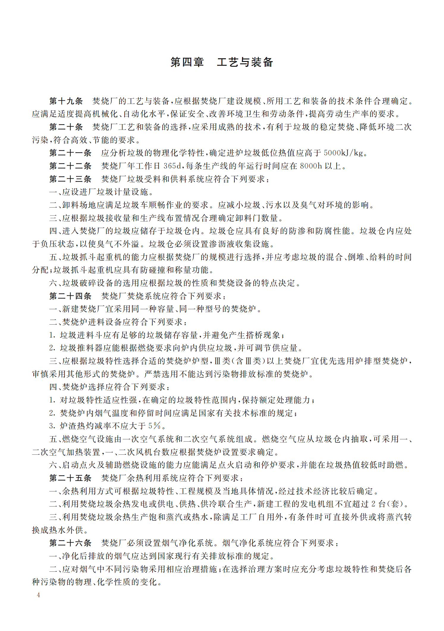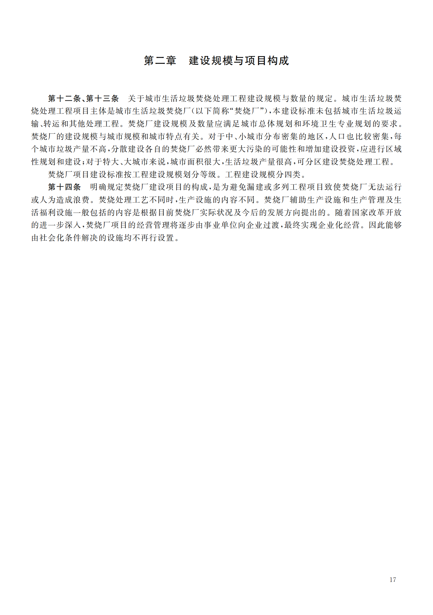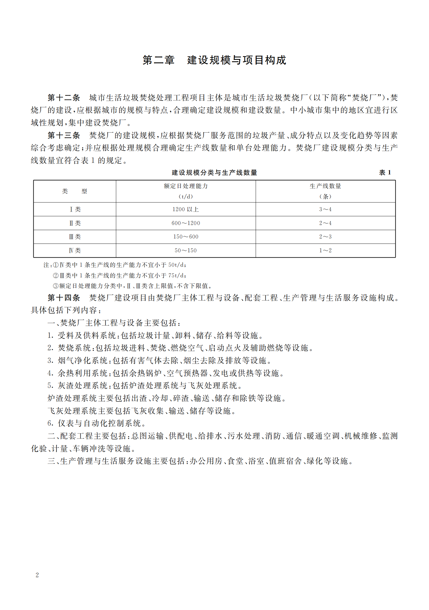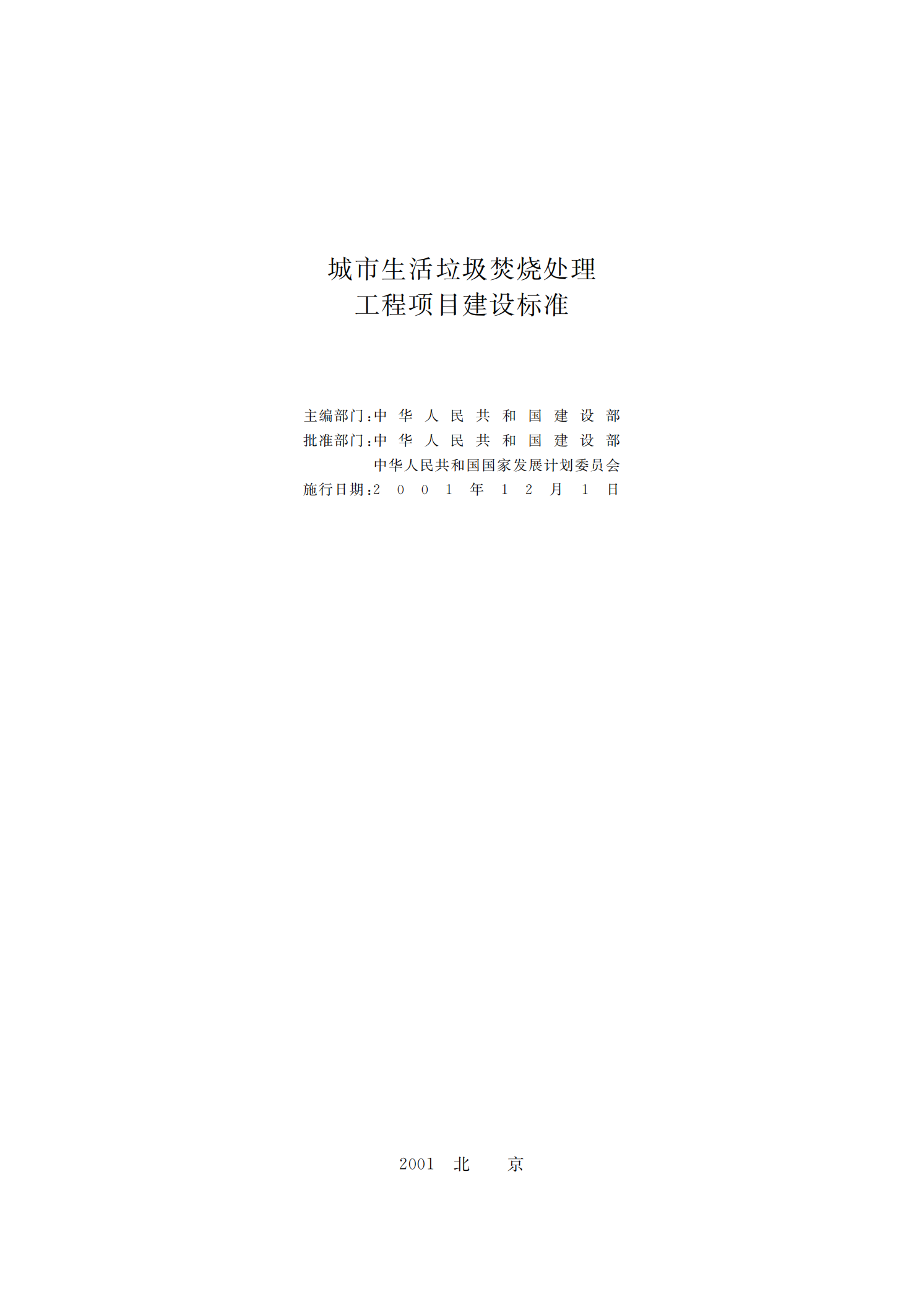 城市生活垃圾焚烧处理工程项目建设标准