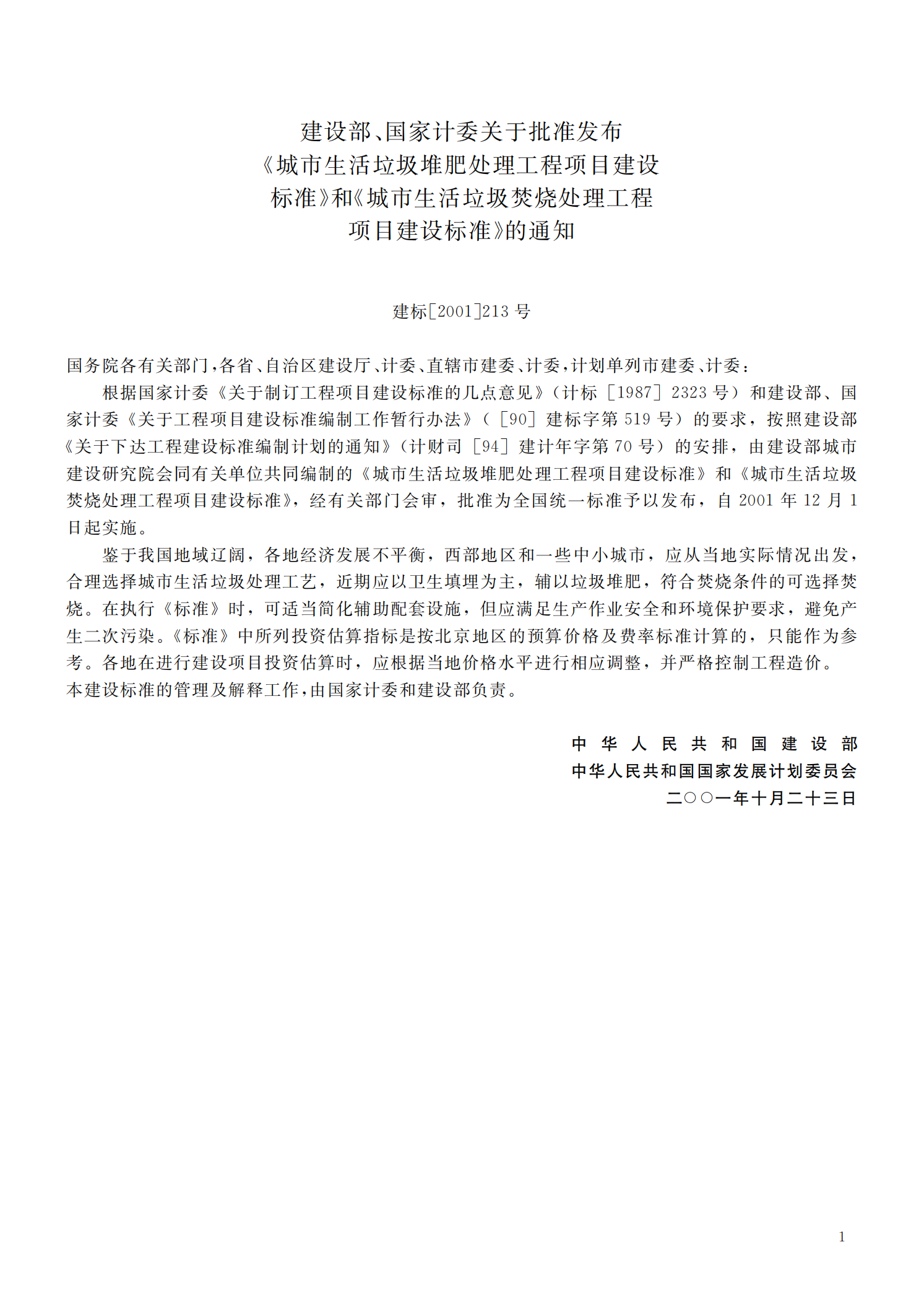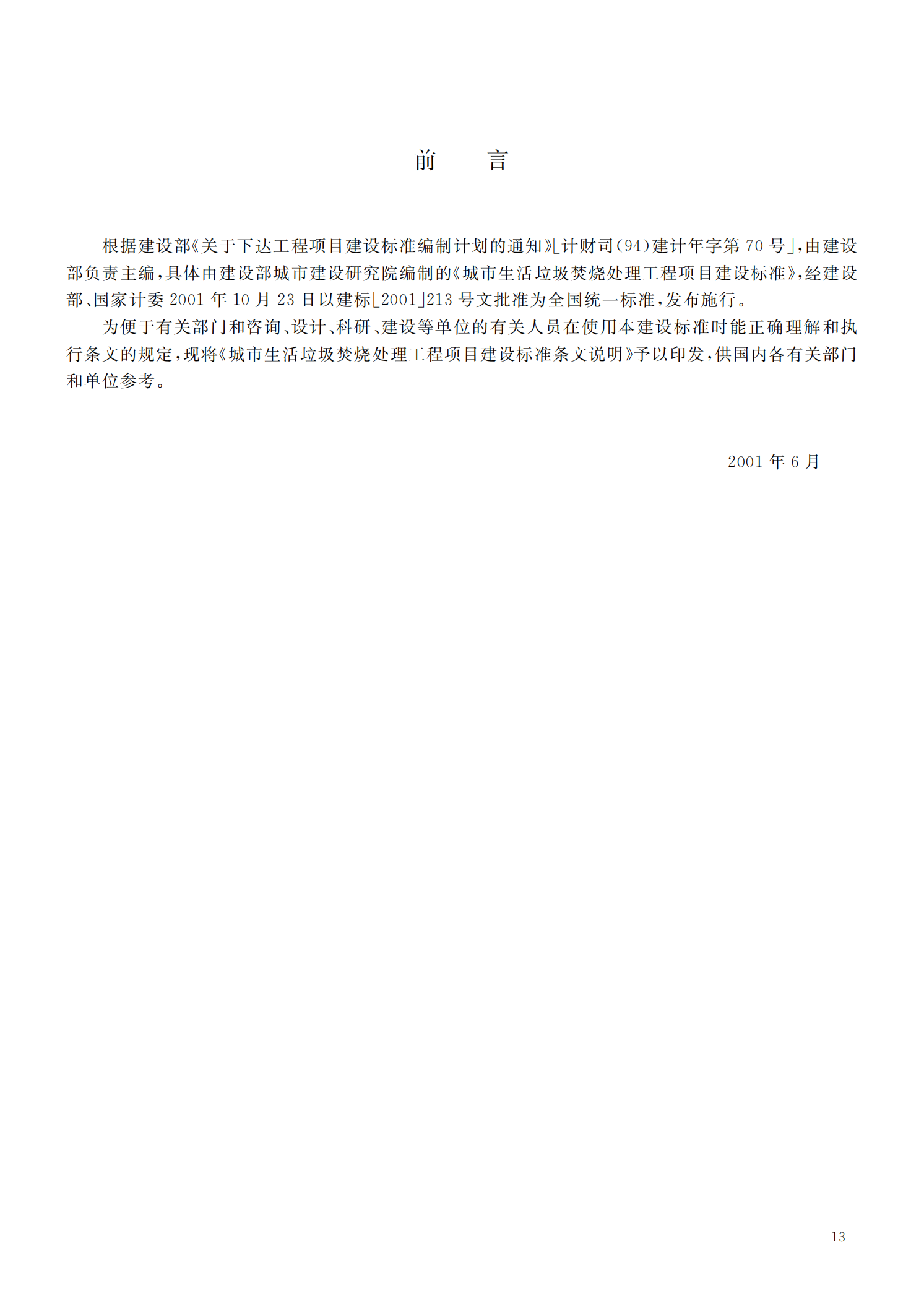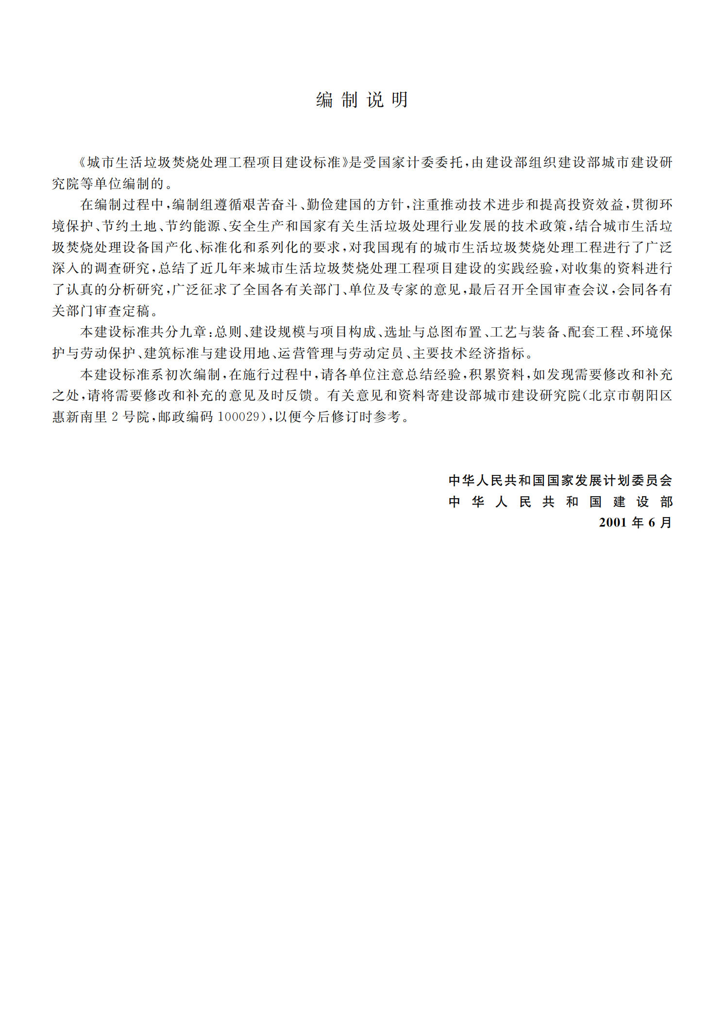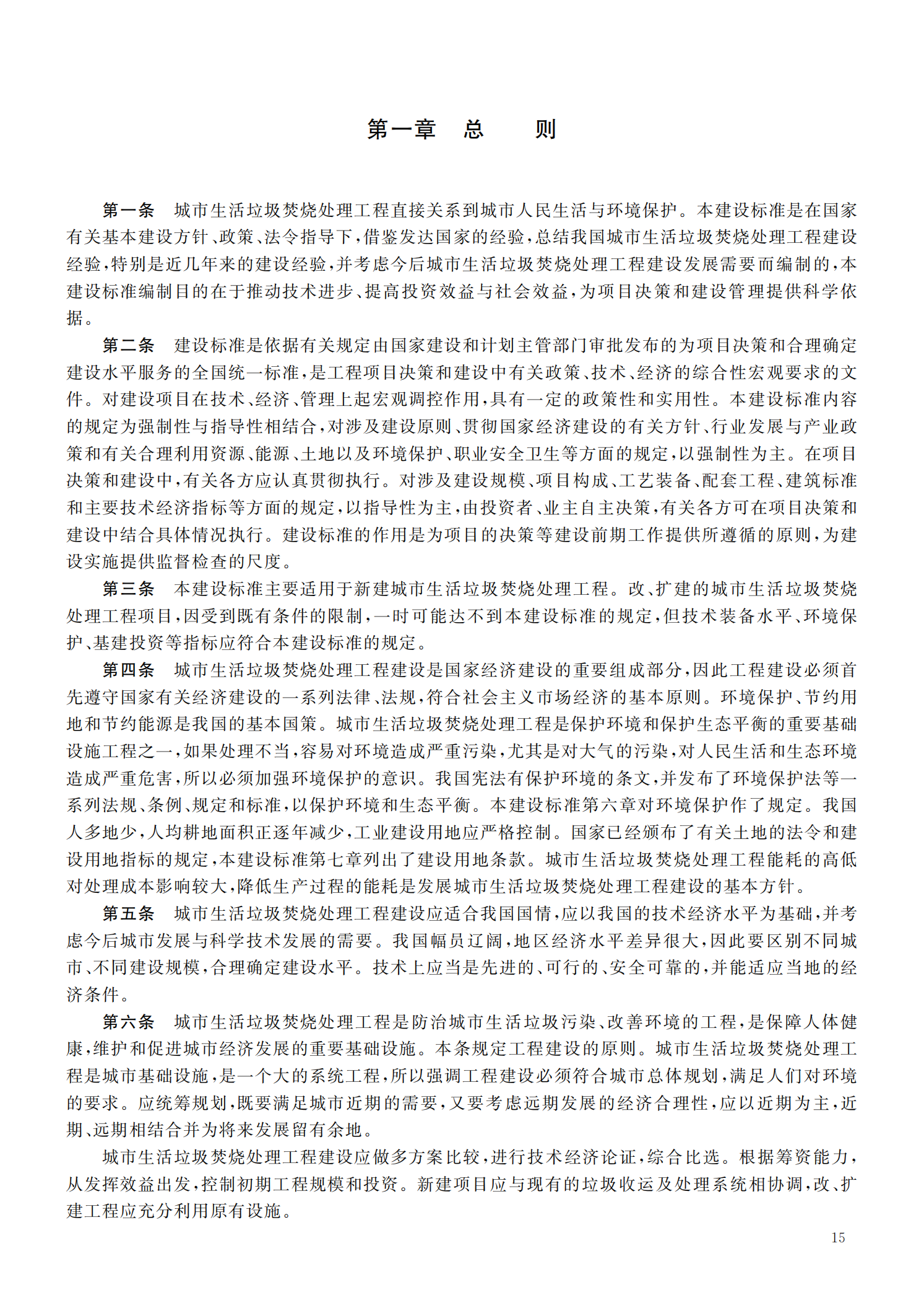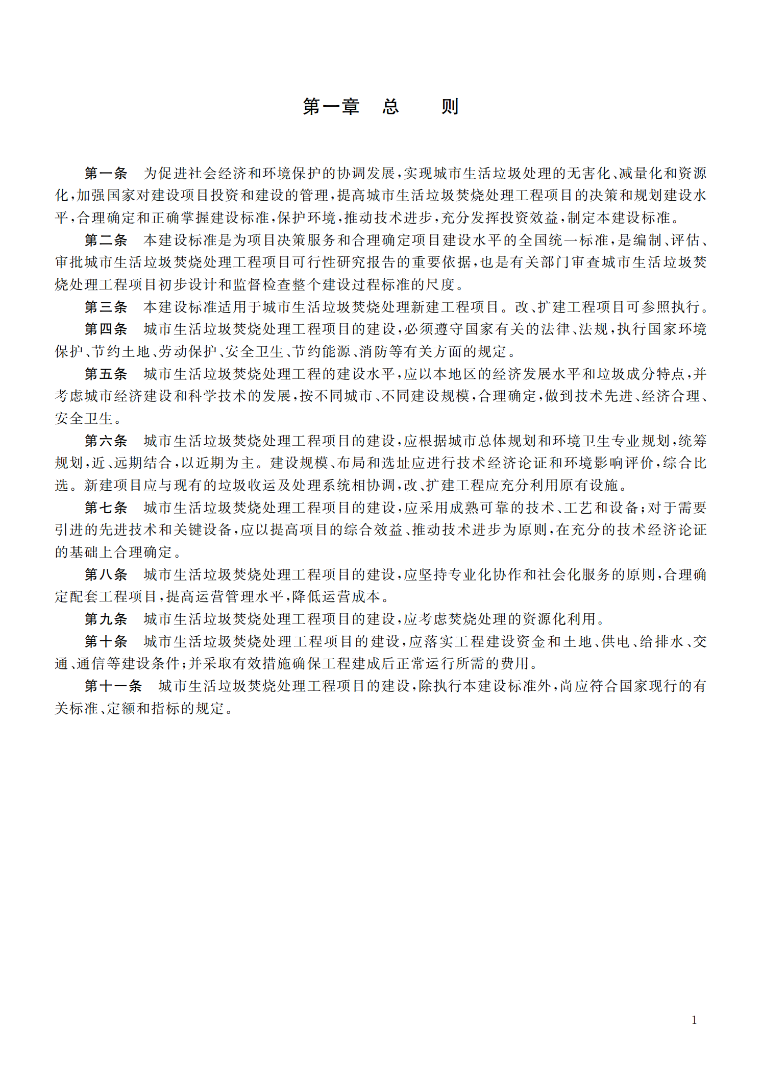 城市生活垃圾焚烧处理工程项目建设标准