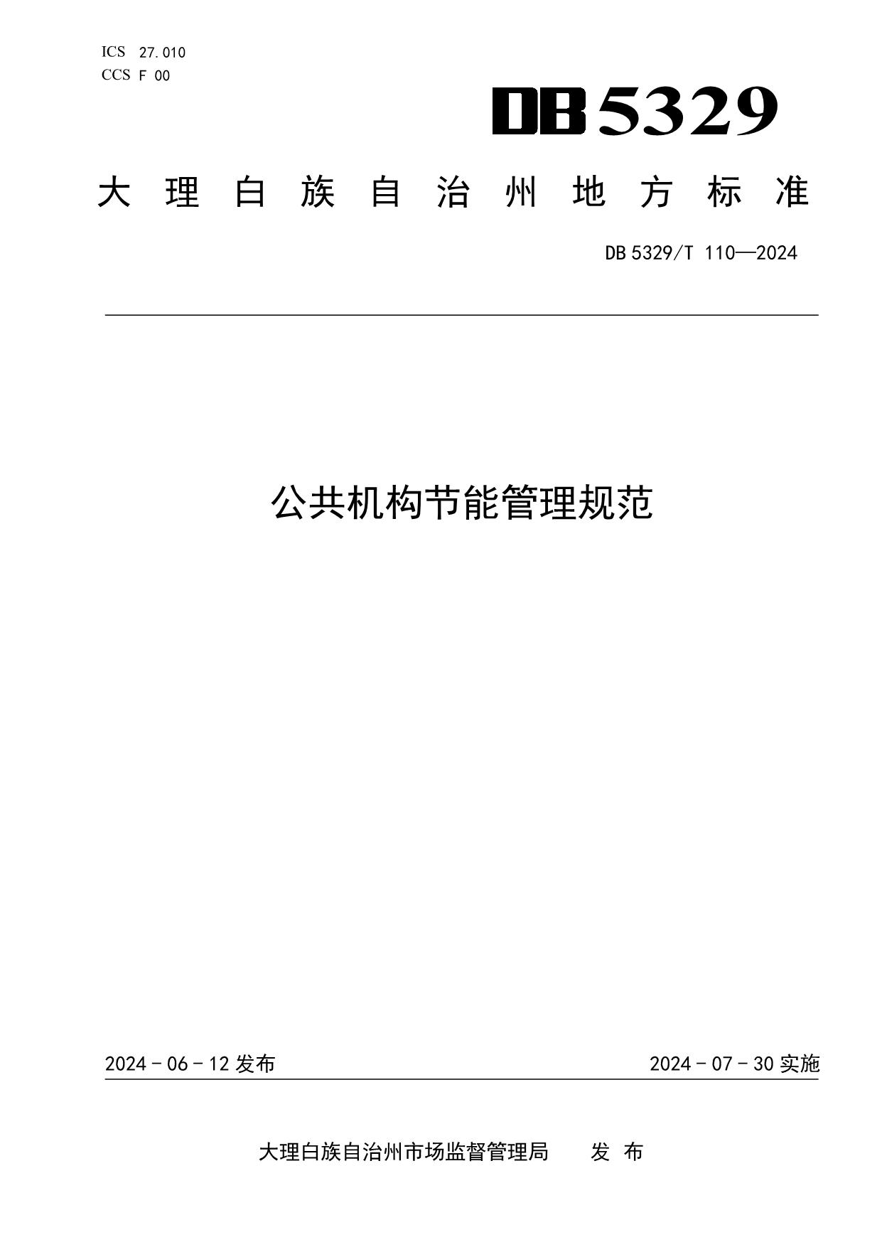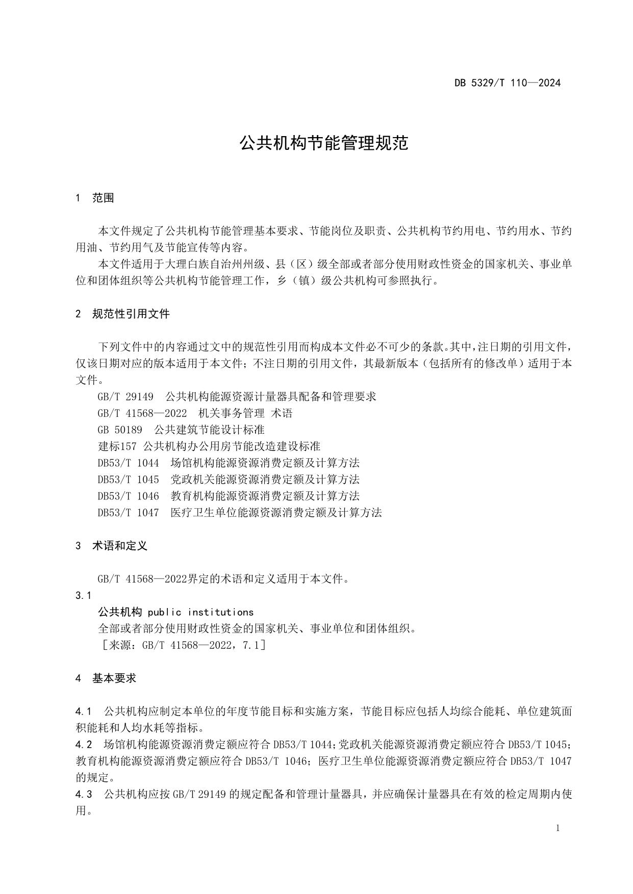 《公共机构节能管理规范》(DB5329/T 110-2024)