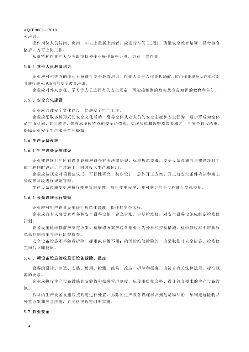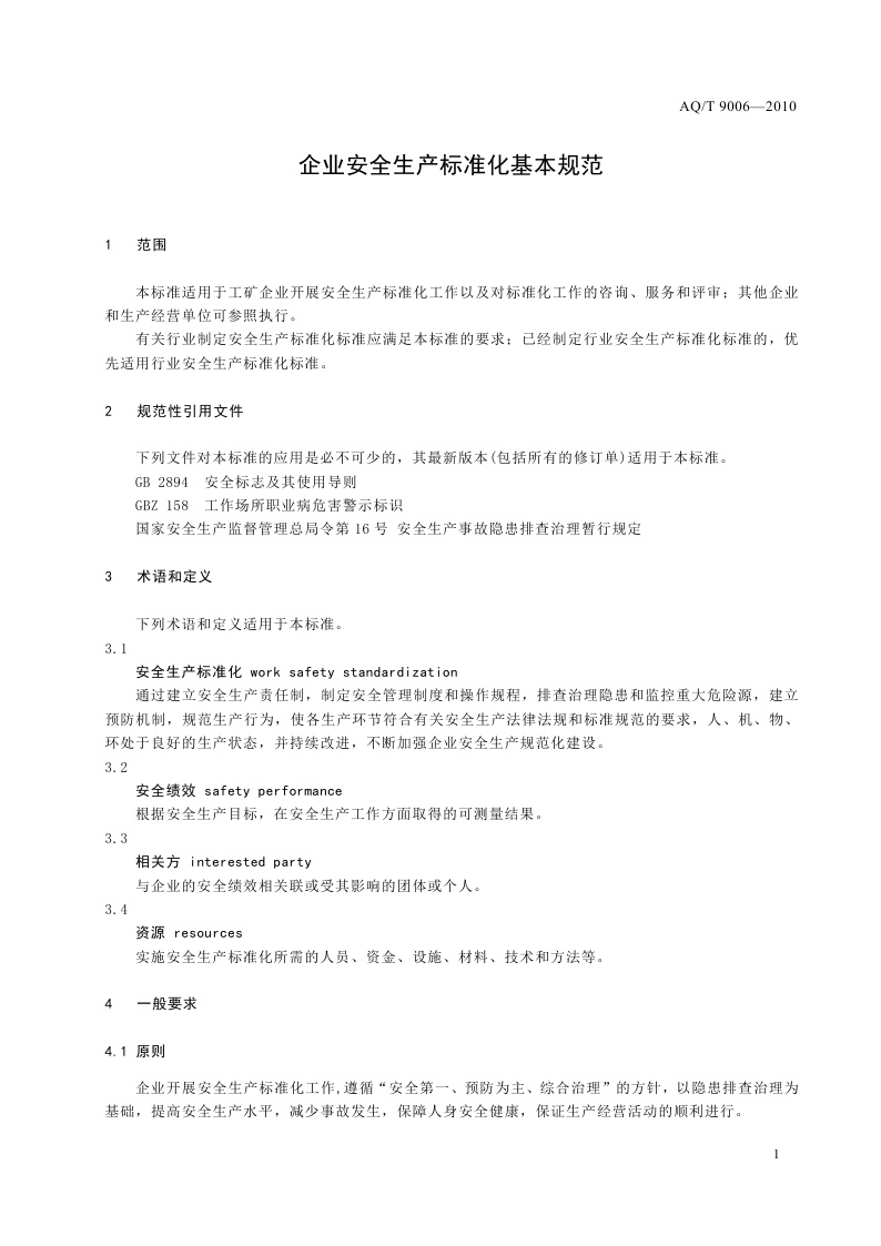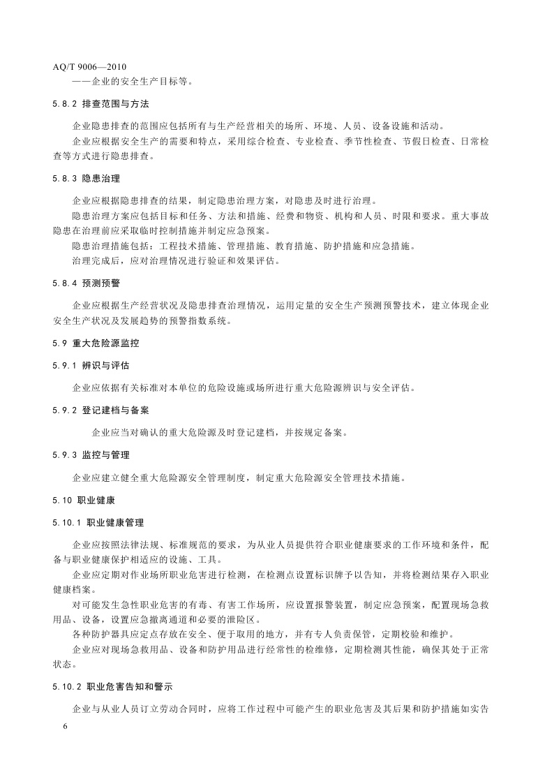 《企业安全生产标准化基本规范》(AQ∕T9006-2010)