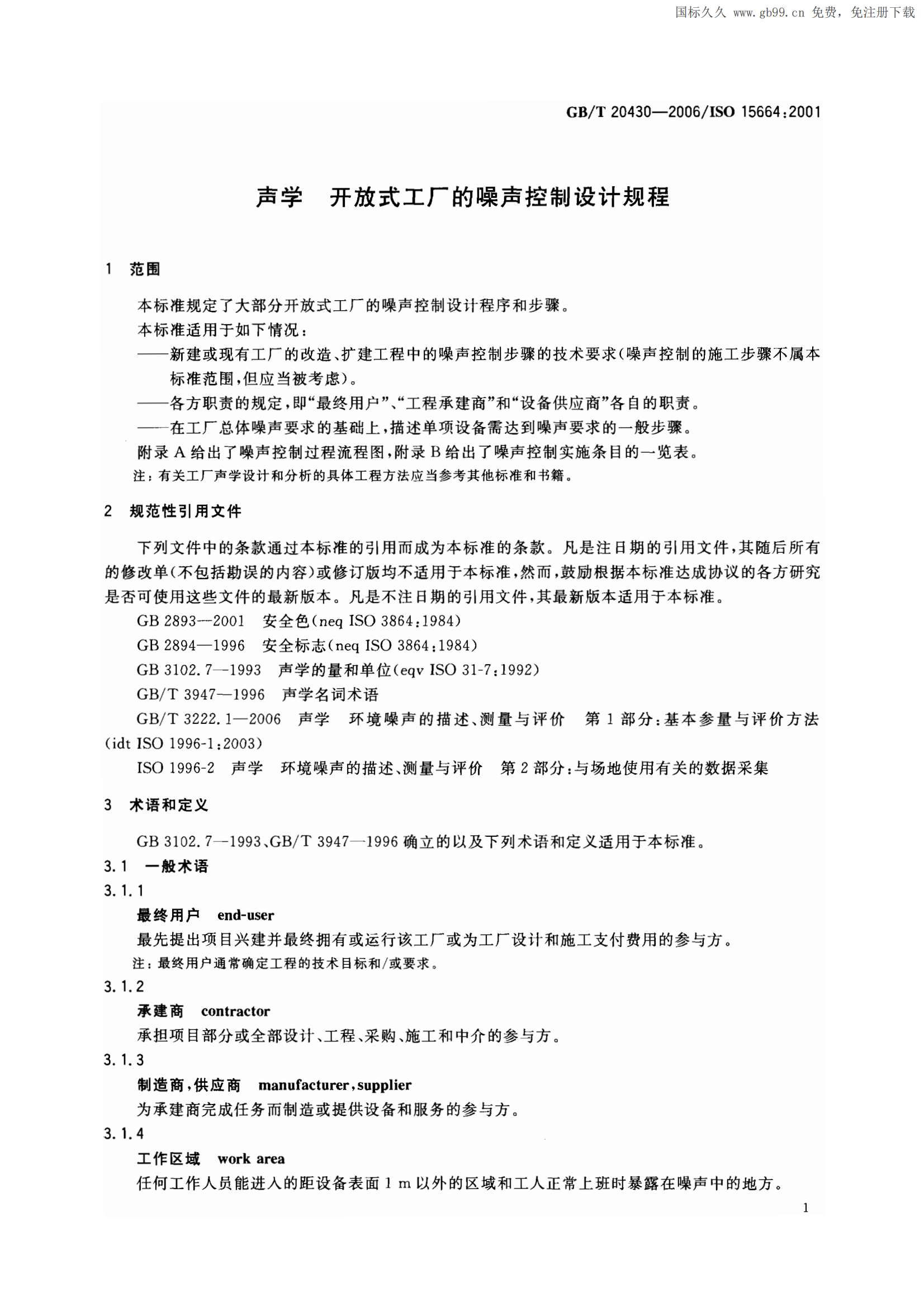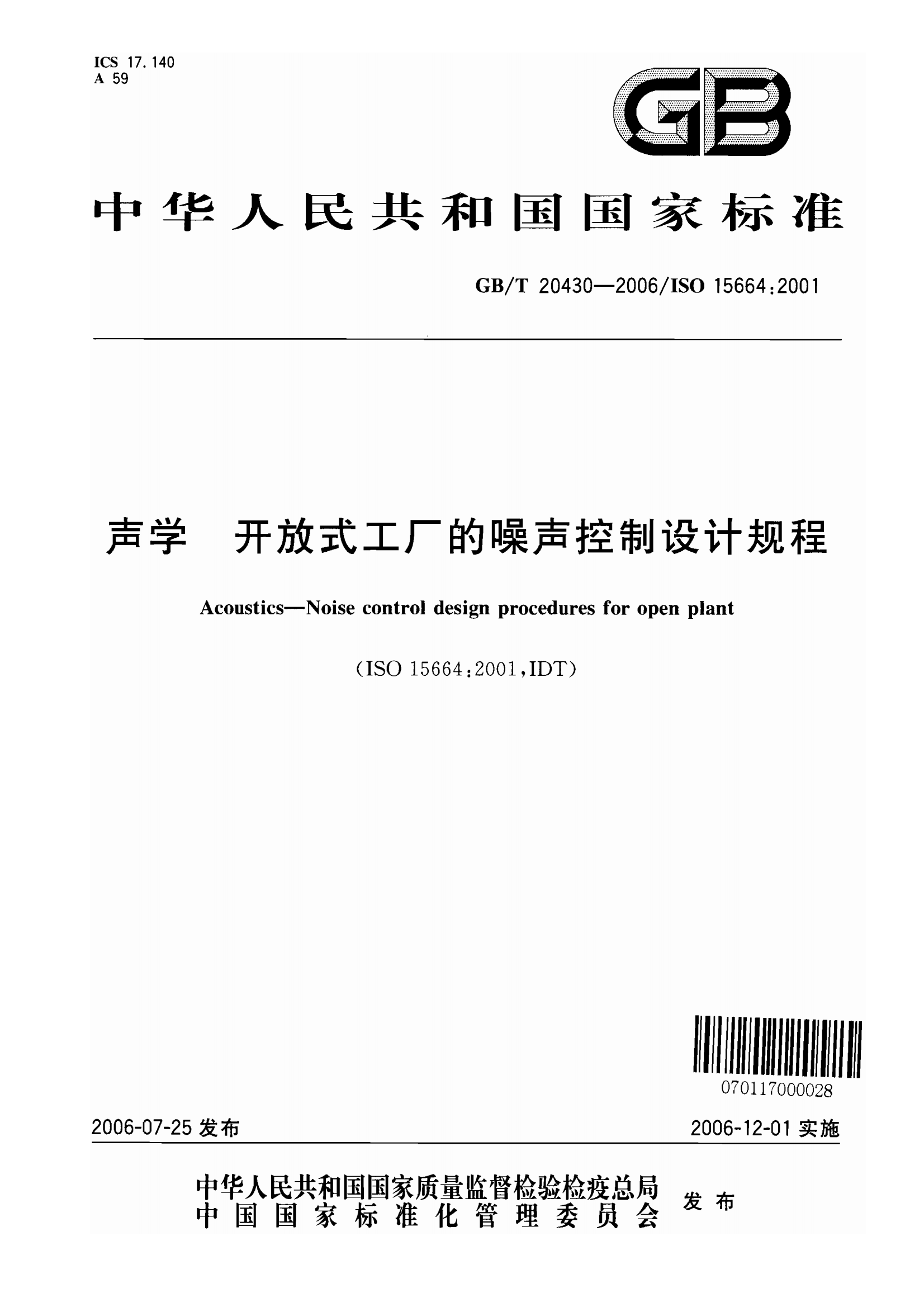 声学开放式工厂的噪声控制设计规程GBT20430-2006