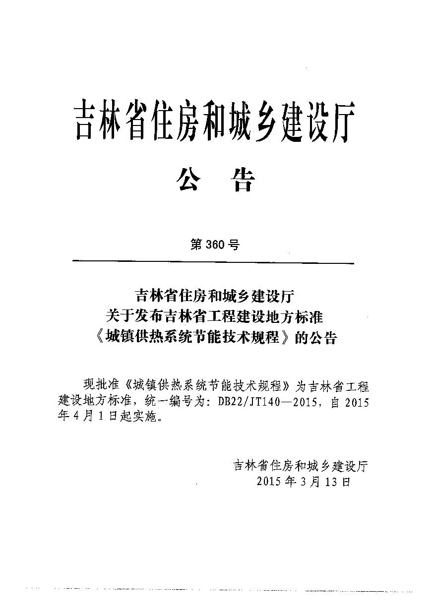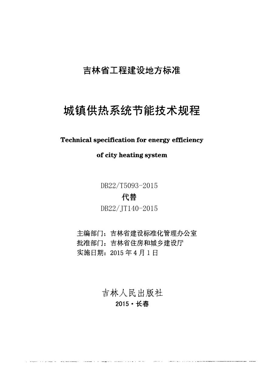 《城镇供热系统节能技术规程》(DB22/T 5093-2015)