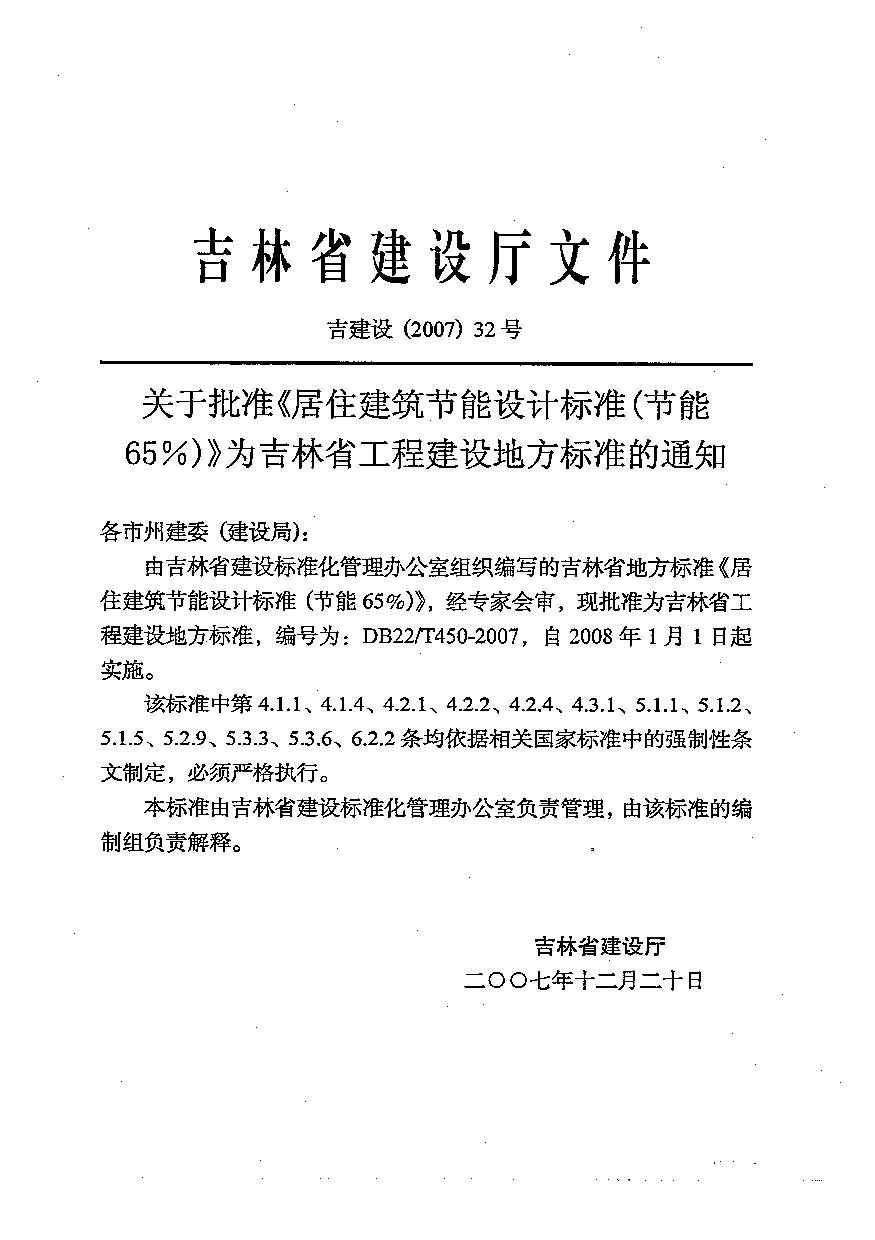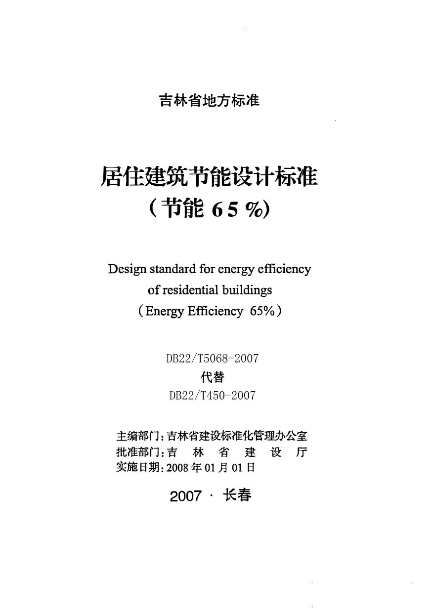 《居住建筑节能设计标准(节能65%)》(DB22/T 5068-2007)