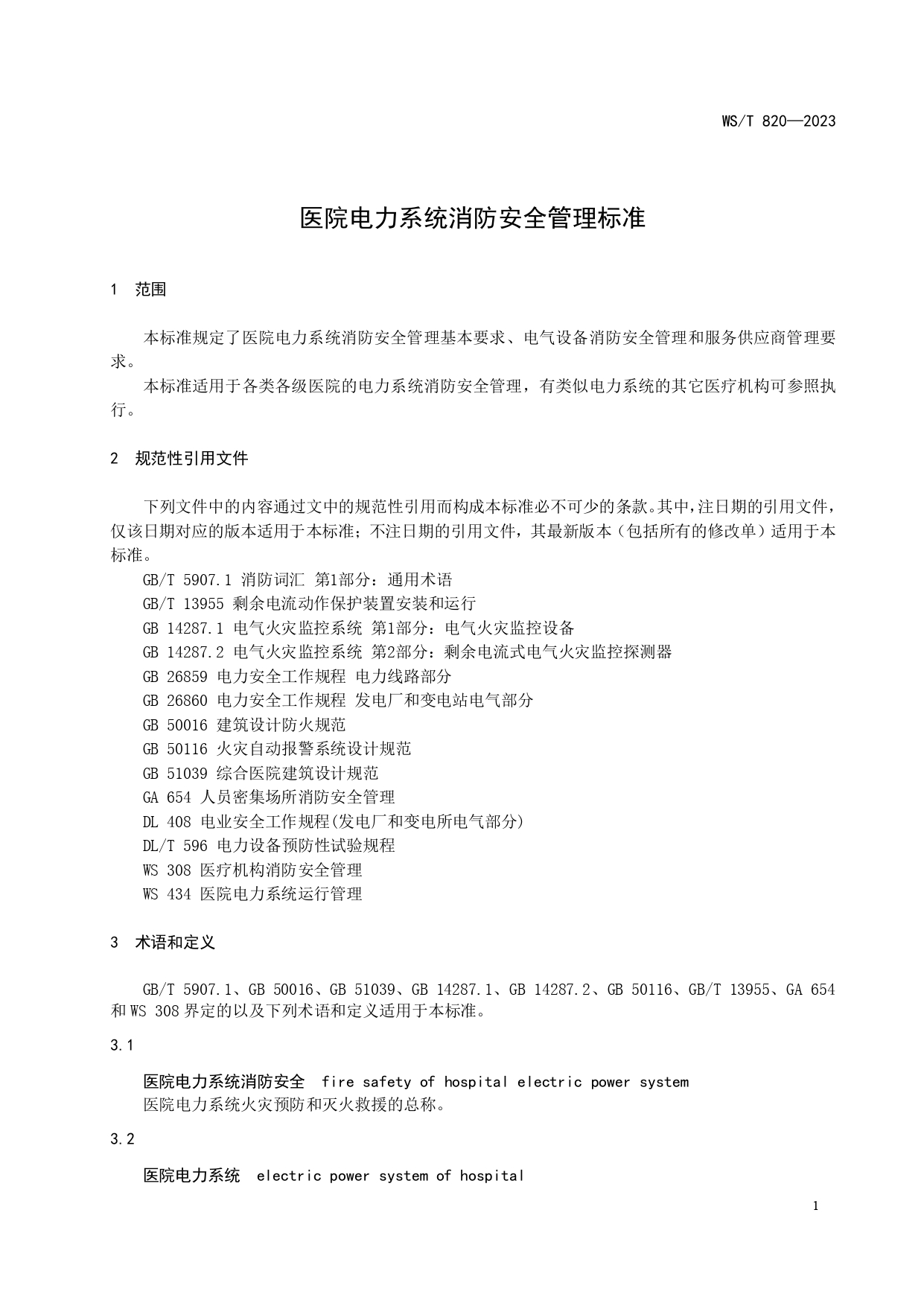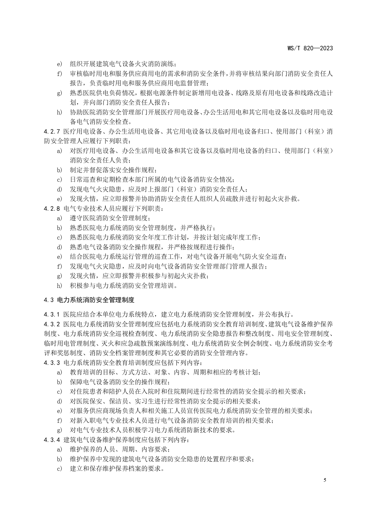 《医院电力系统消防安全管理标准》国卫通〔2023〕2号