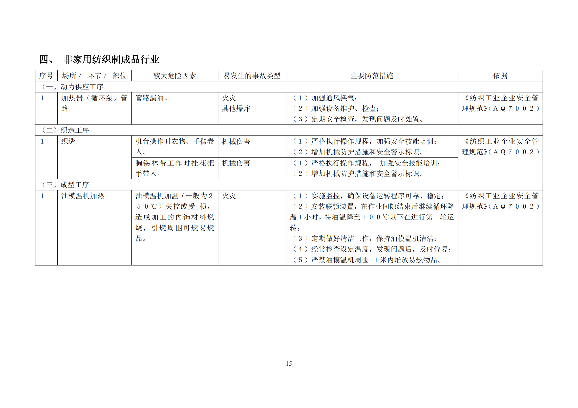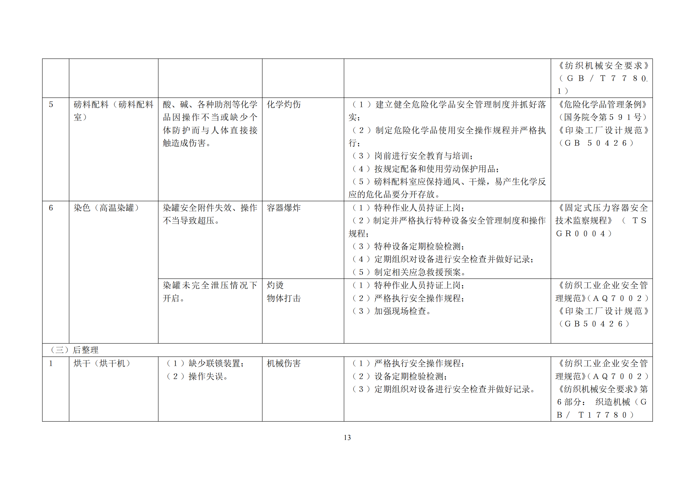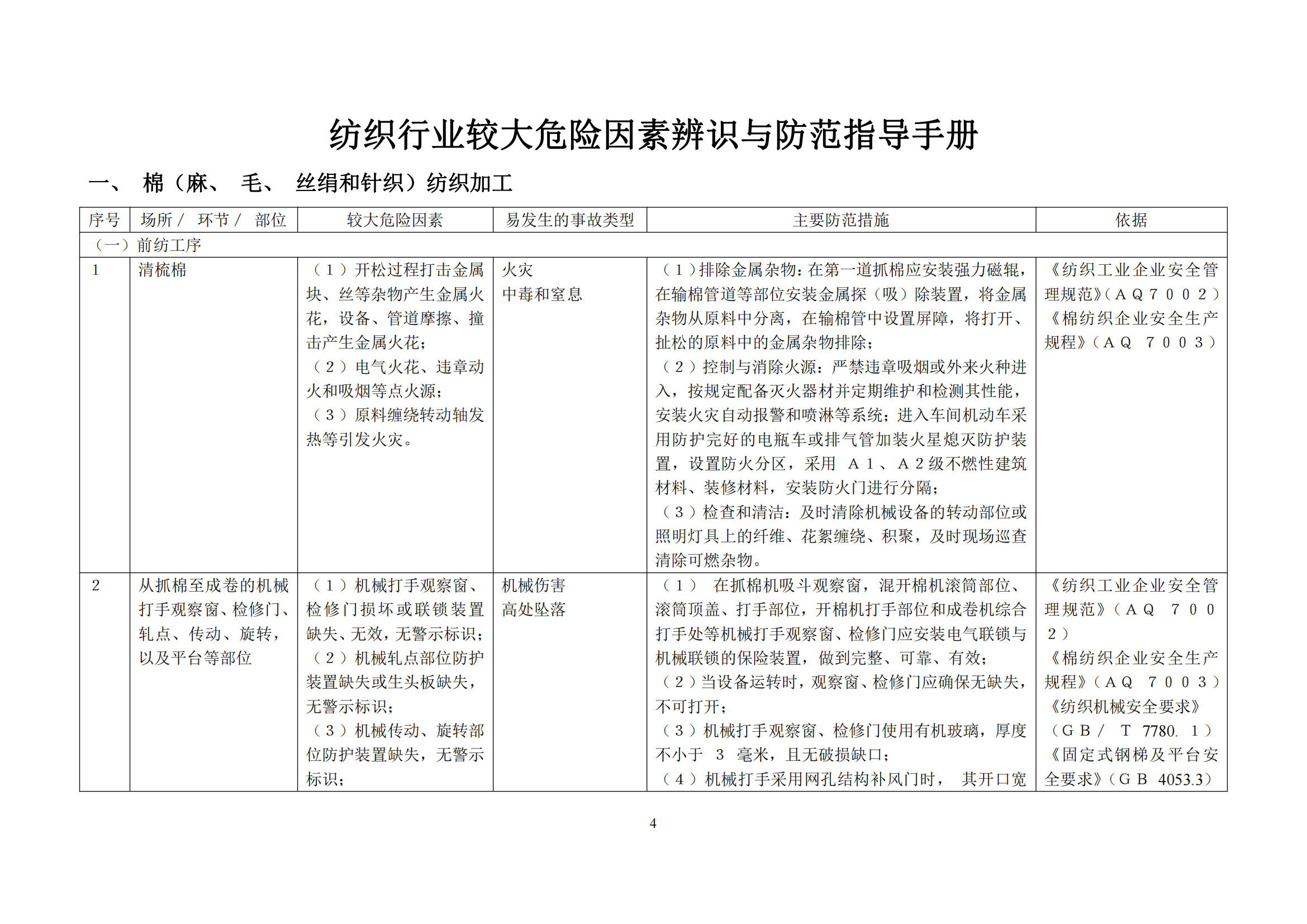 纺织行业较大危险因素辨识辨识与防范指导手册
