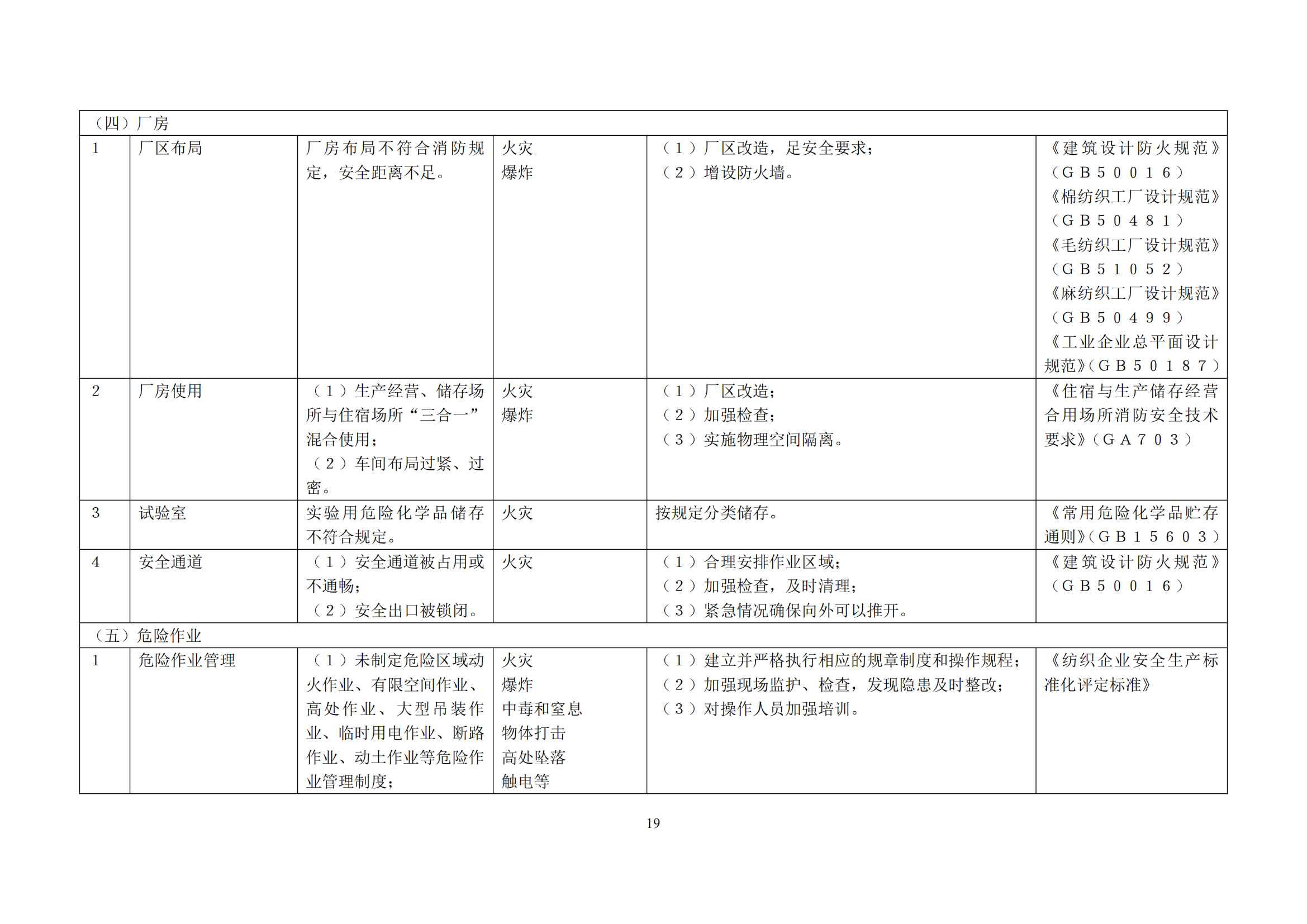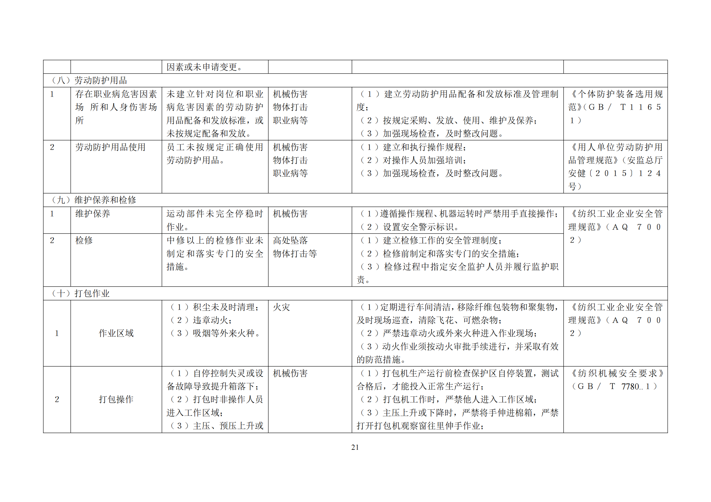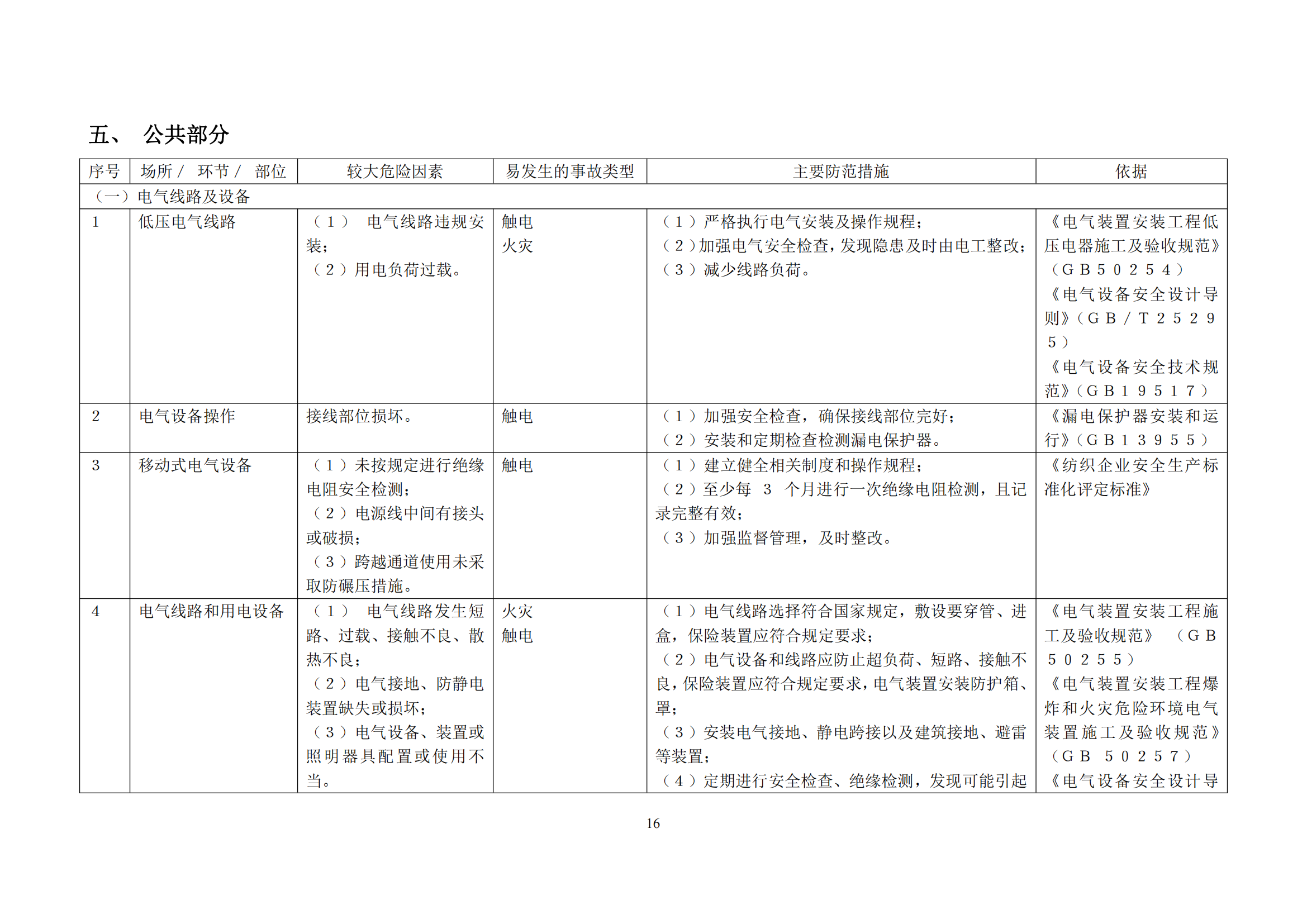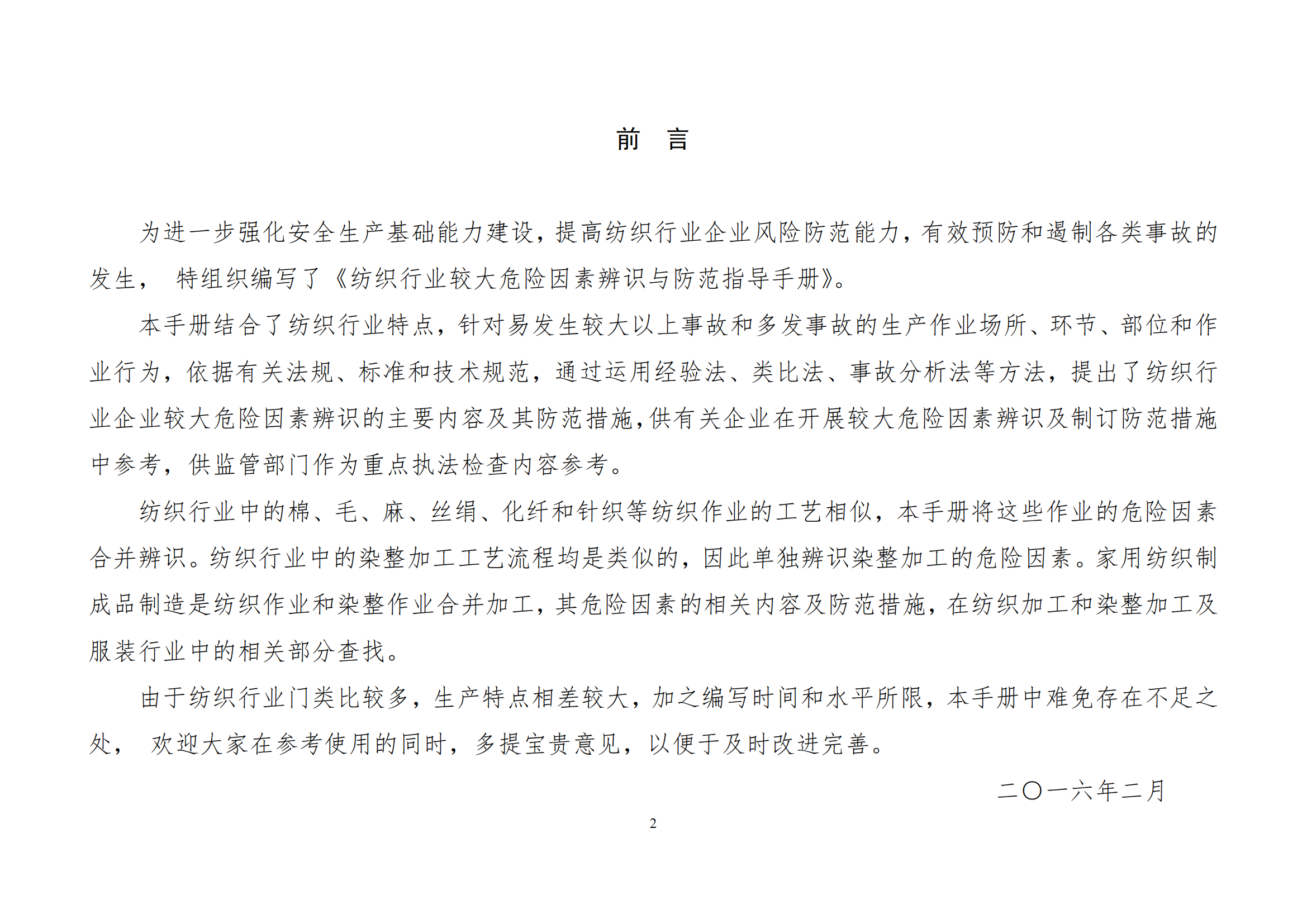 纺织行业较大危险因素辨识辨识与防范指导手册