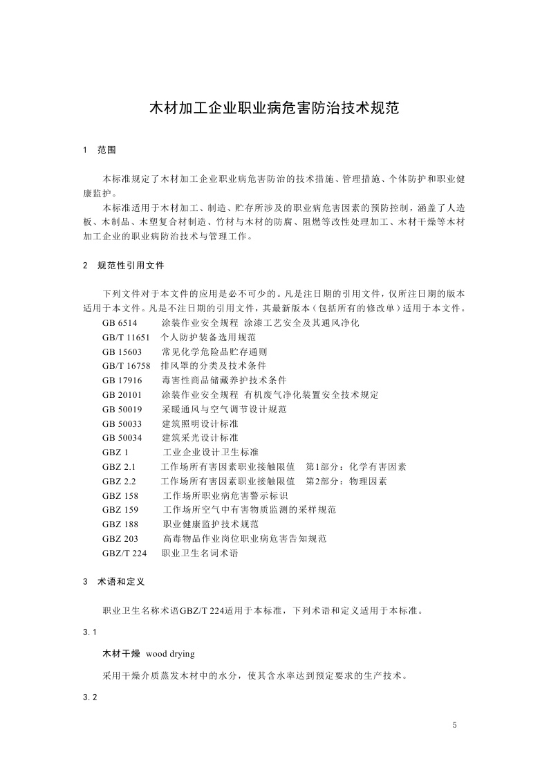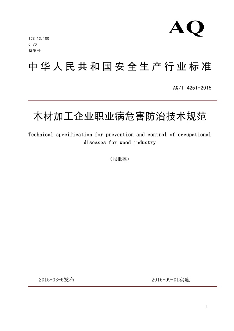 《木材加工企业职业病危害防治技术规范》(AQ∕T4251-2015)