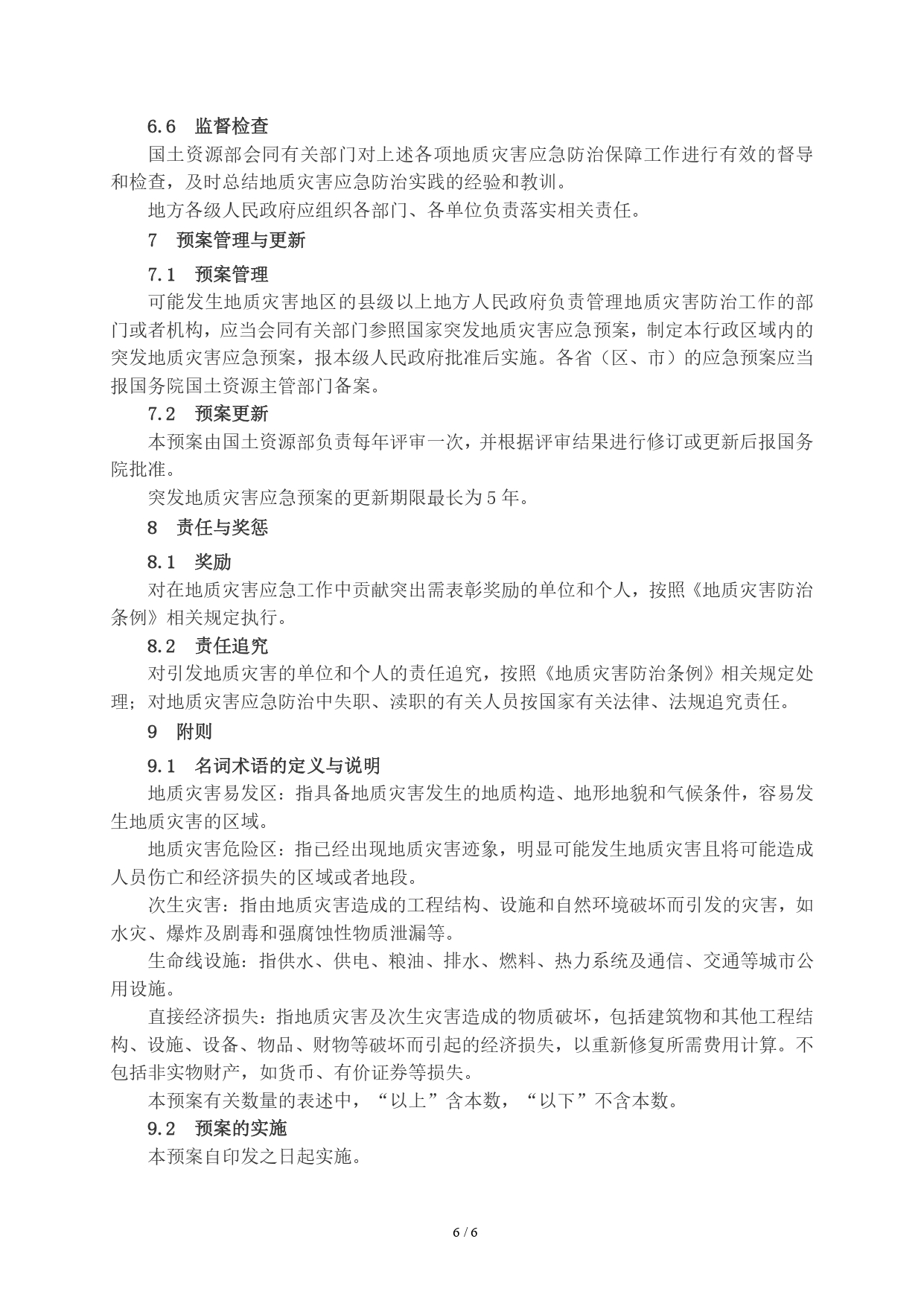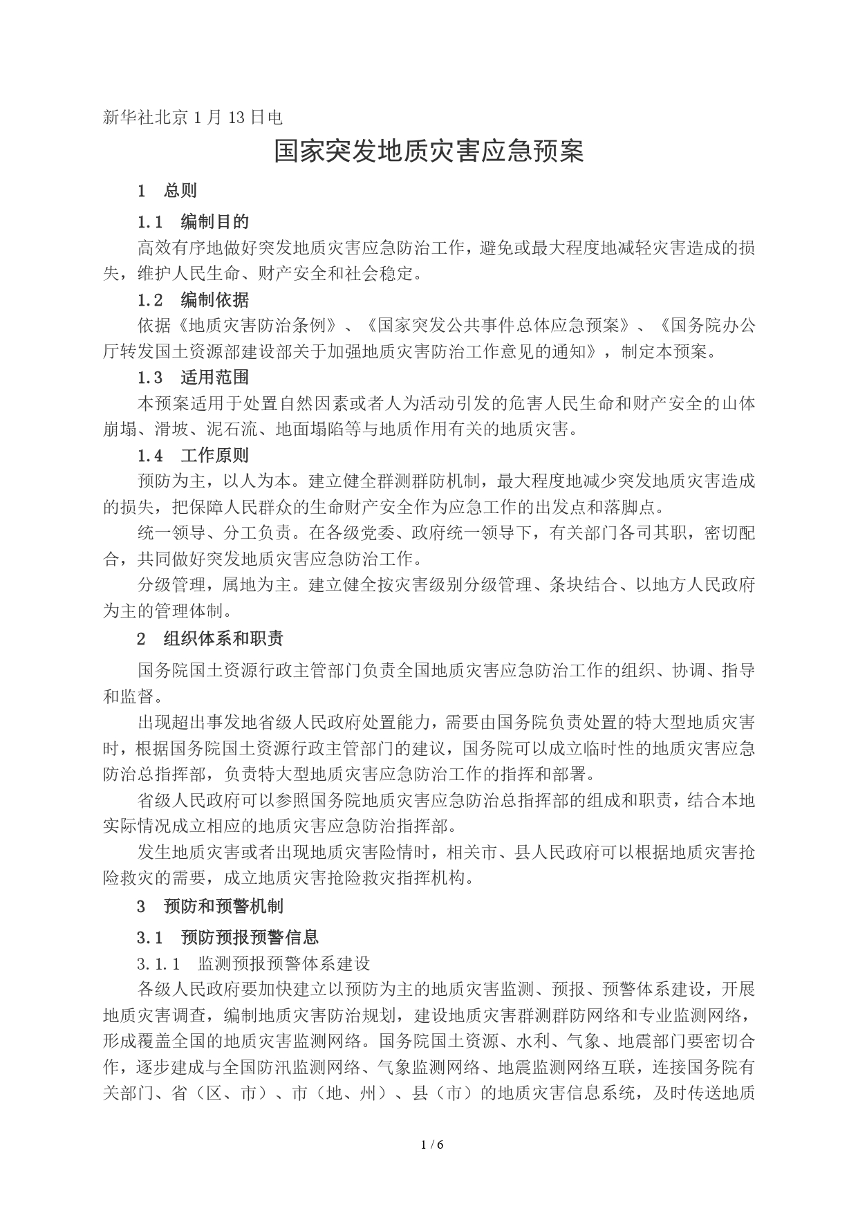 国家突发地质灾害应急预案(2006年01月13日)