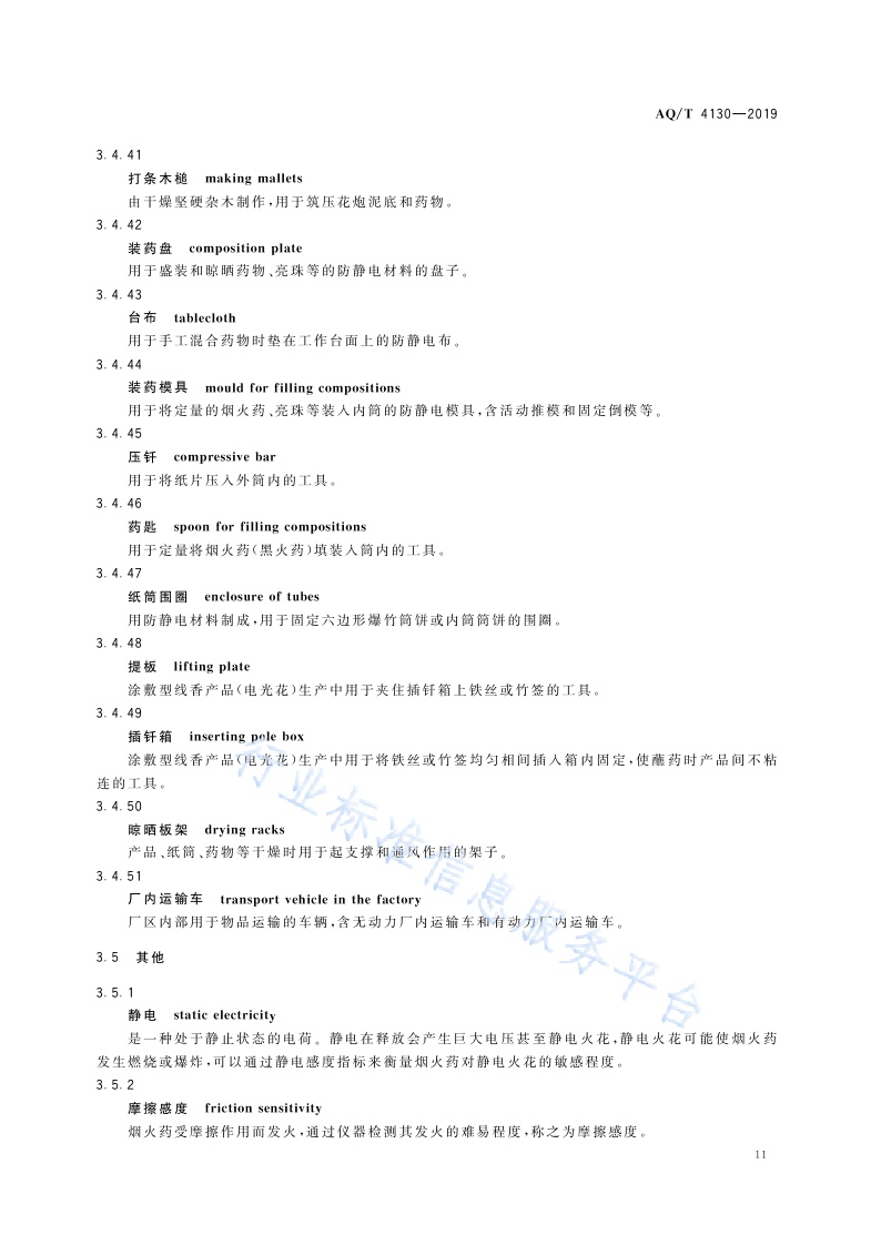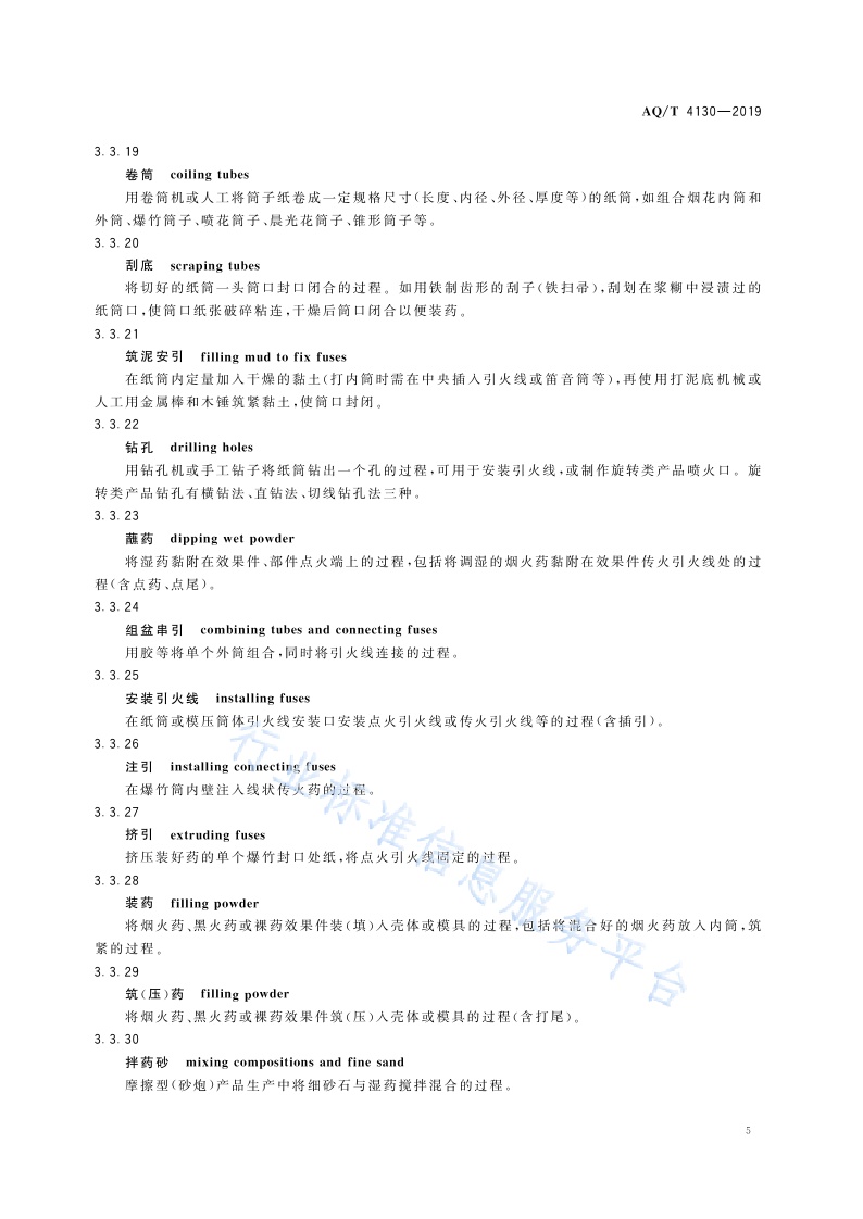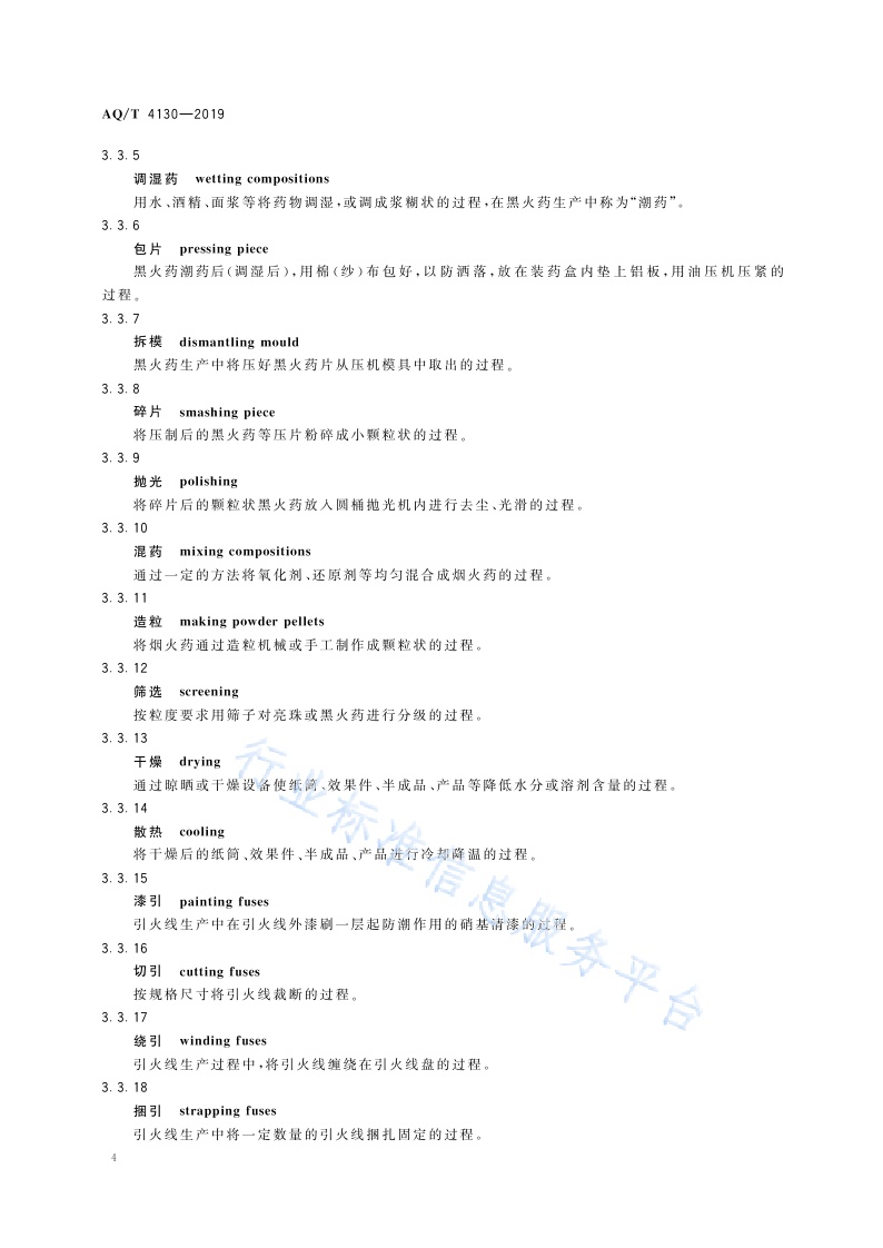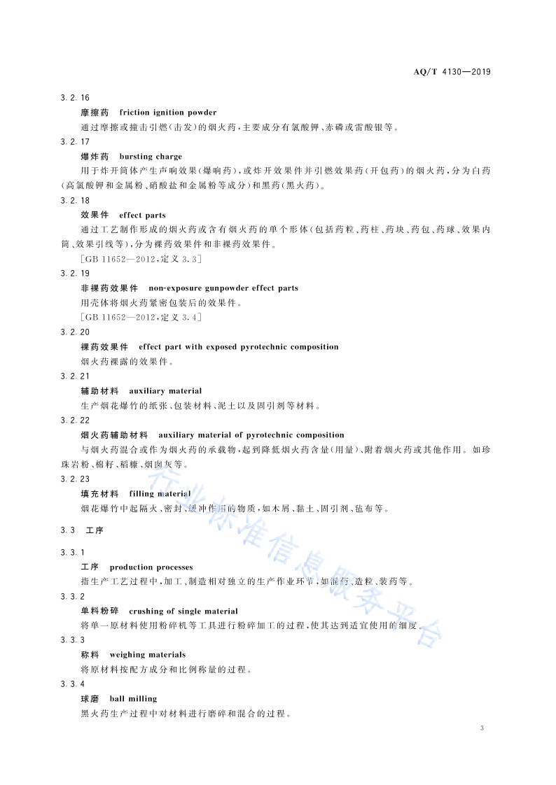 《烟花爆竹生产过程名词术语》(AQ∕T4130-2019)