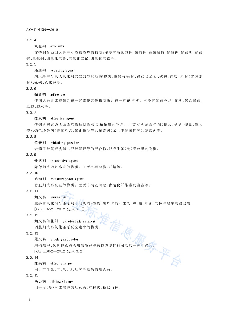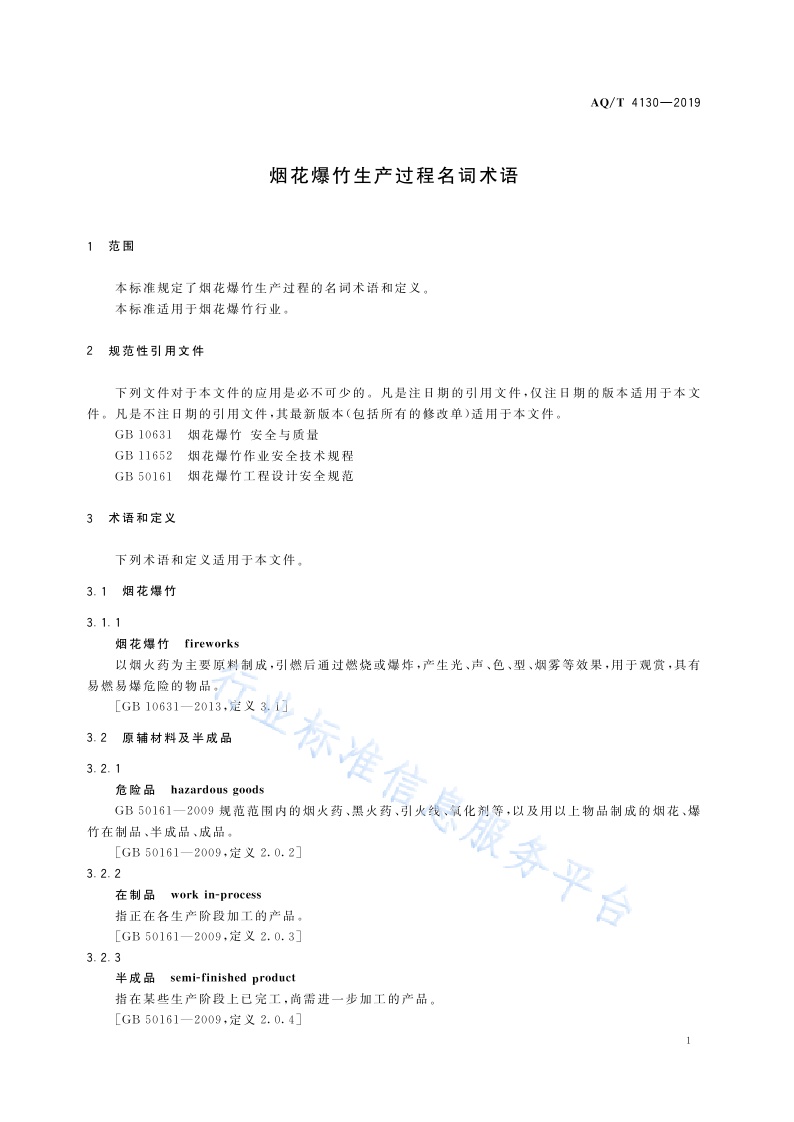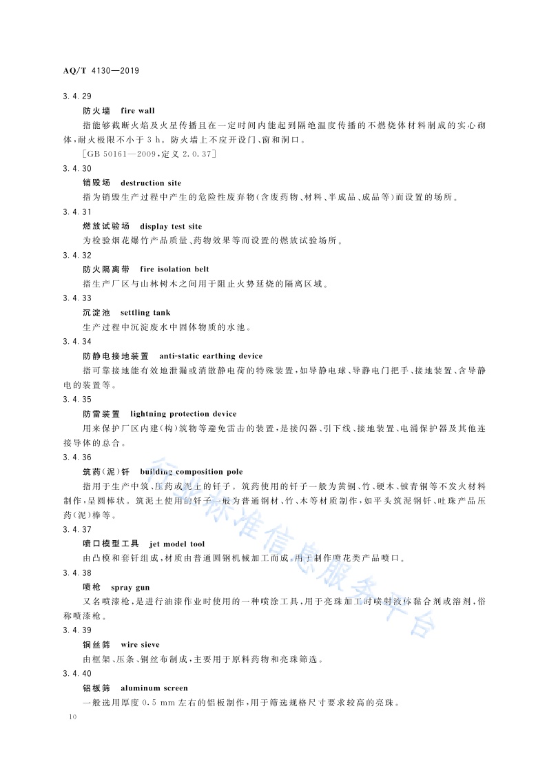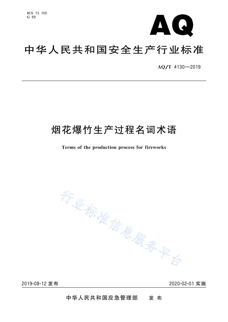 《烟花爆竹生产过程名词术语》(AQ∕T4130-2019)