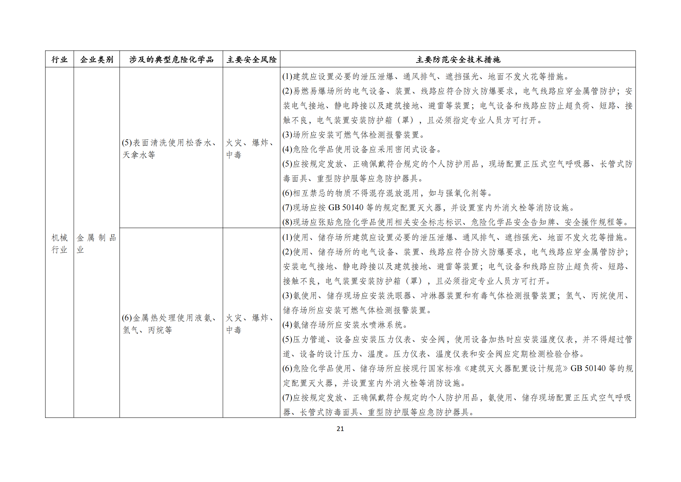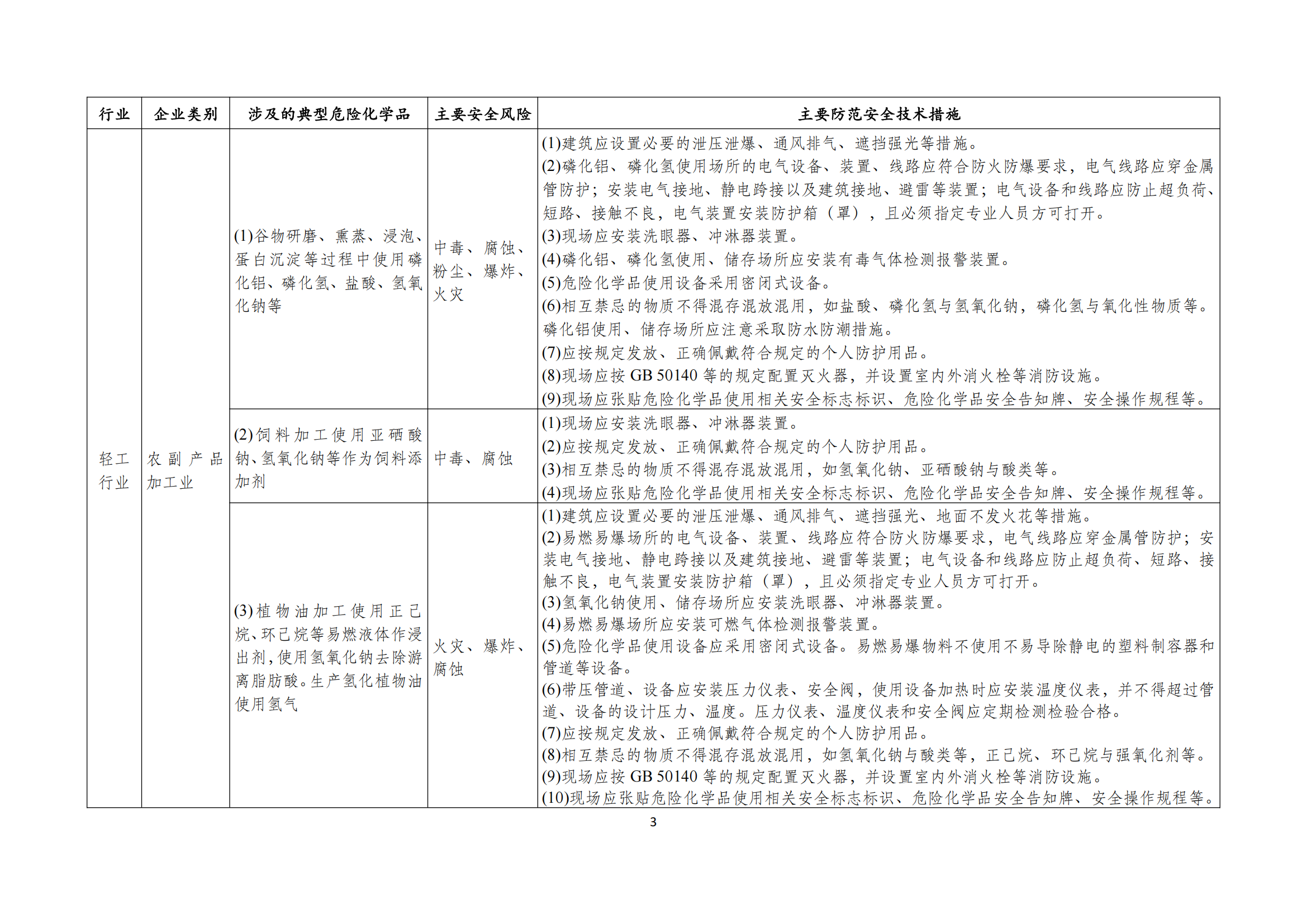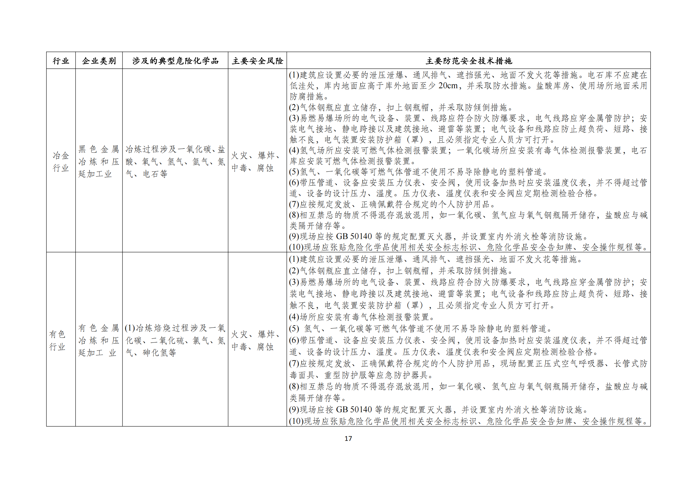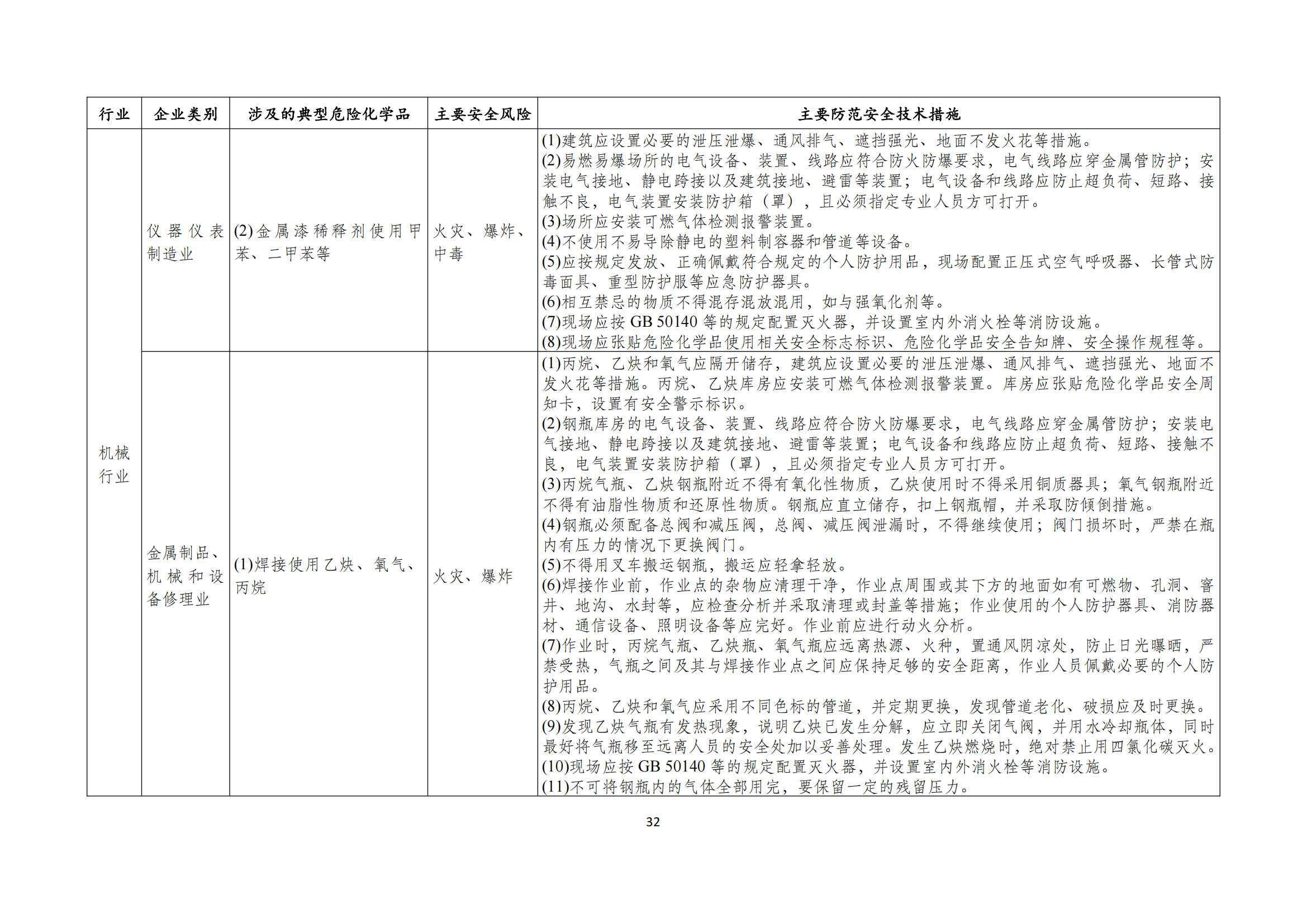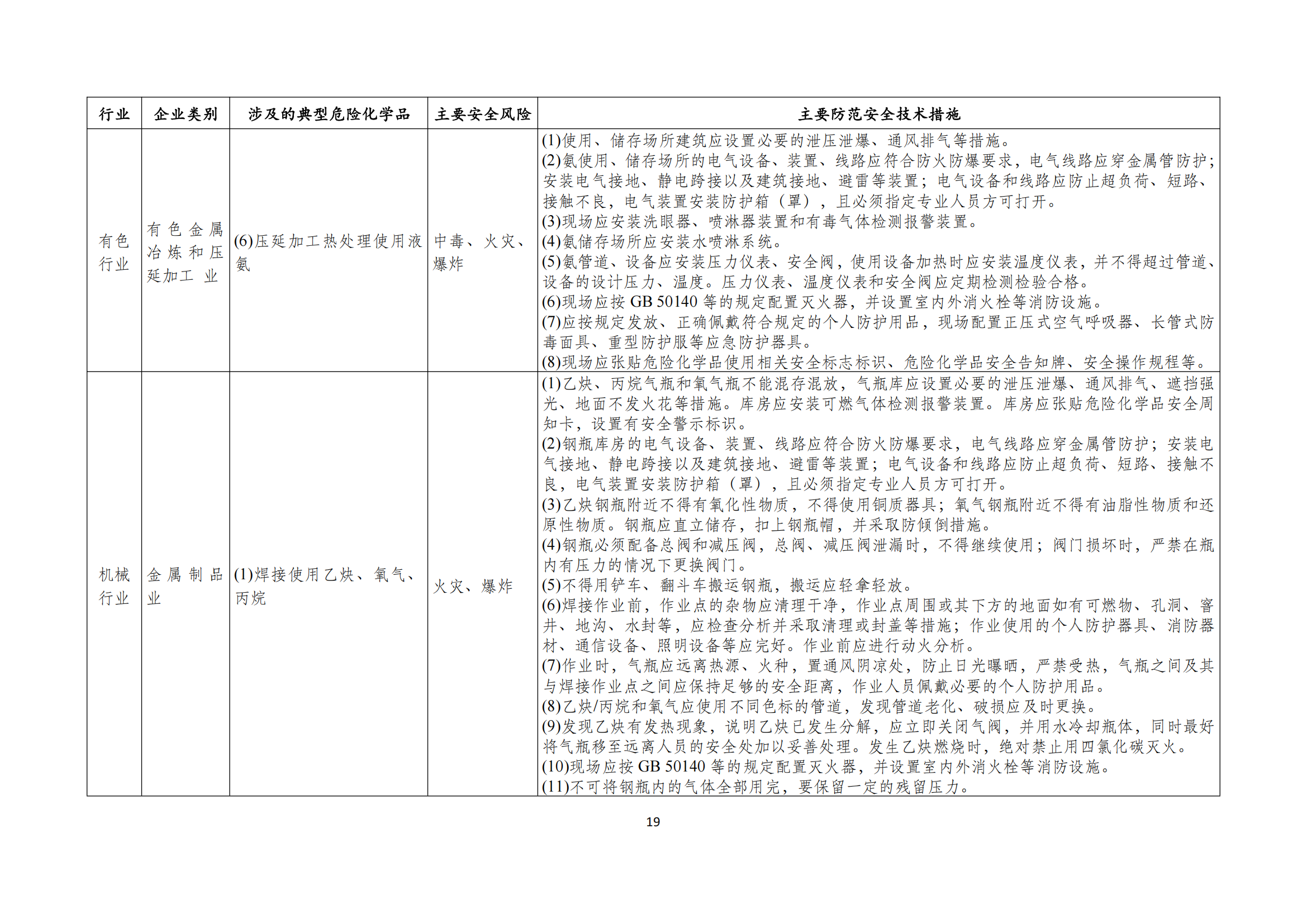 工贸企业涉及危险化学品相关品种及主要防范技术措施