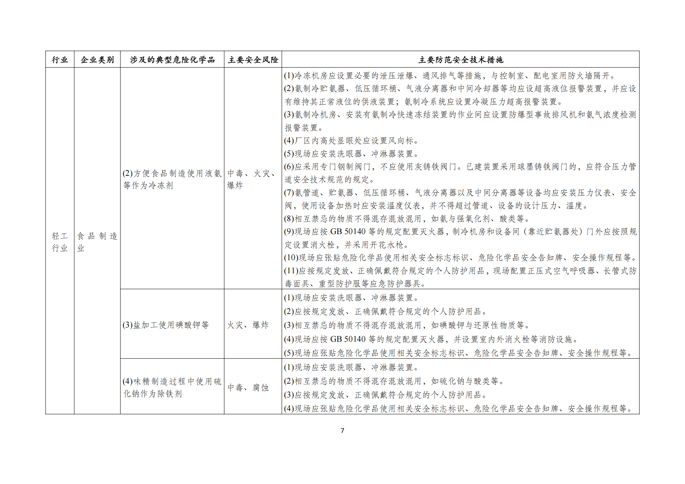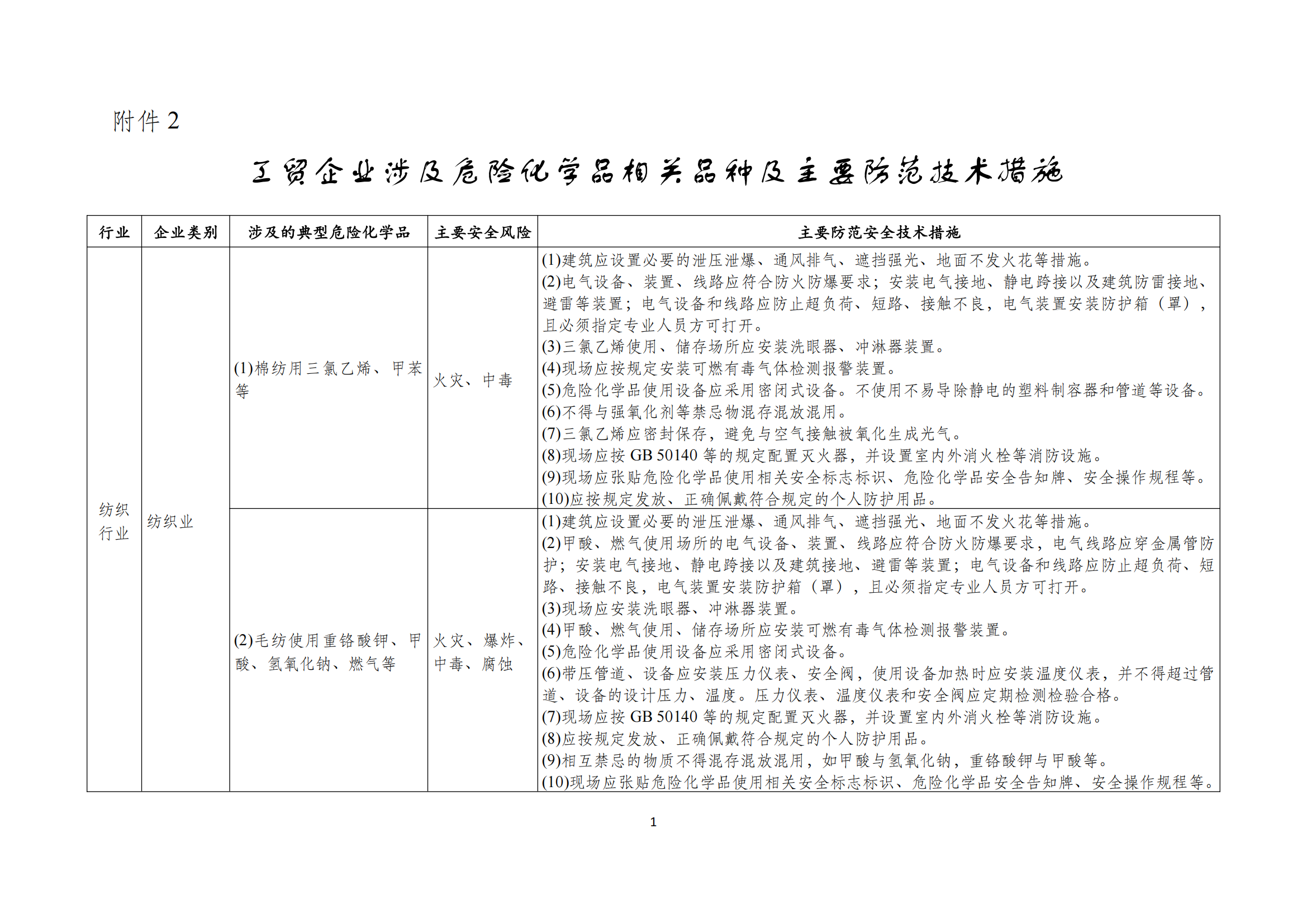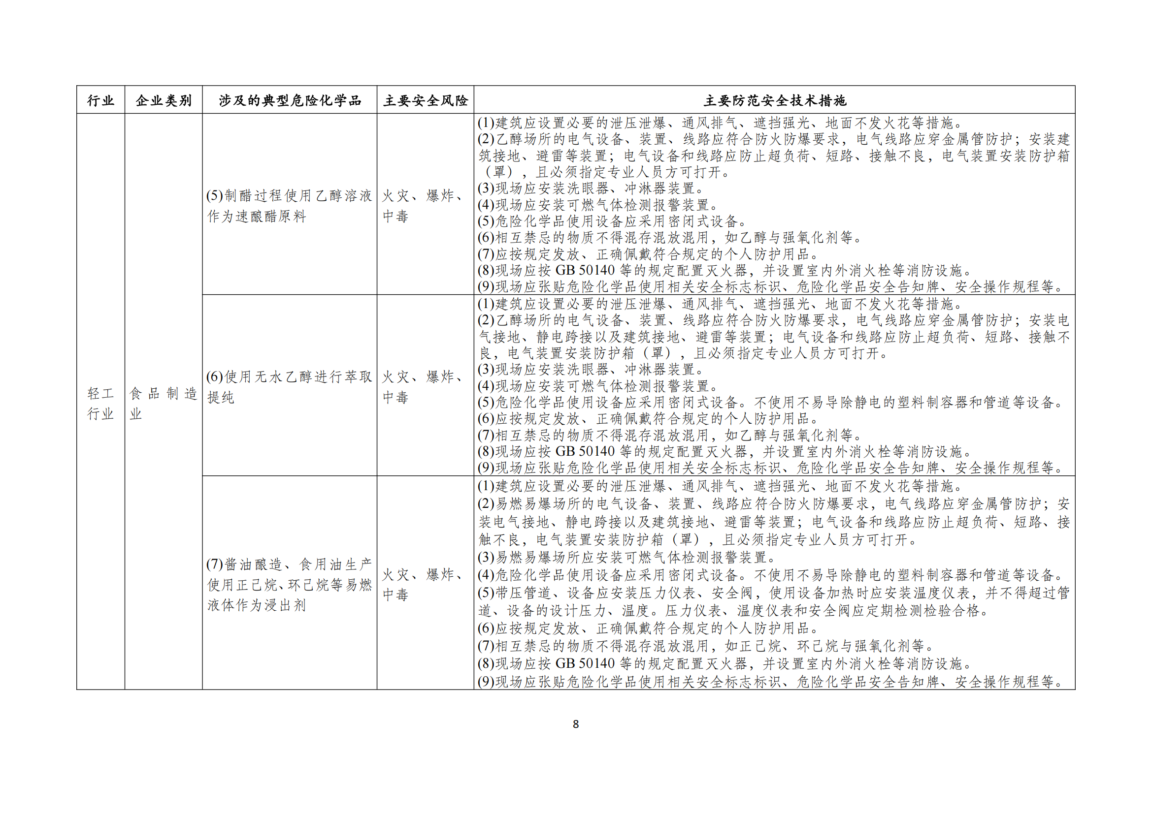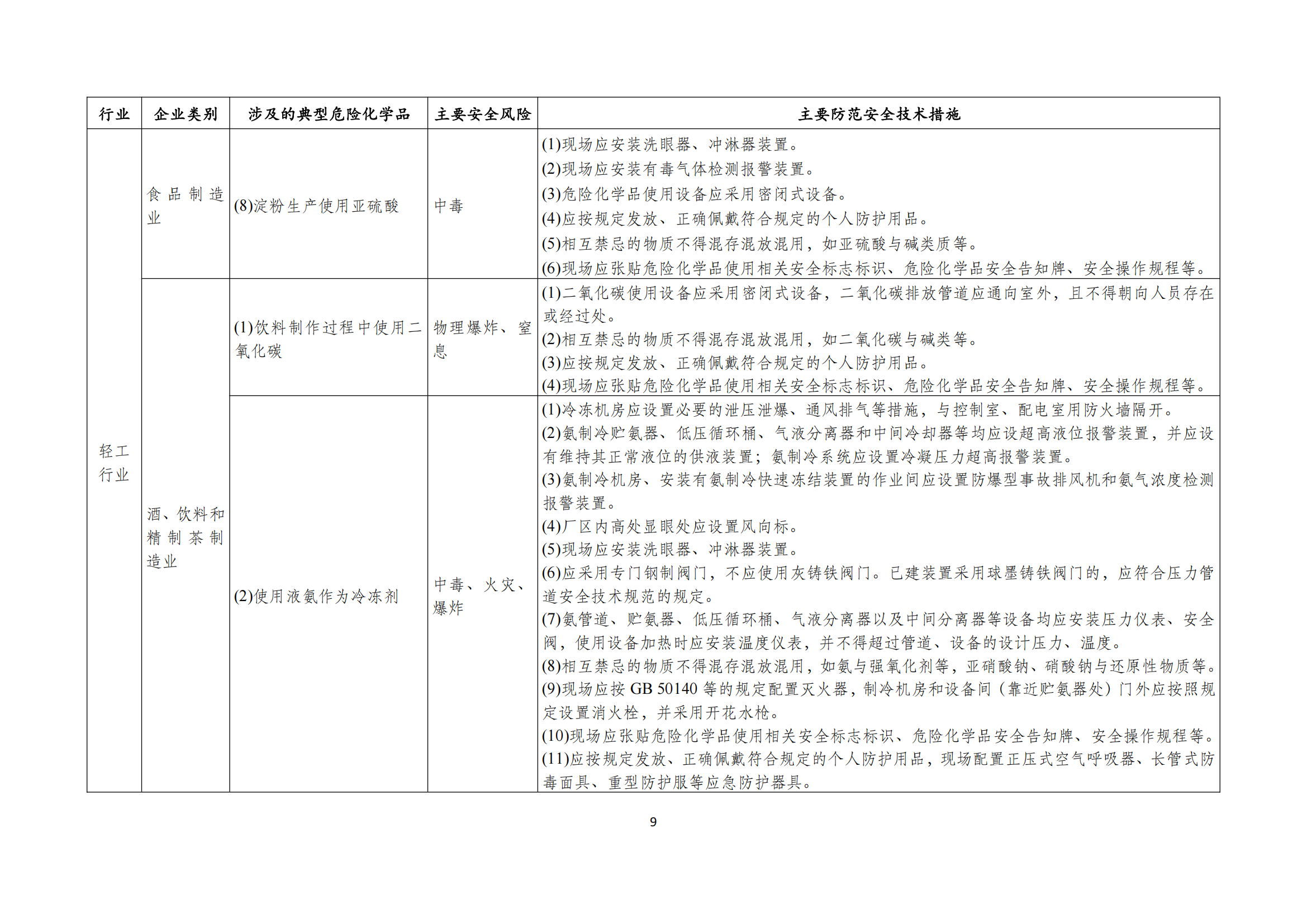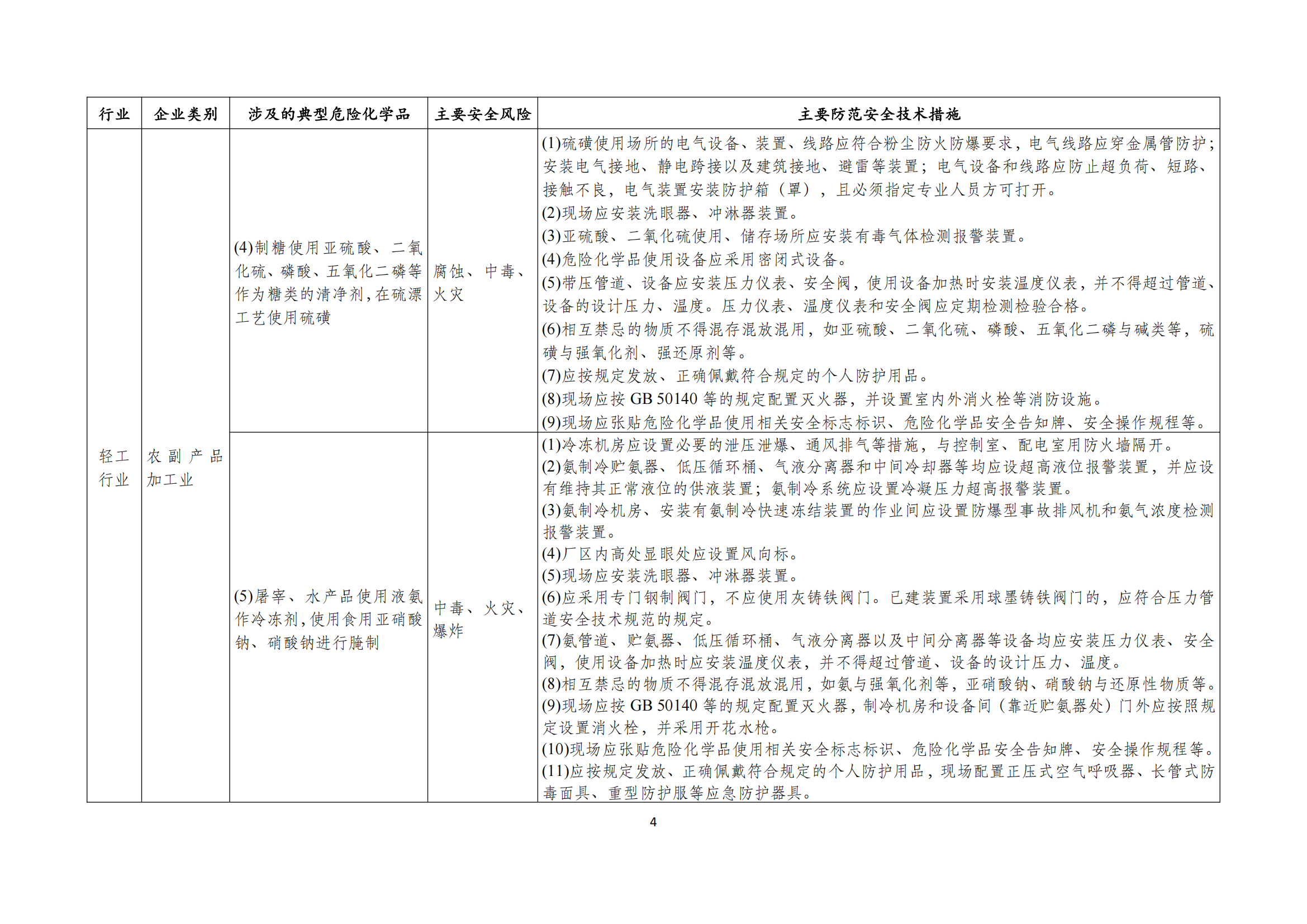 工贸企业涉及危险化学品相关品种及主要防范技术措施