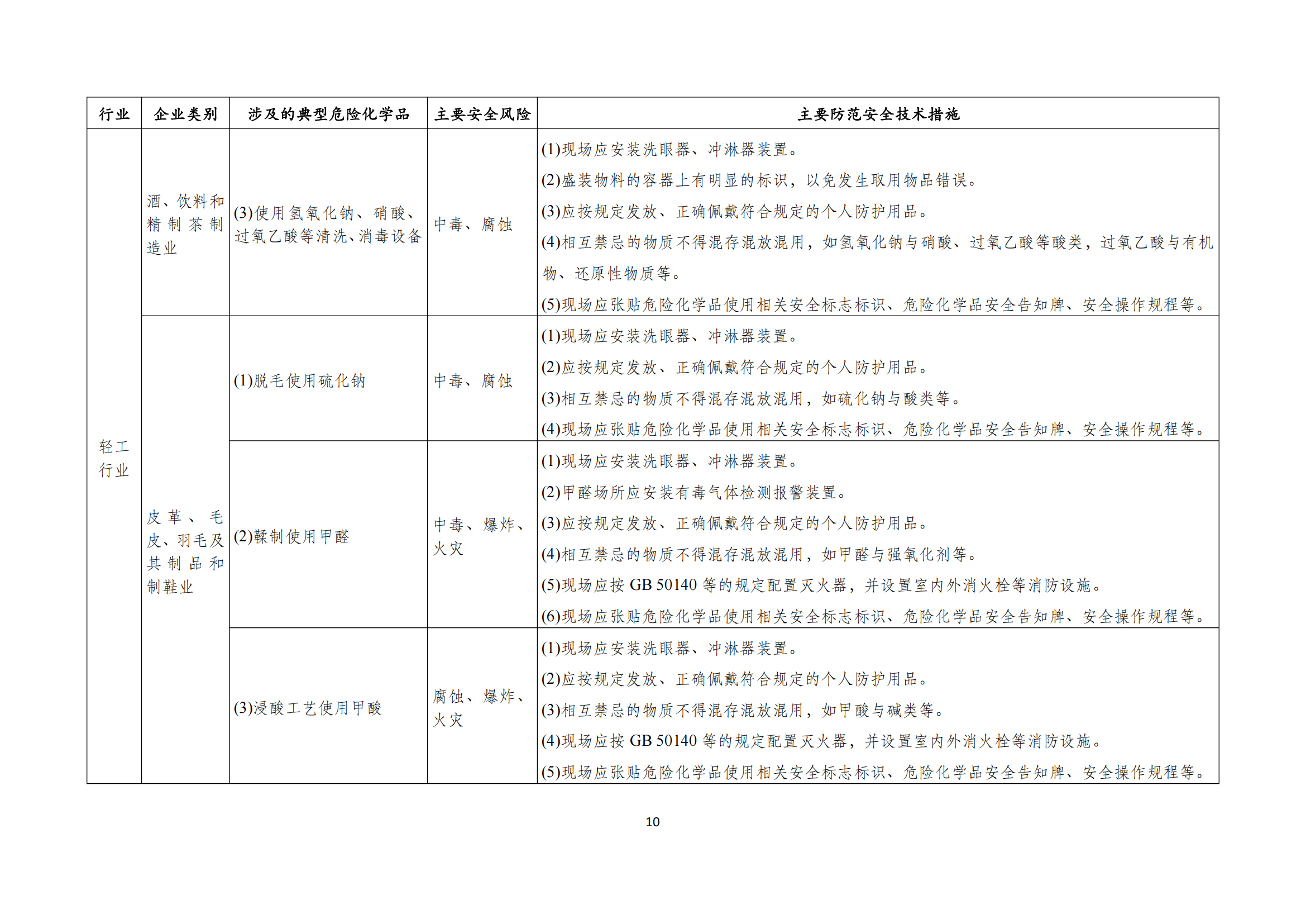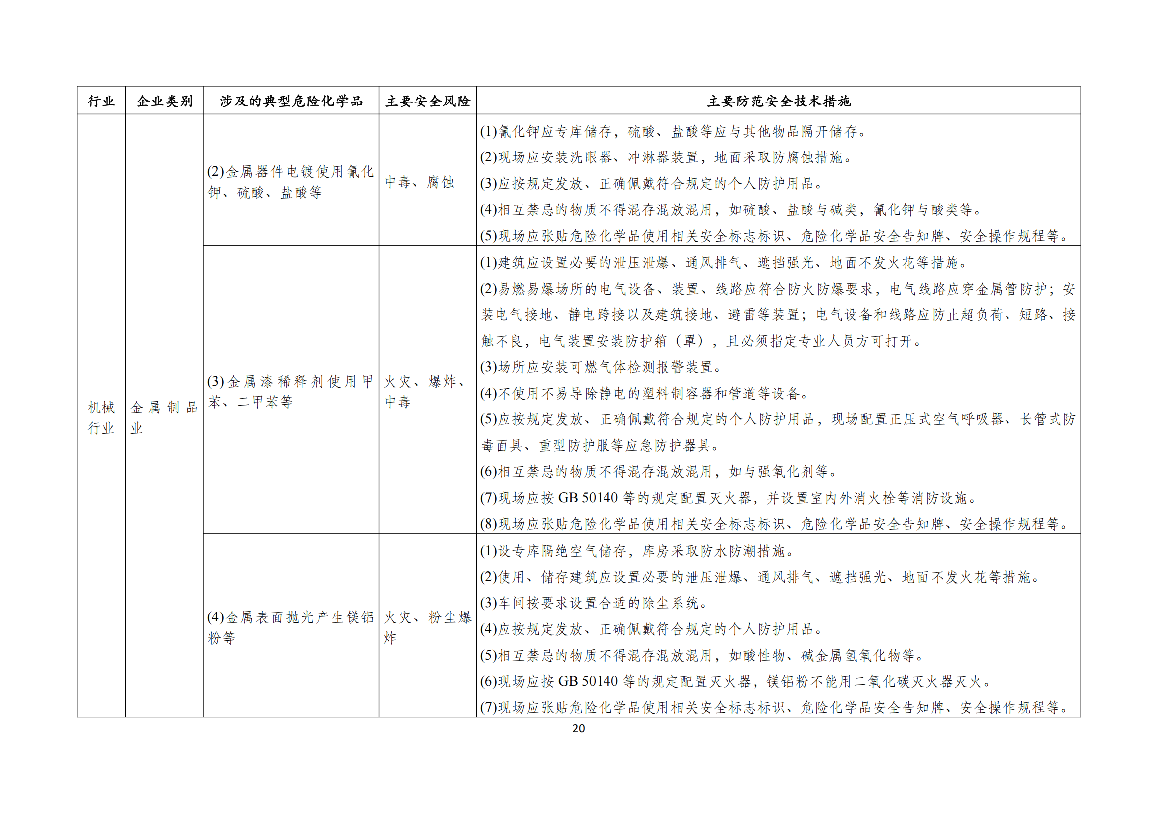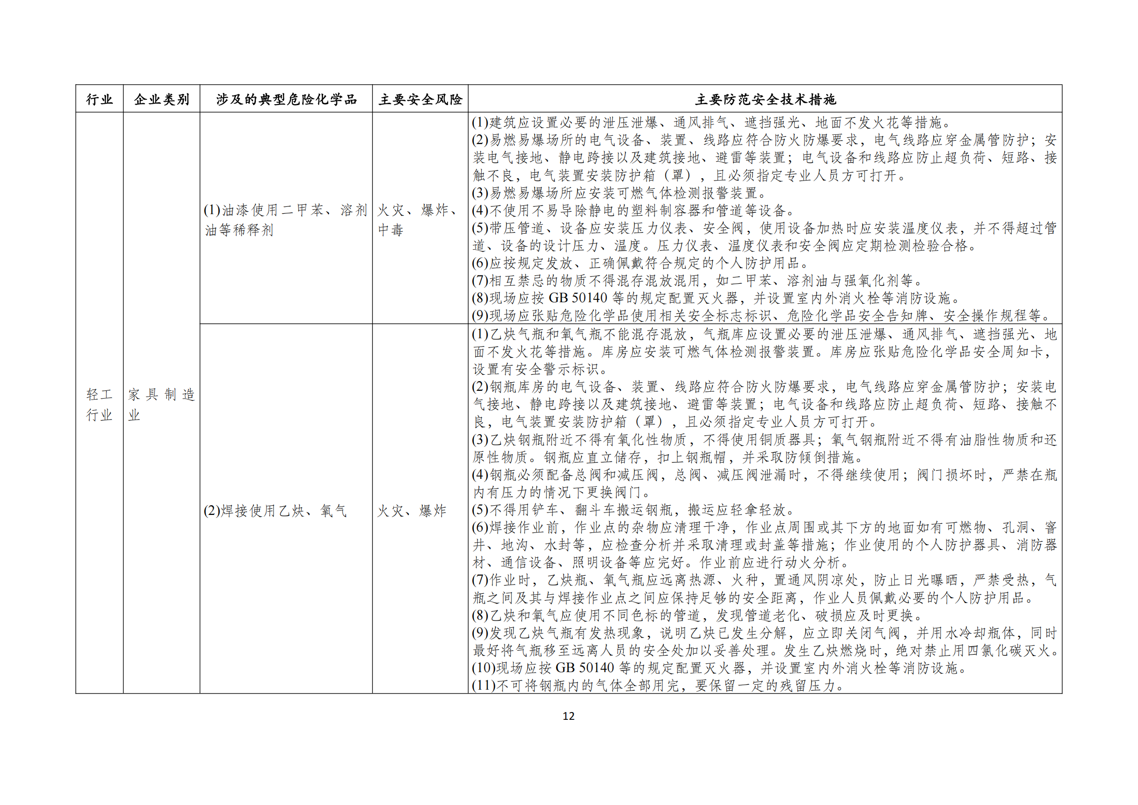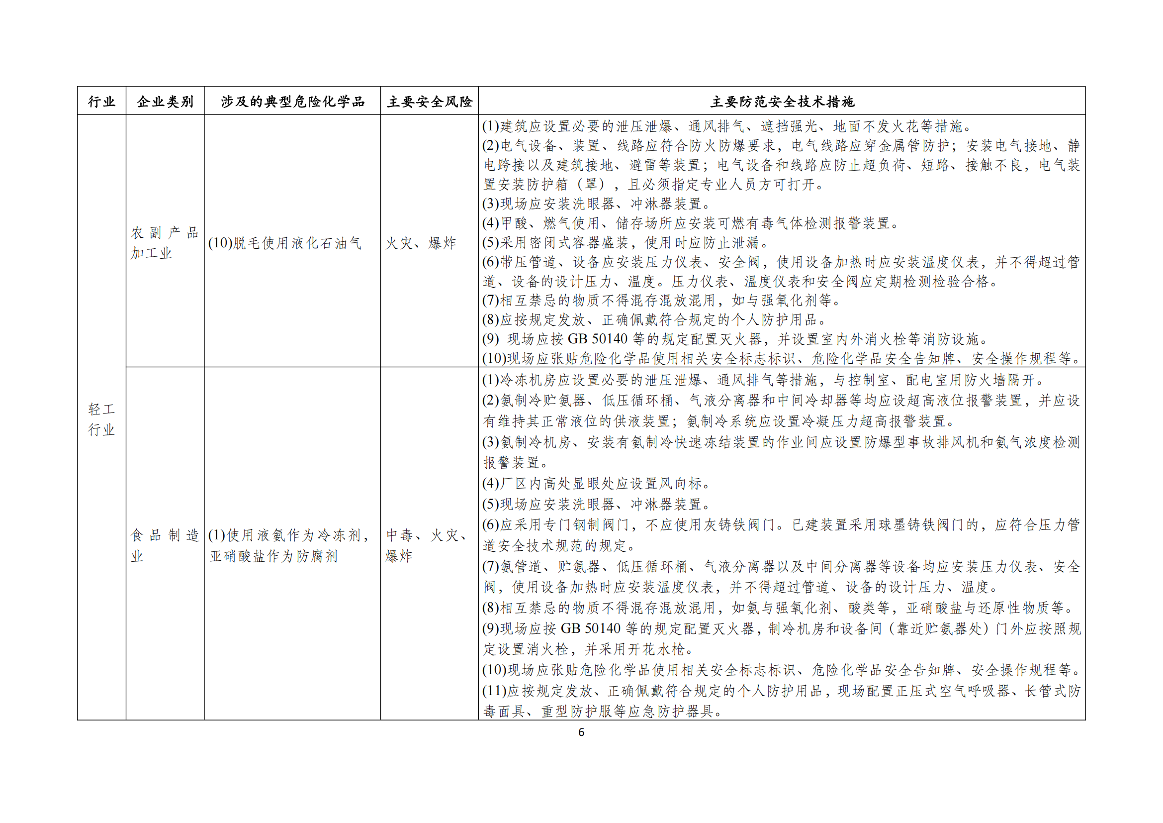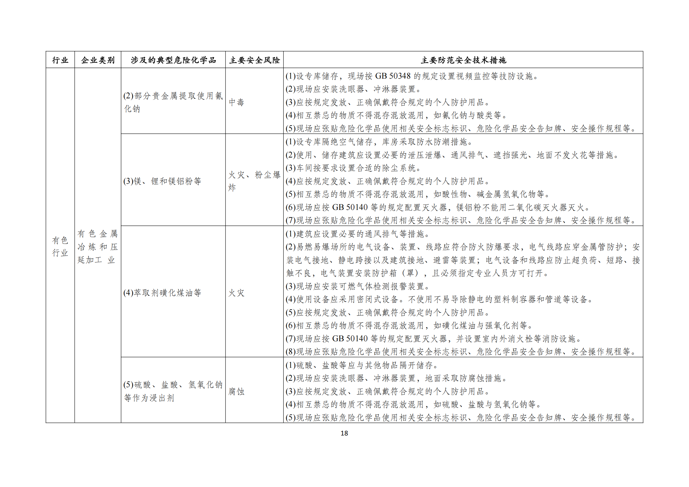 工贸企业涉及危险化学品相关品种及主要防范技术措施