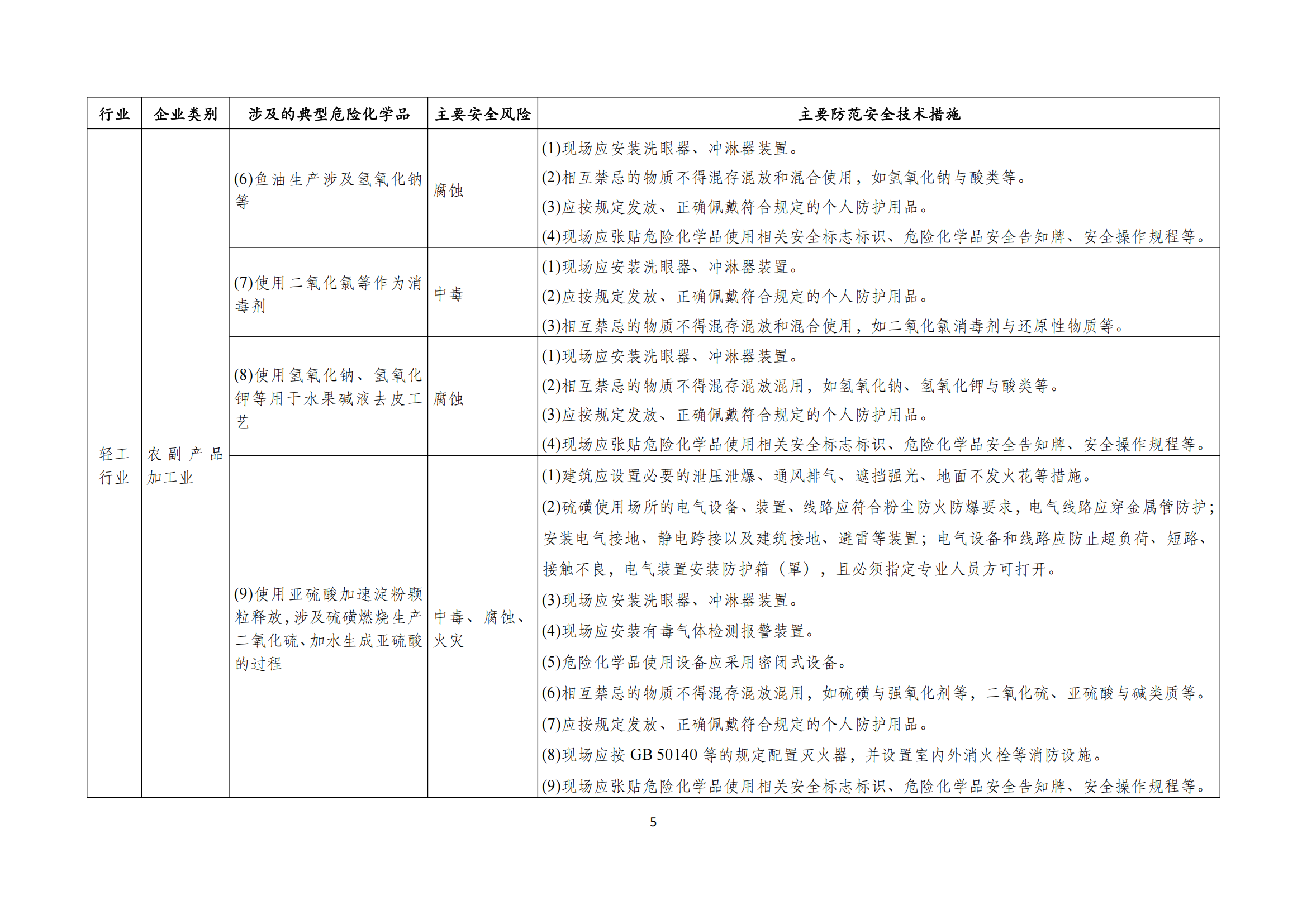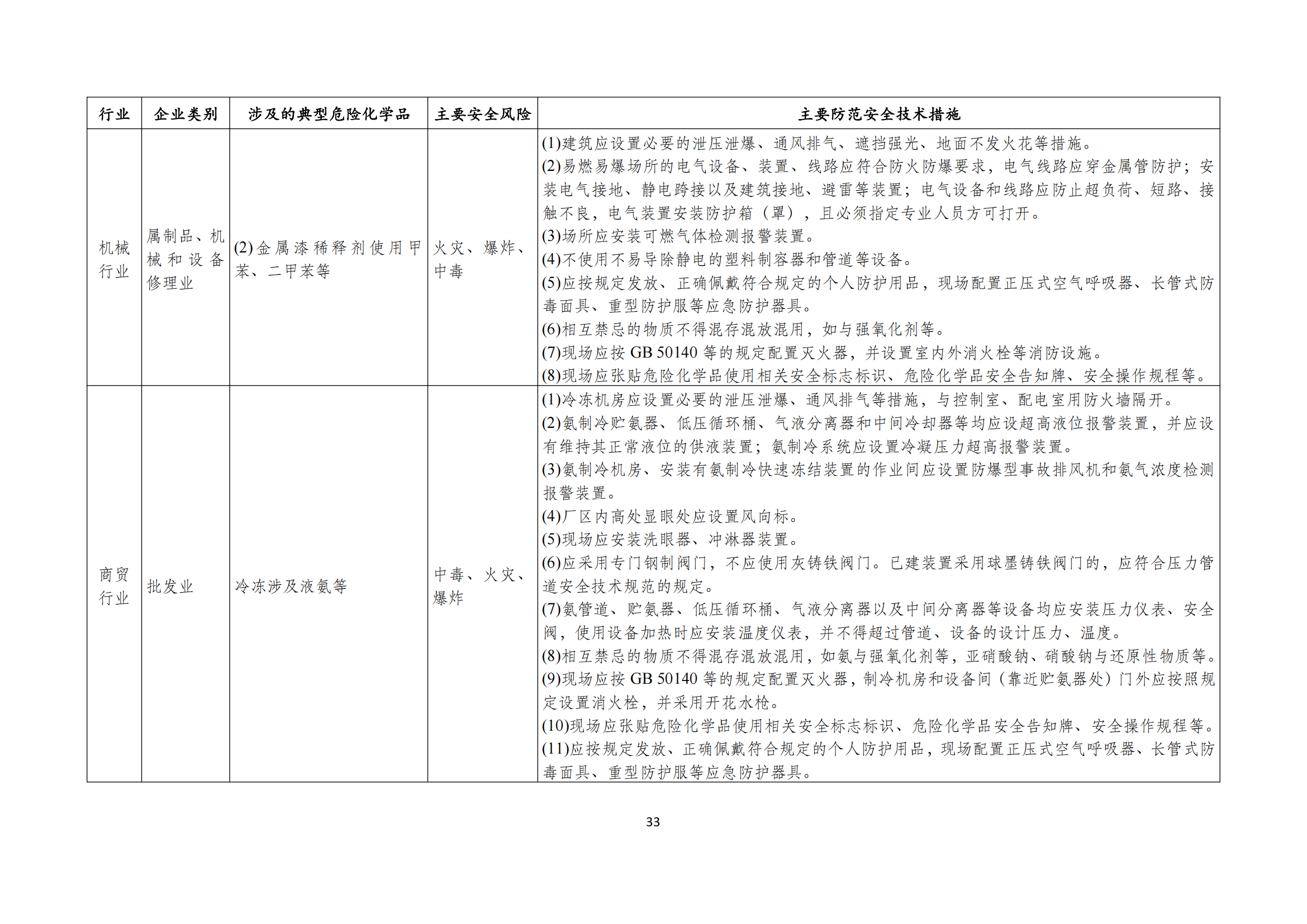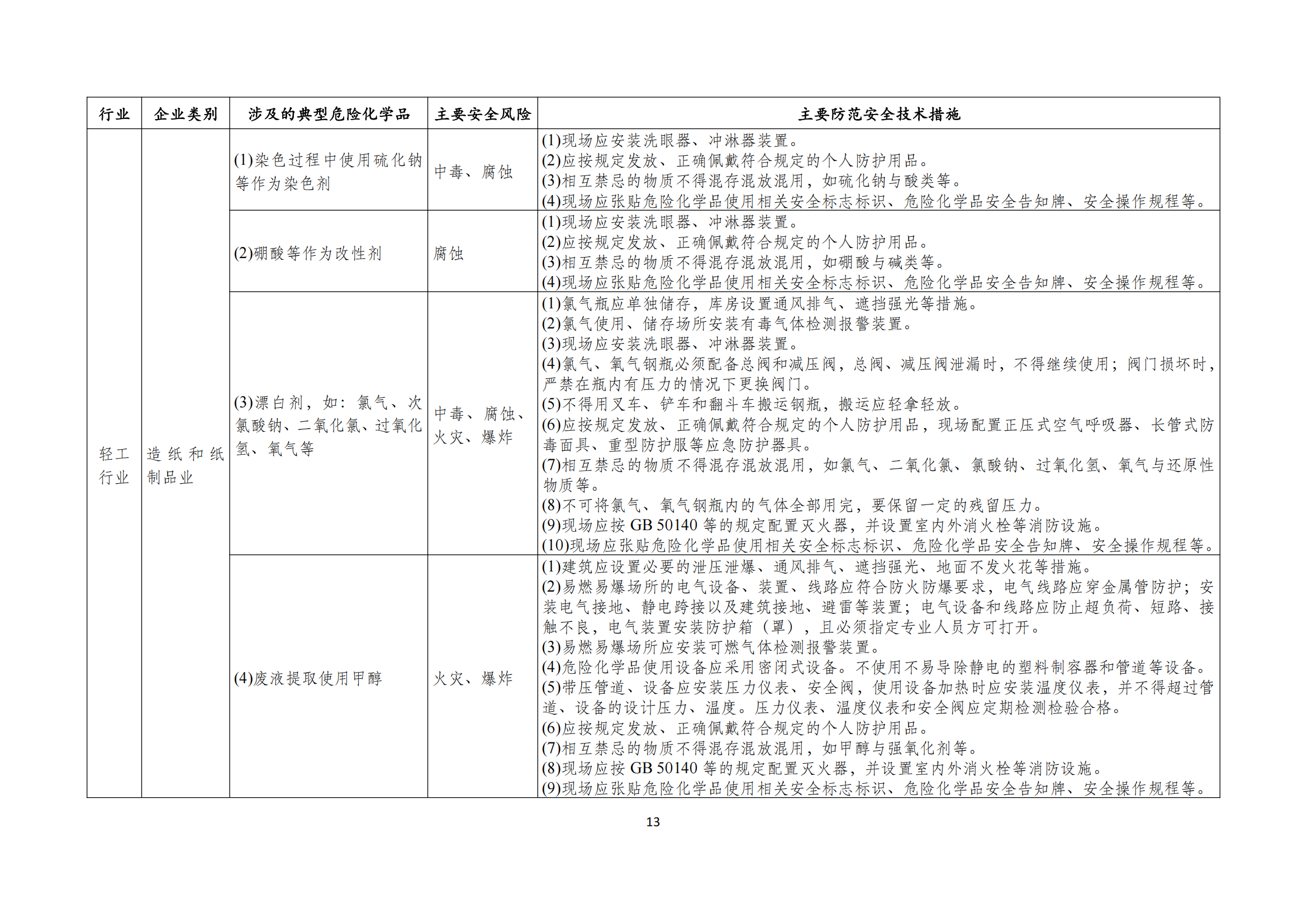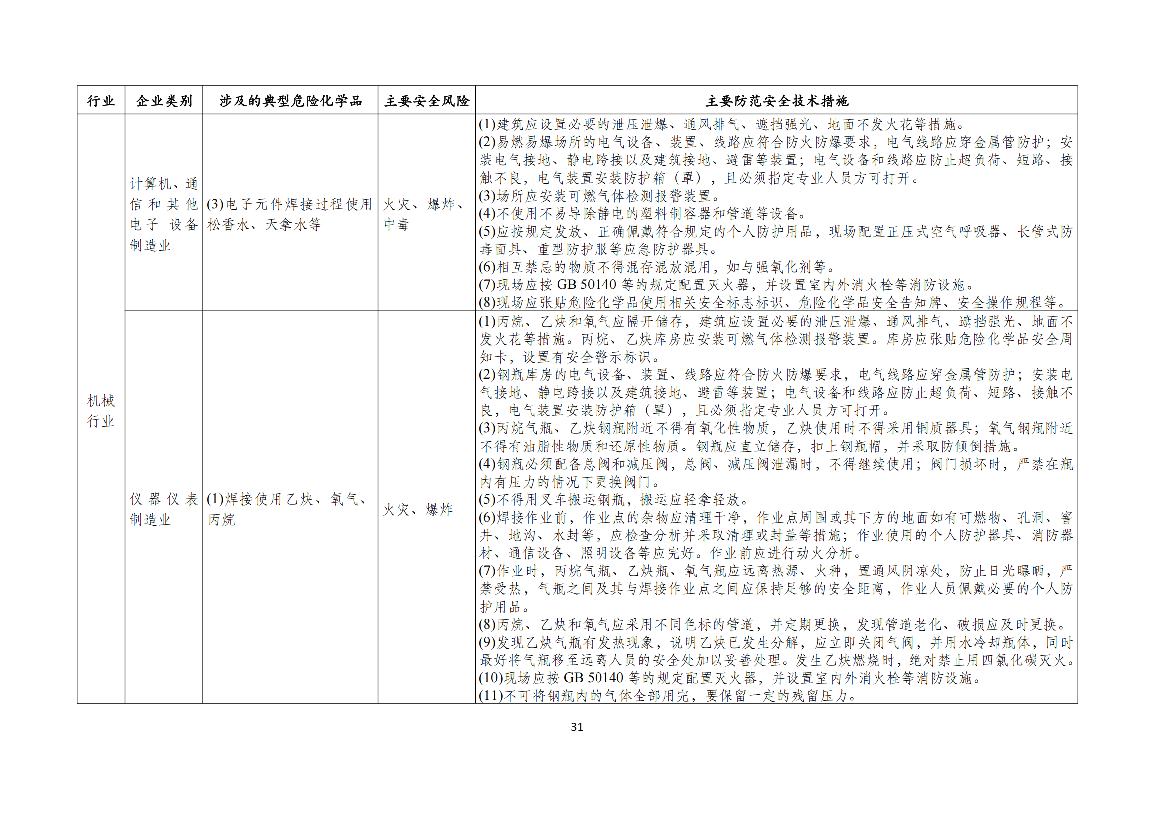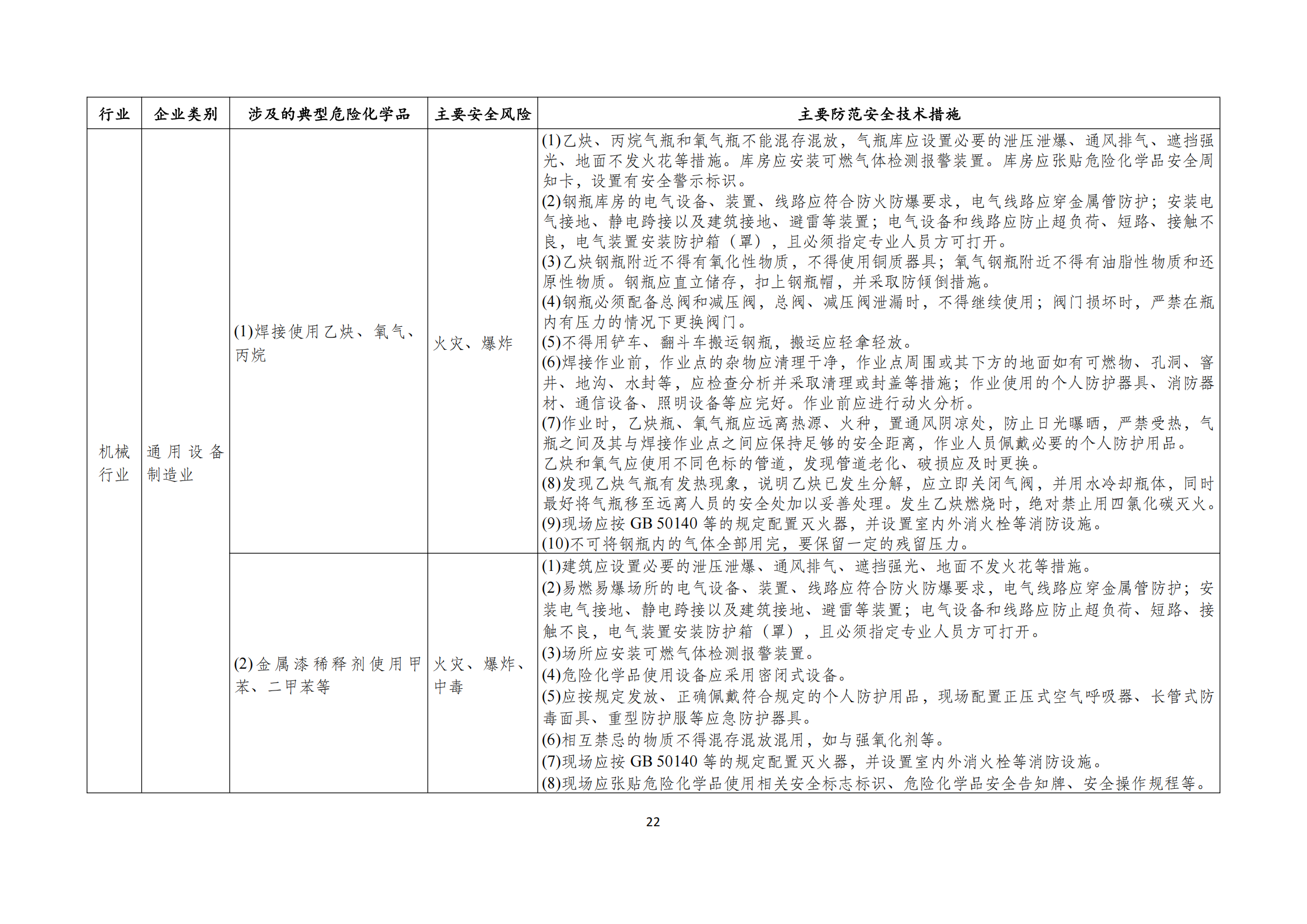 工贸企业涉及危险化学品相关品种及主要防范技术措施