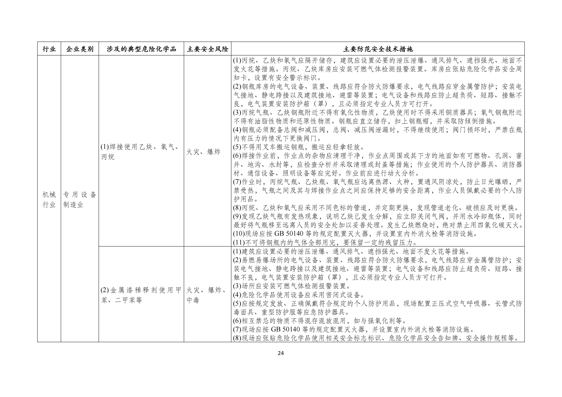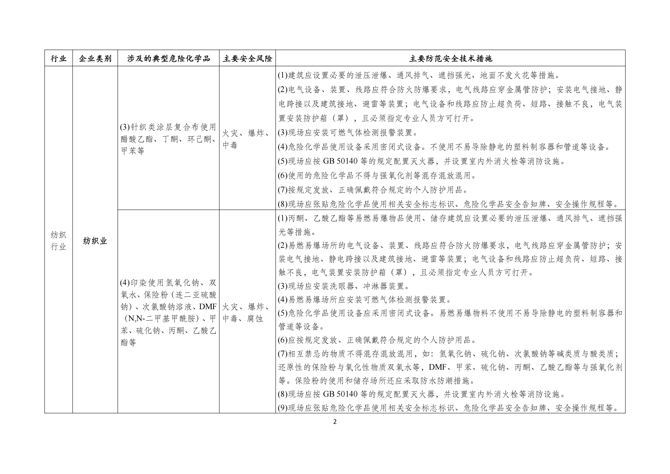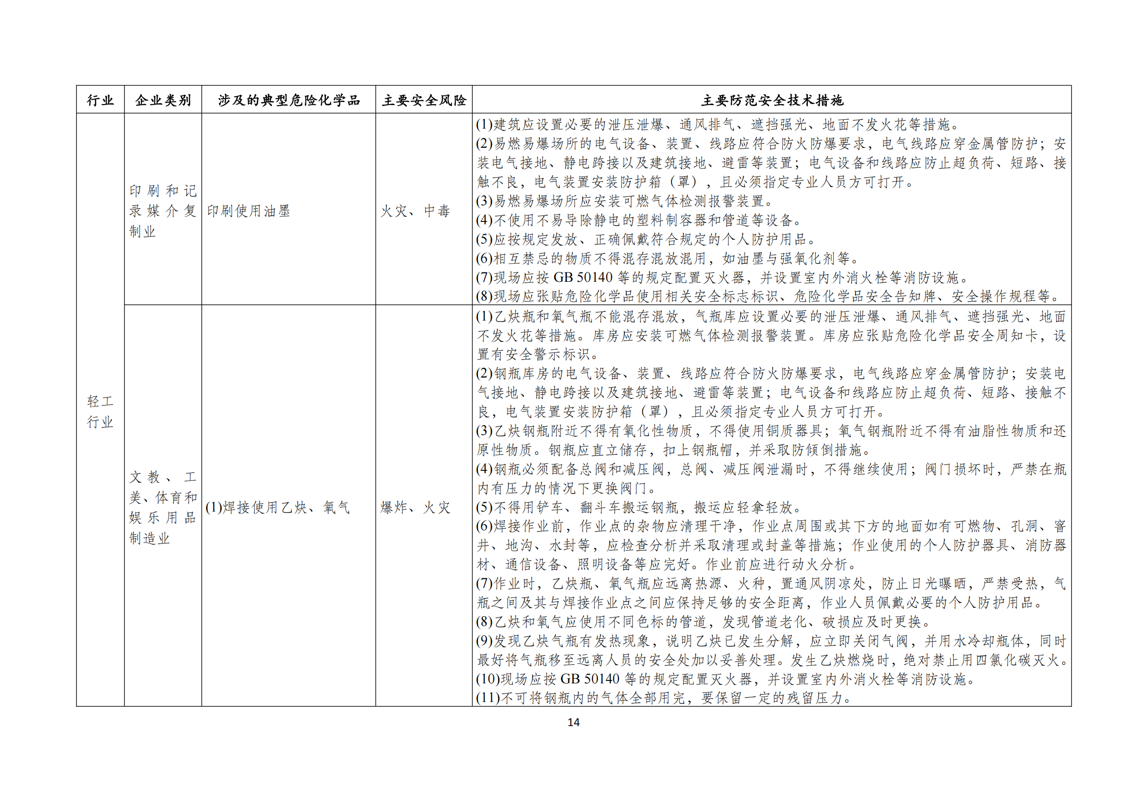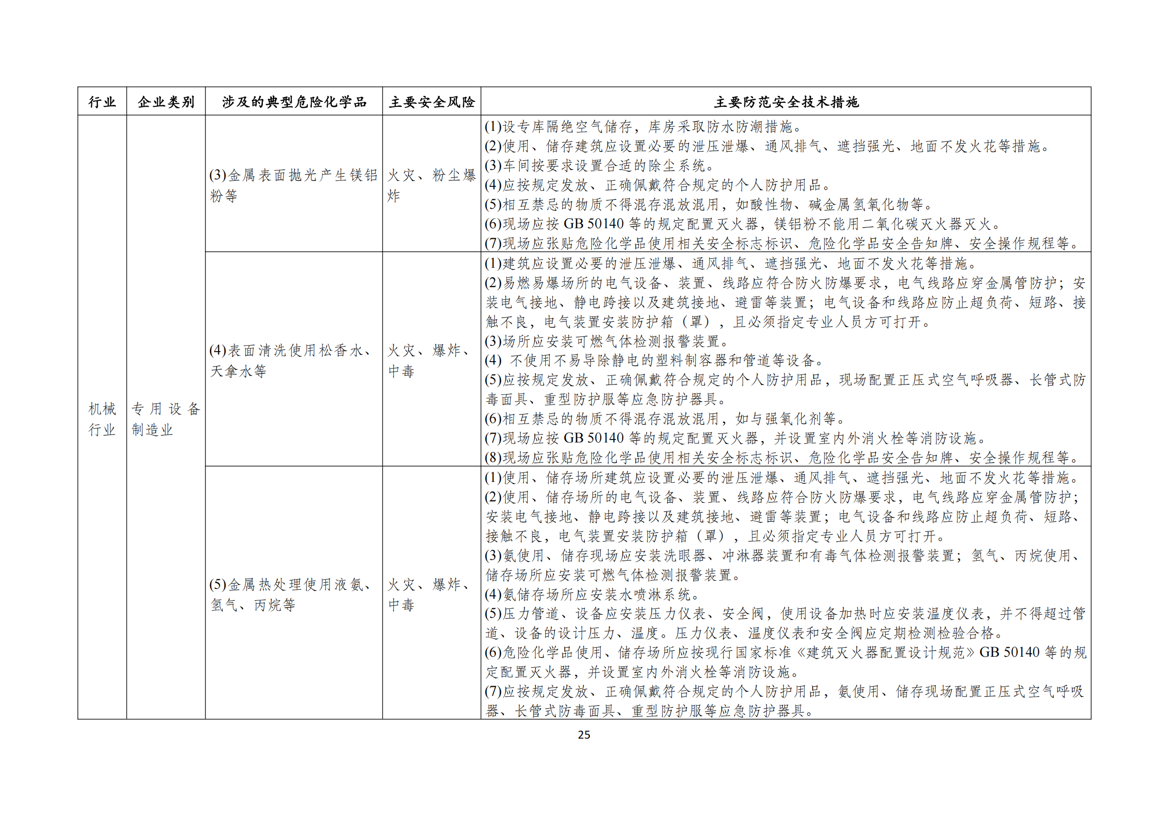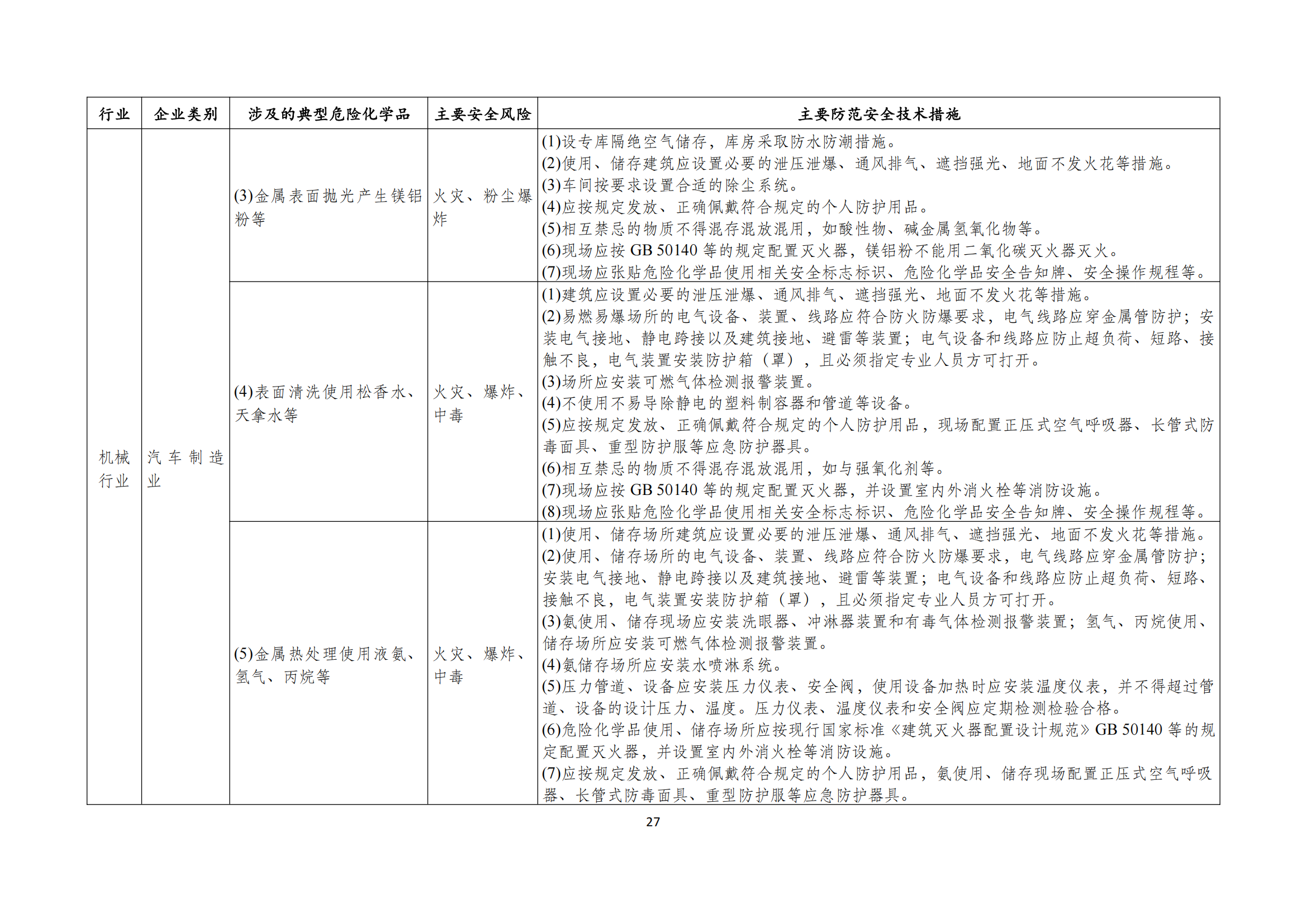 工贸企业涉及危险化学品相关品种及主要防范技术措施