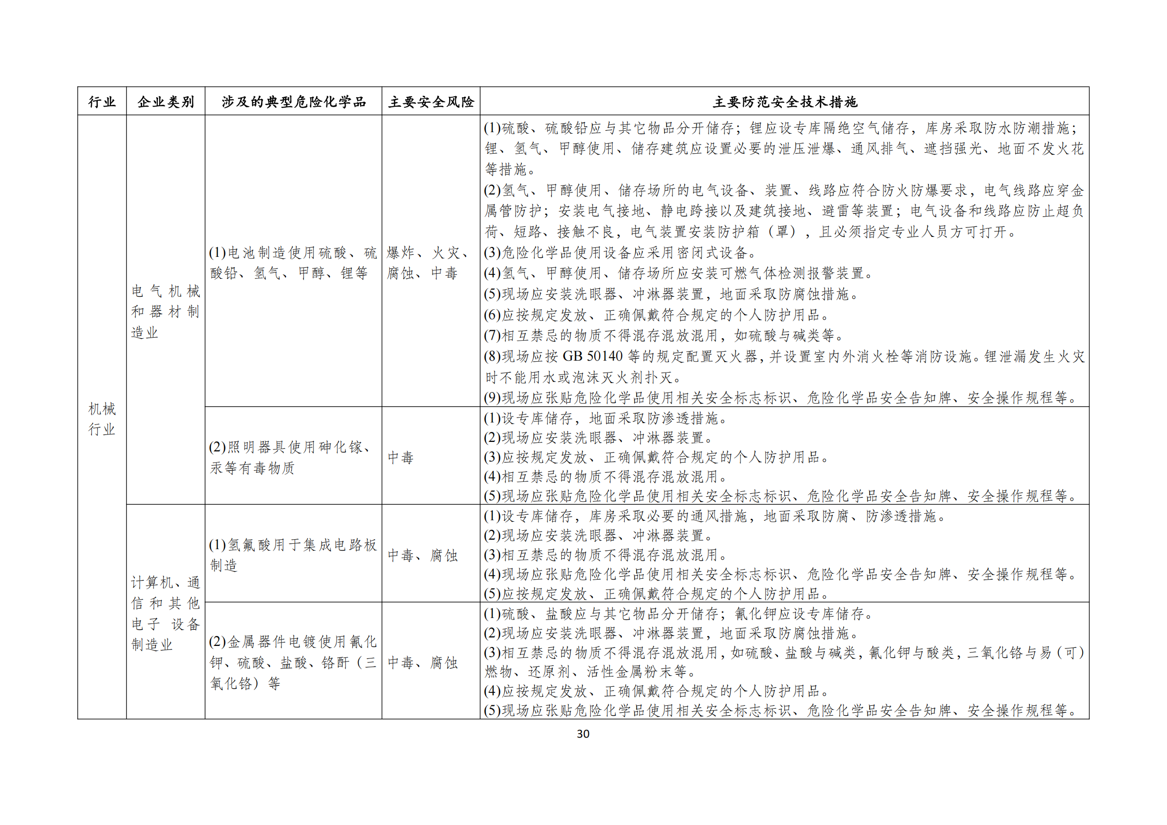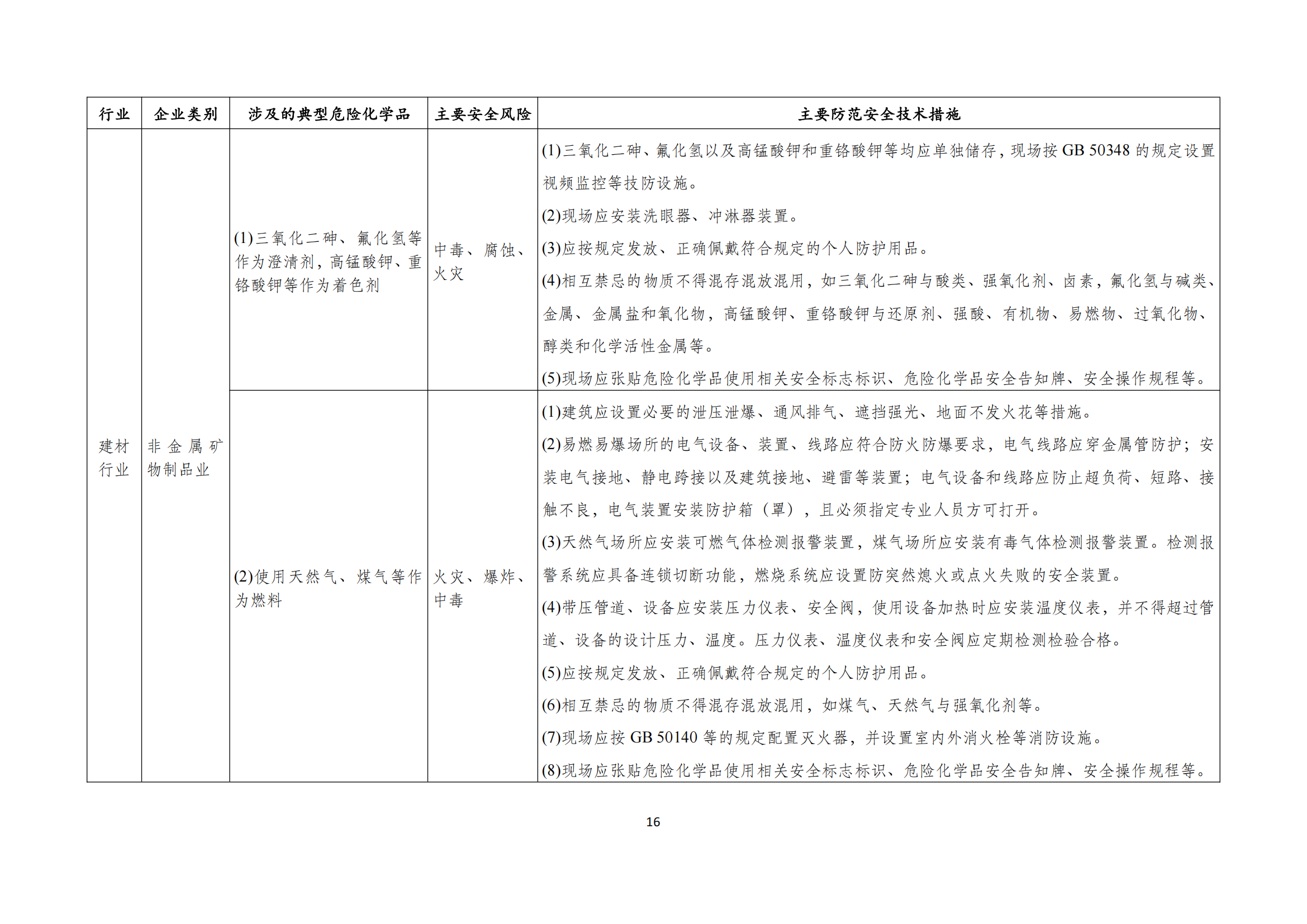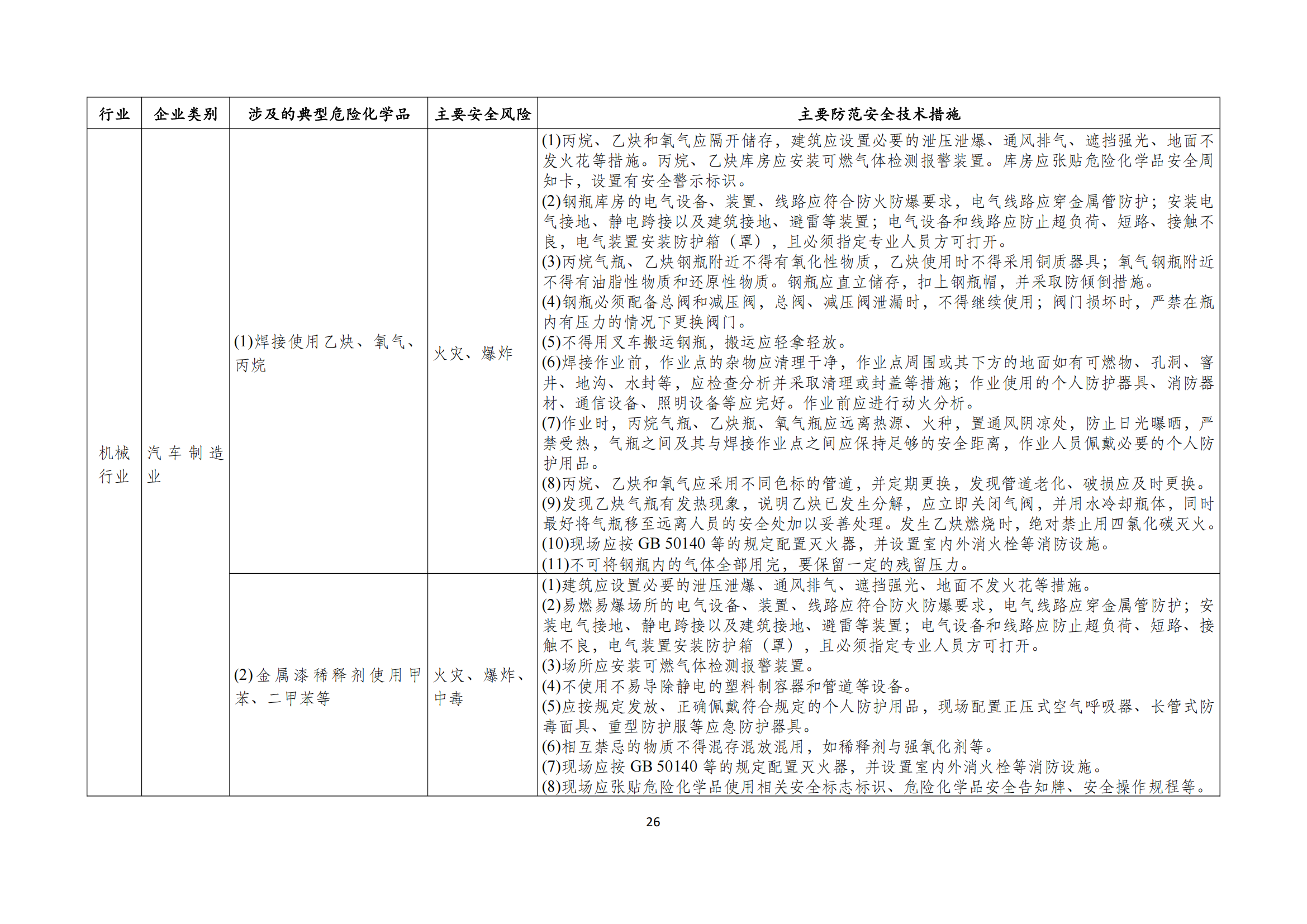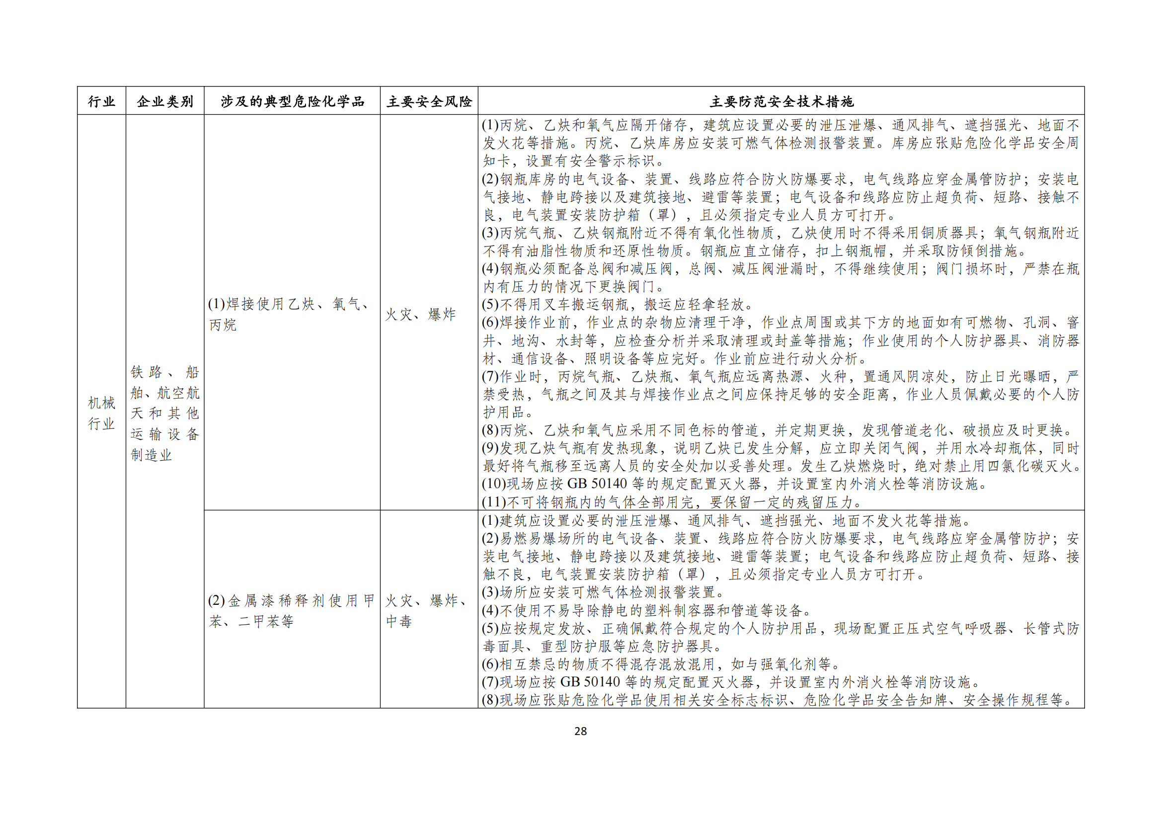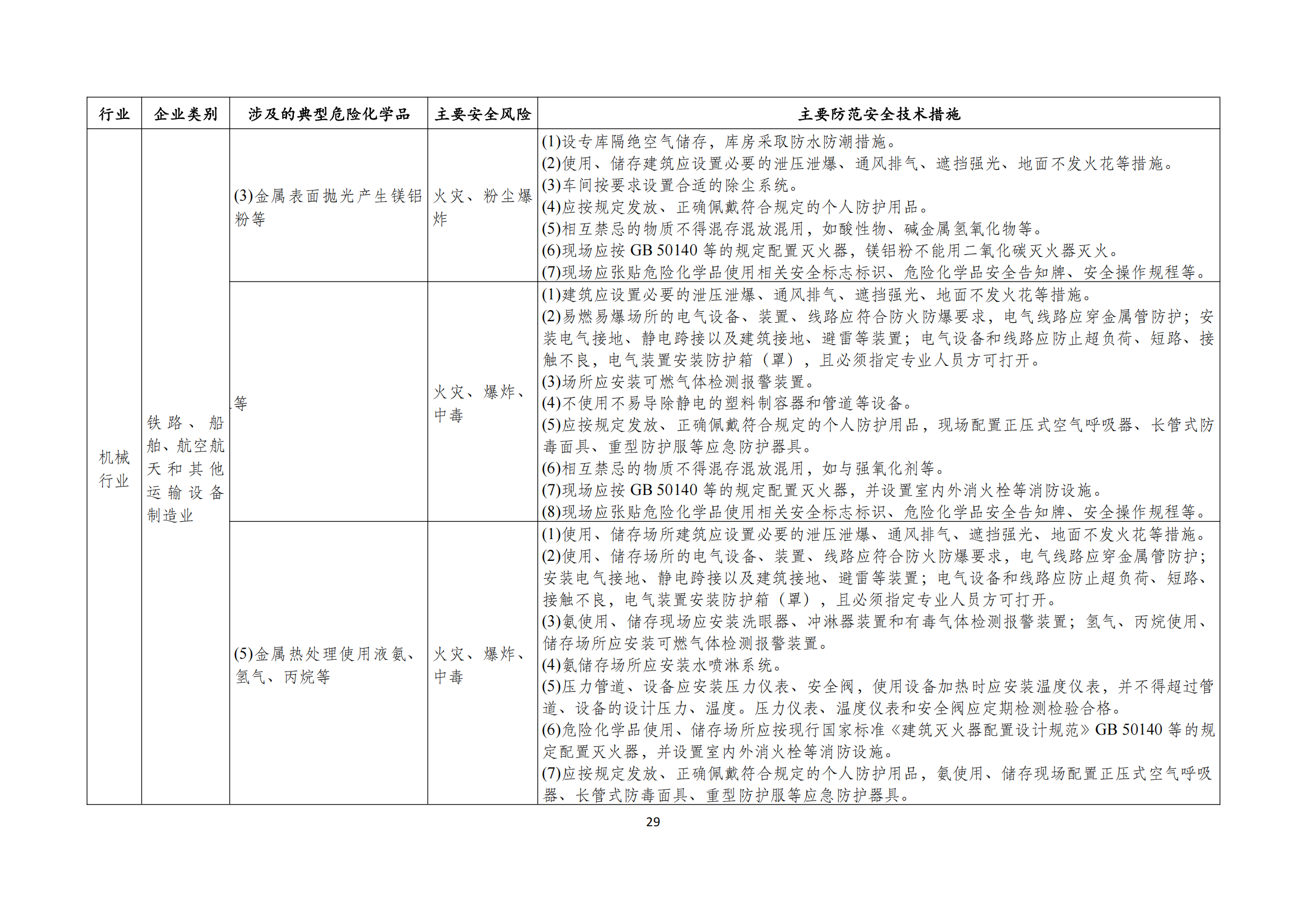 工贸企业涉及危险化学品相关品种及主要防范技术措施